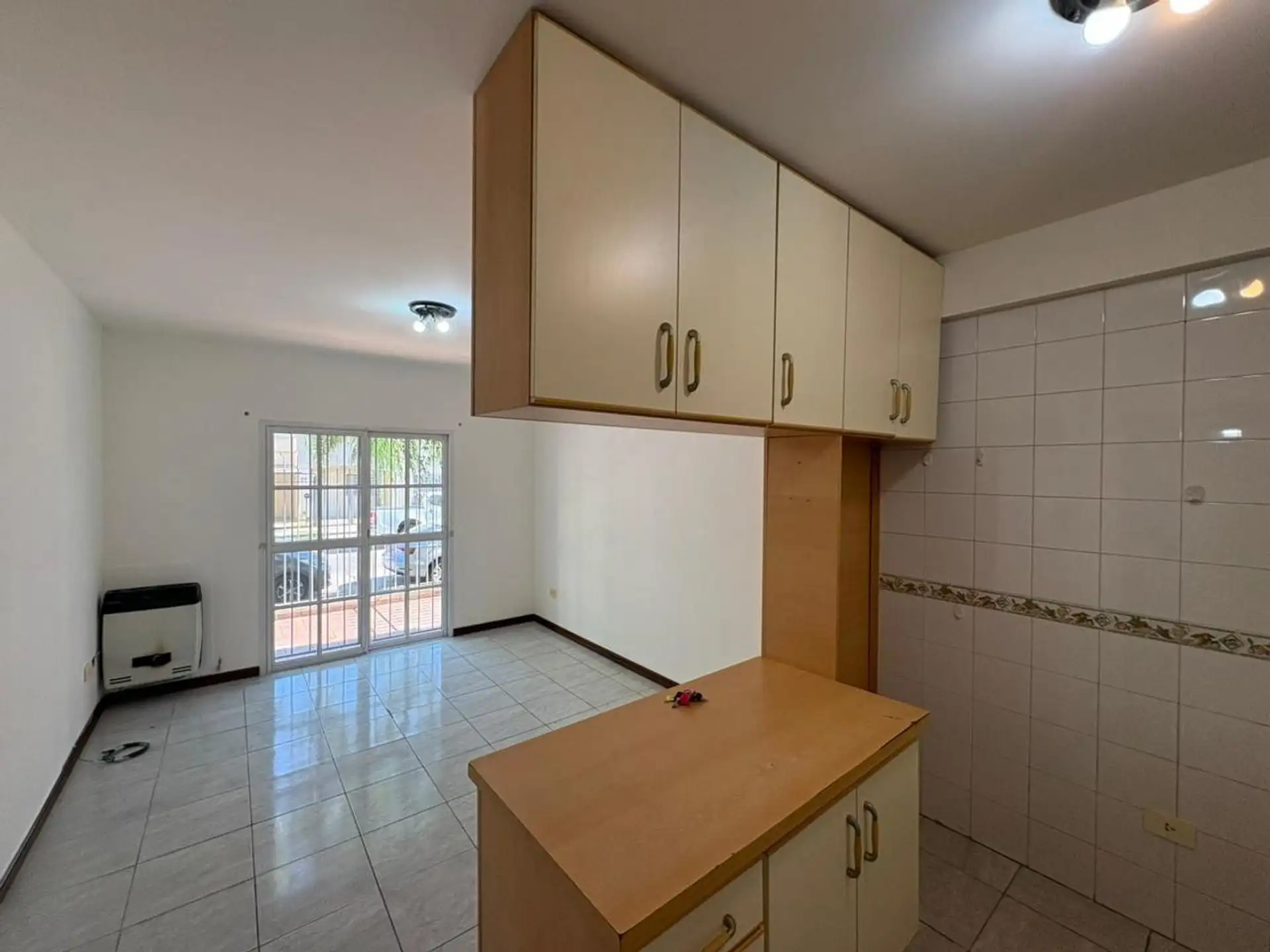 Apartment with 1 bedroom with a fitted wardrobe. Open-plan kitchen-living-dining area with a built-in cooking appliance, pantry and lower cabinets. Full bathroom and a balcony, plus covered parking with an automatic gate and alarm system.