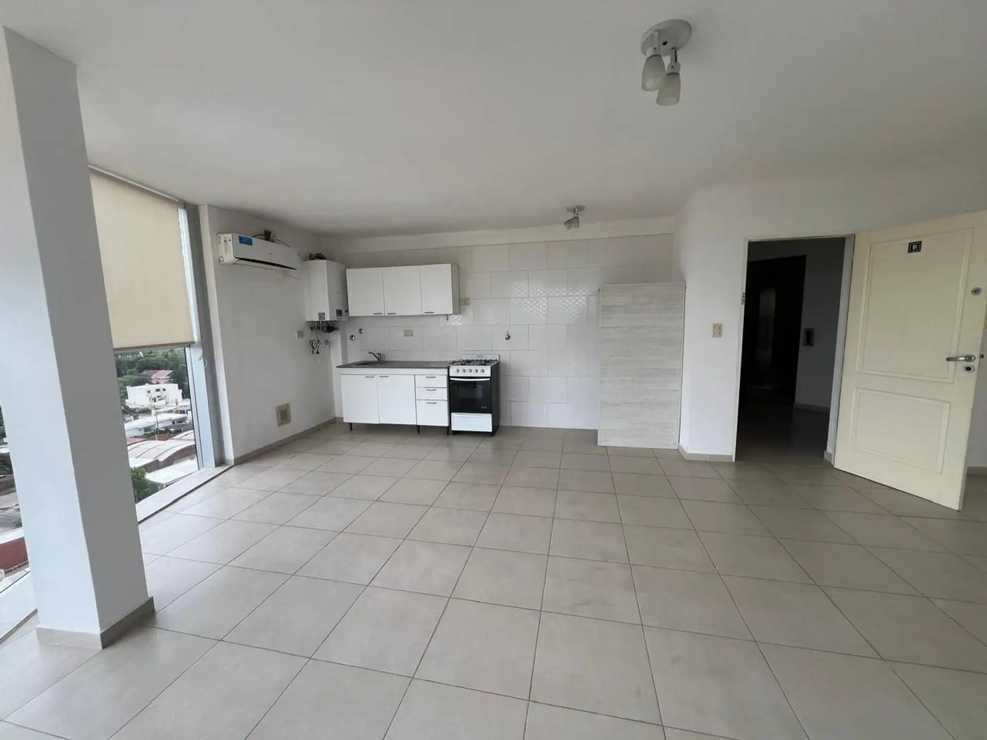 Two-room apartment with an open-plan living-dining area and integrated kitchen. It has 1 bedroom with a built-in wardrobe and 1 bathroom. Heating is provided by radiators, and hot water by a boiler. The unit includes a covered parking space. The building has a grill-equipped quincho and a terrace.