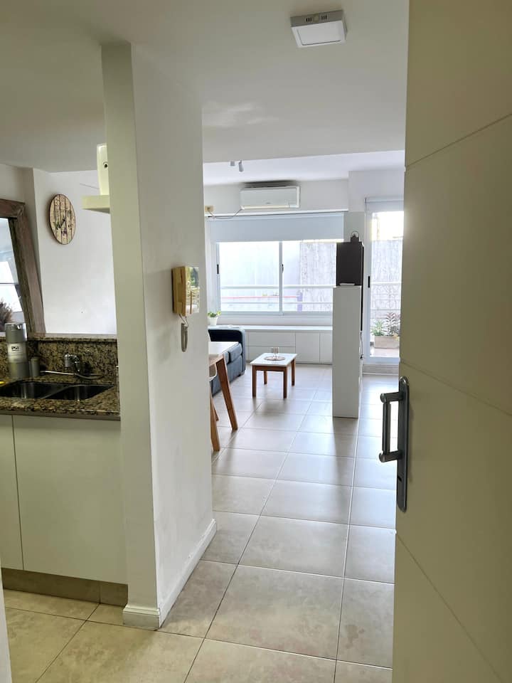 Furnished studio apartment in Chacarita. It includes a full kitchen and amenities for day-to-day living.