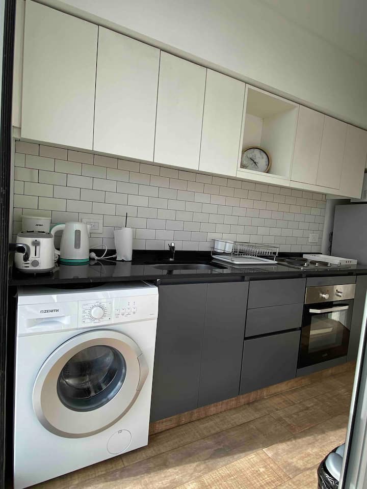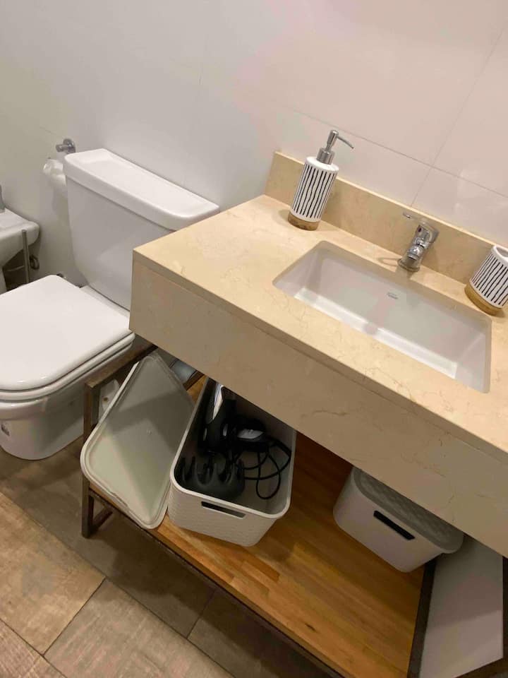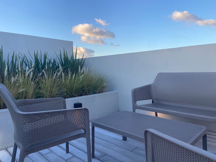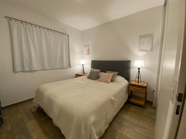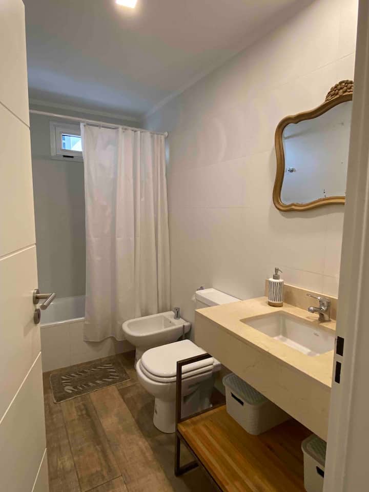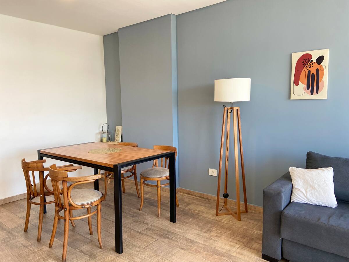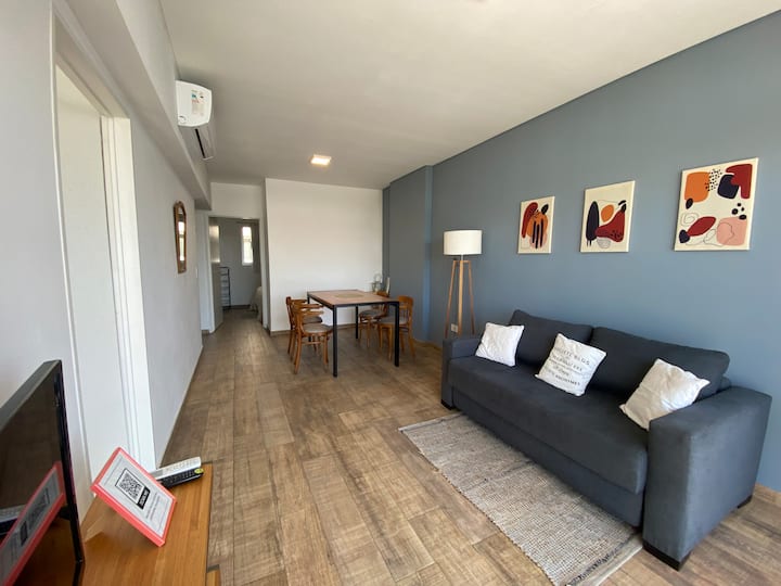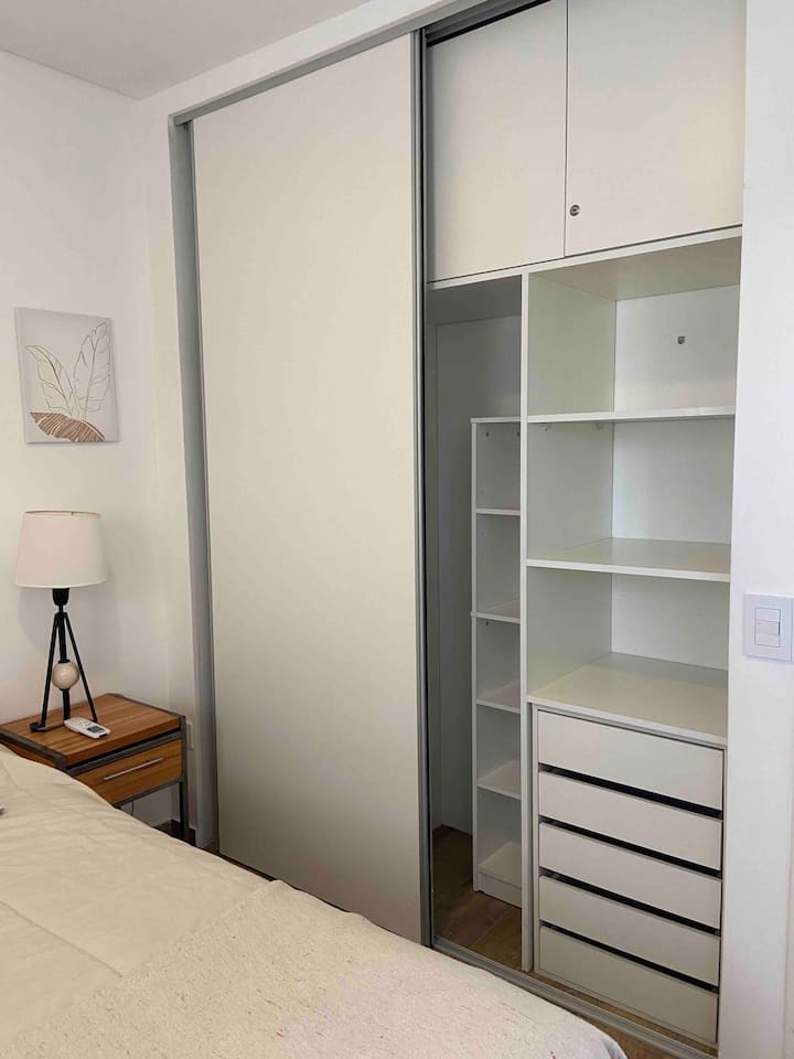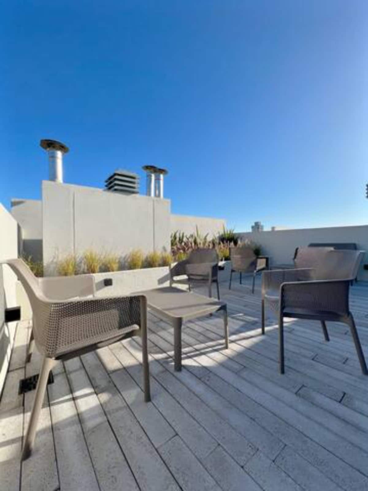 Apartment in Chacarita with a separate bedroom and air conditioning in both the bedroom and the living room. Bathroom with a bathtub and a fully equipped kitchen including a washing machine. The living room has a double sofa bed. The building has a gym, a terrace with a pool and an unheated pool, plus a separate terrace area; the pool is on the terrace and is not heated. Close to Subte B stations Dorrego and Federico Lacroze, and a few metres from Av. Corrientes.