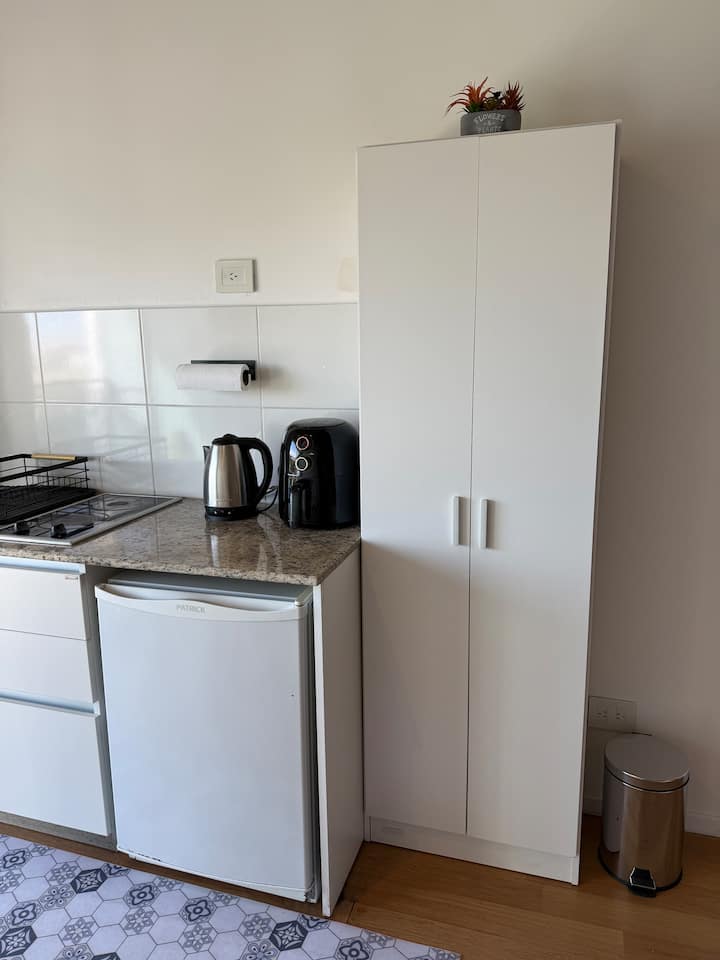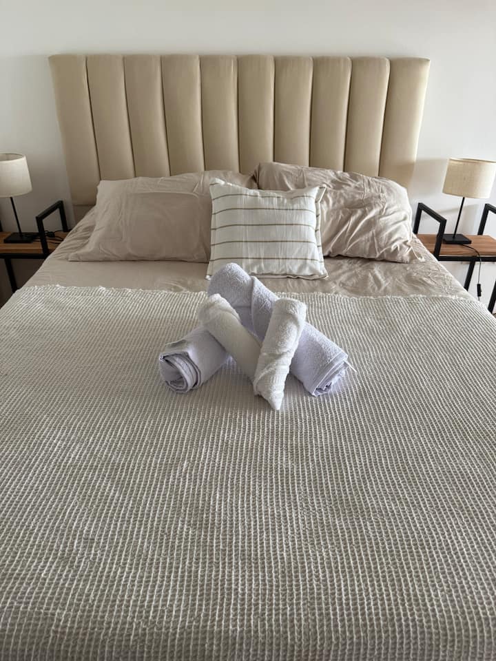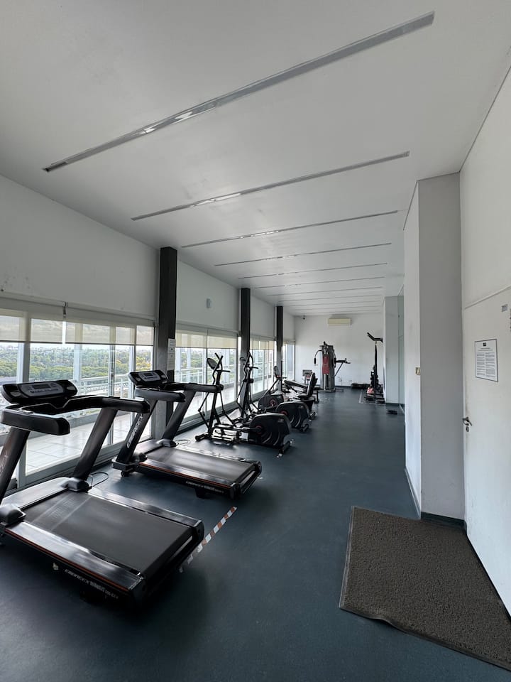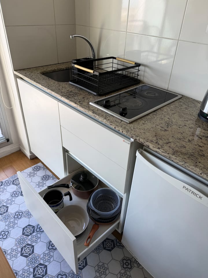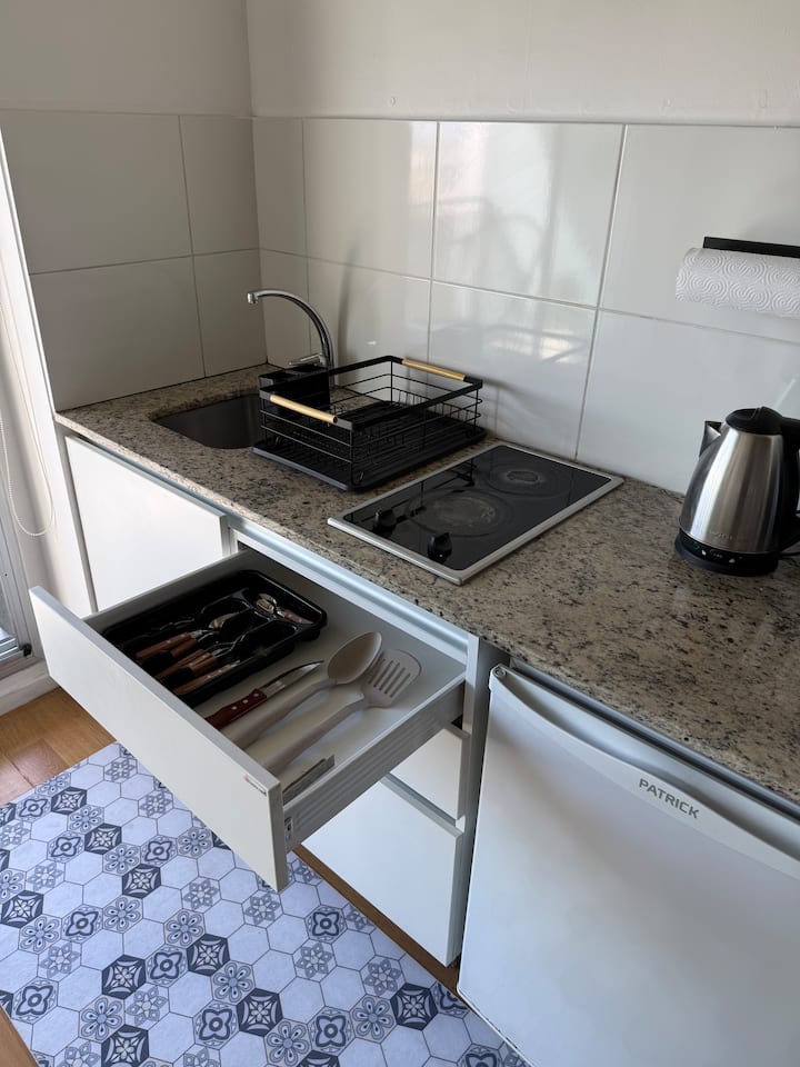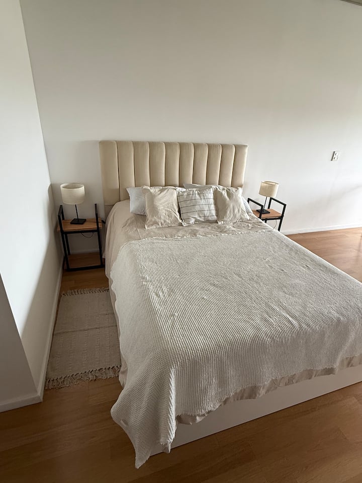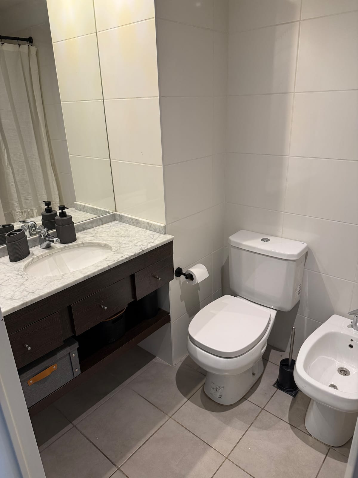 Modern one-bedroom apartment in Chacarita overlooking the park, with a balcony. It is fully equipped with a queen bed, bedding, kitchen, hot/cold air conditioning, WiFi and TV. The building has a pool, gym, communal room (SUM), solarium, laundry, meeting room, and 24-hour security.