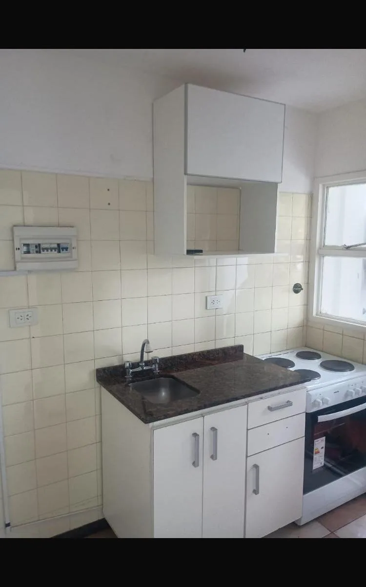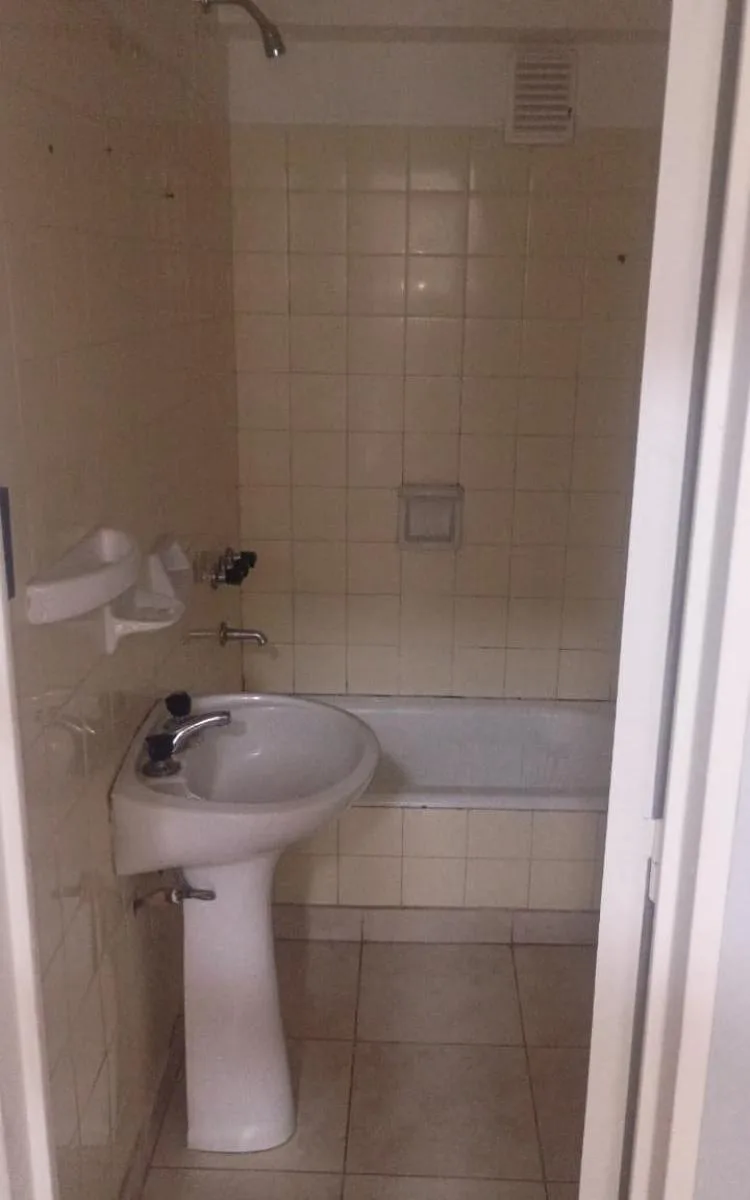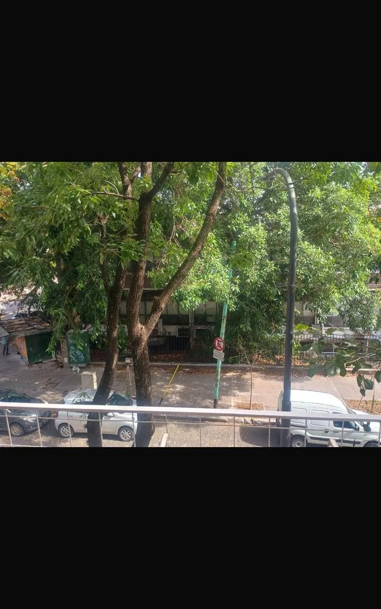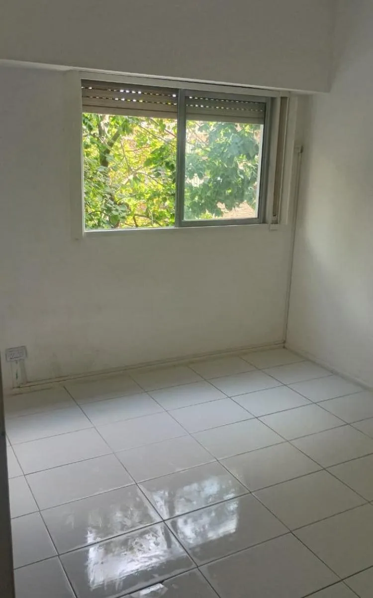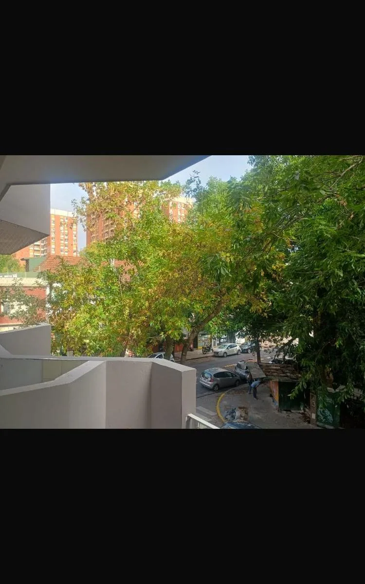Two-room apartment with a balcony facing the street, north orientation. Separate laundry area. Lease terms require an in rem guarantee or rental insurance and a 2-year contract with quarterly rent adjustments based on IPC.
