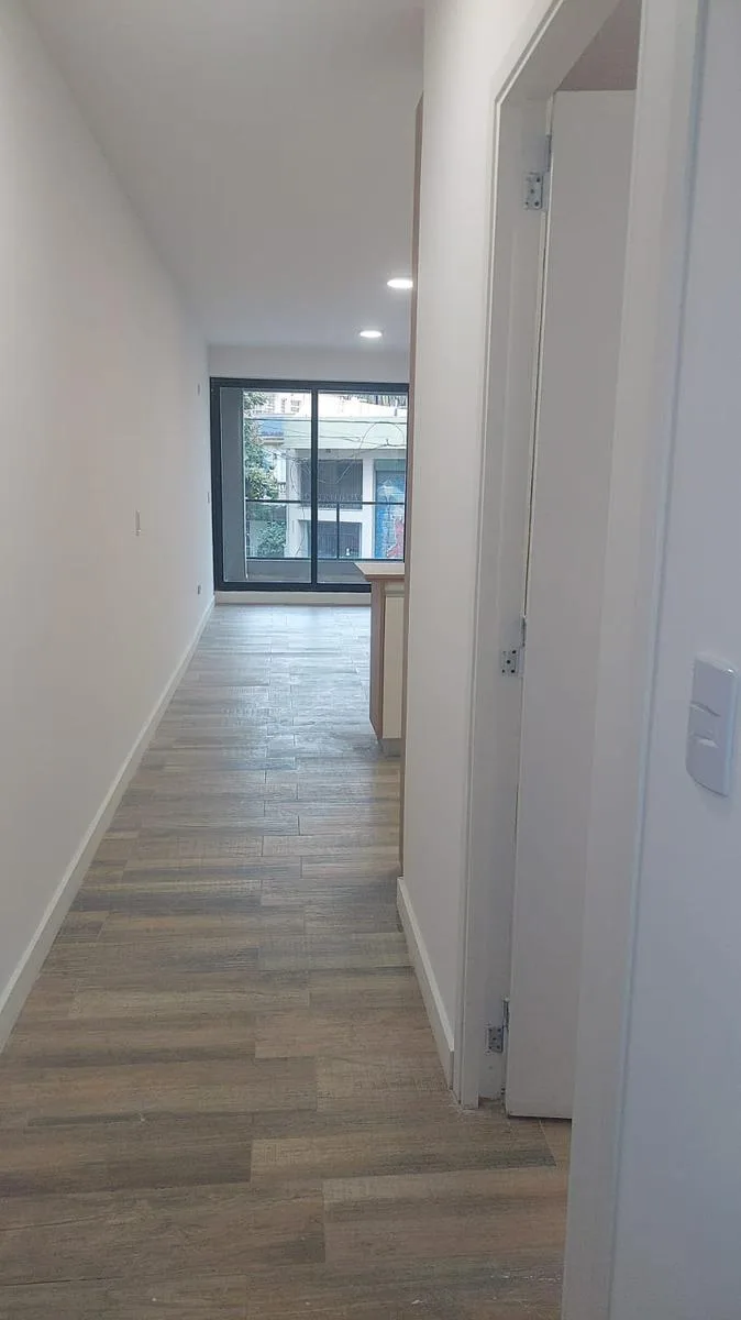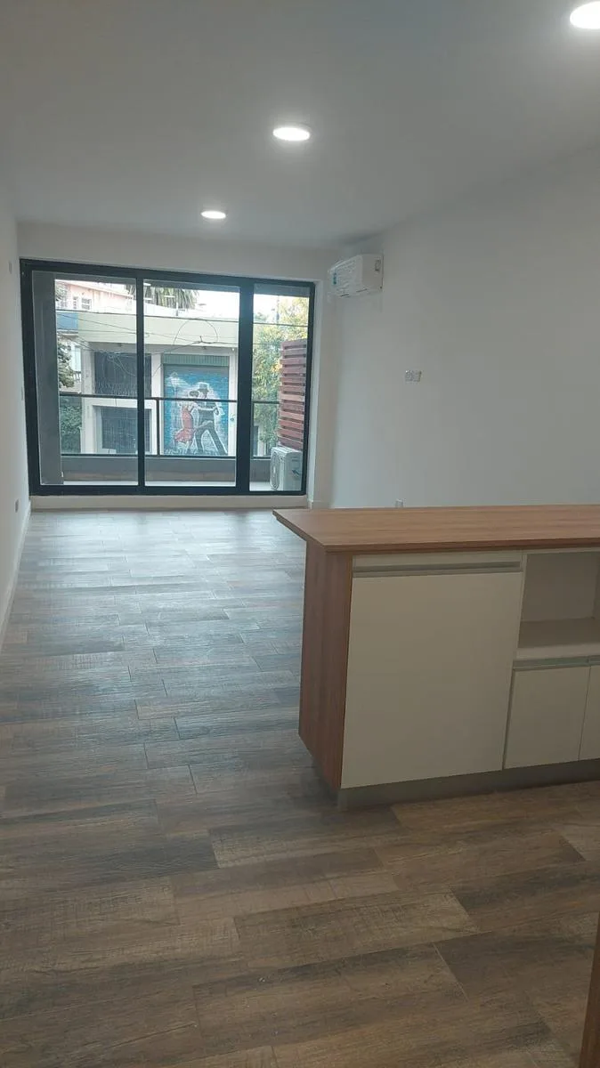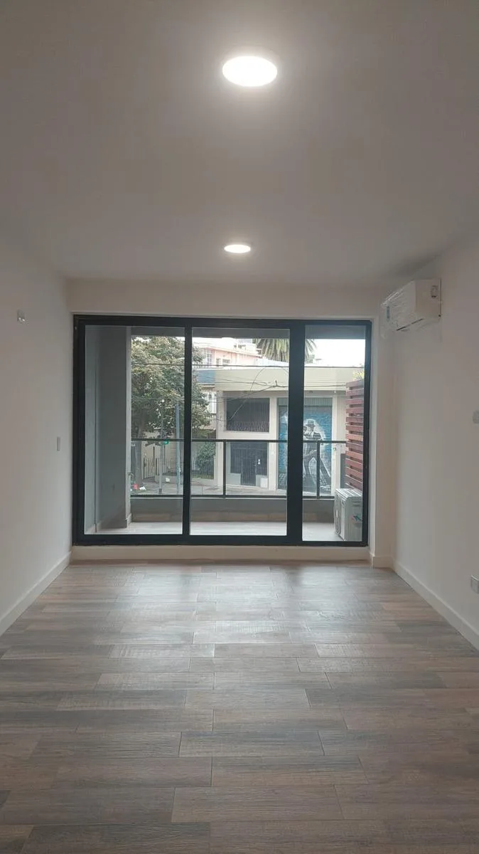 Brand new studio apartment for rent in Coghlan, on the second floor facing the street with a balcony. Integrated kitchen with base cabinets and storage, electric hotplate with two burners, and space for a refrigerator; breakfast bar. Air conditioning (hot/cold), central hot water, and segmented electrical system. Building amenities include two coworking rooms with a meeting room, garden, pool and solarium, open-air quincho with grills, laundry with washer and dryer, bike storage, and toilets in