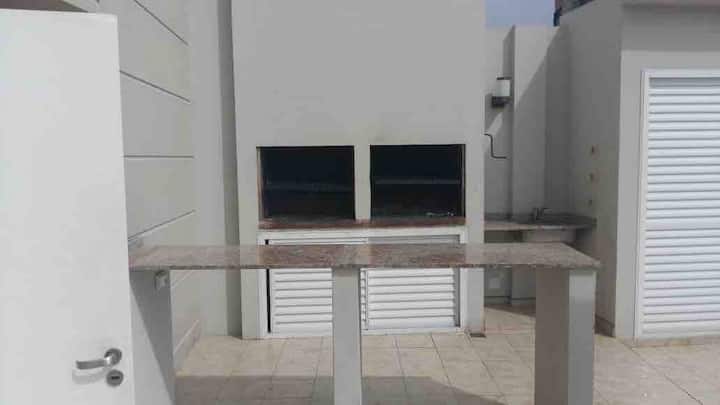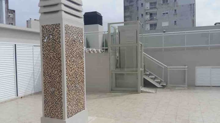 Studio apartment. Fully equipped kitchen with oven, toaster, electric oven and kitchenware. Large balcony overlooking Av. Melian. The building has a swimming pool, showers, bathrooms, grills, solarium, a communal room and laundry; close to Subte lines B and D and the train station.
