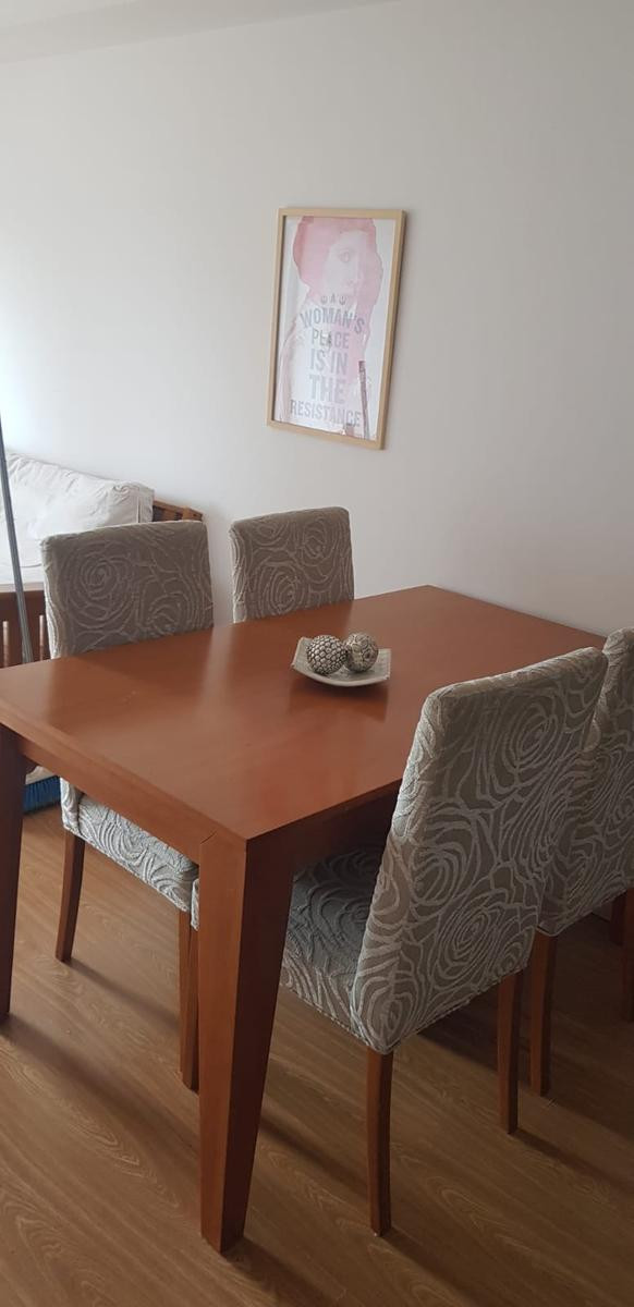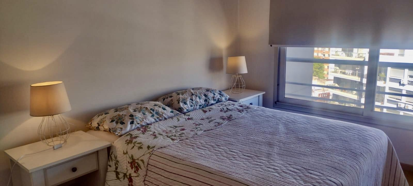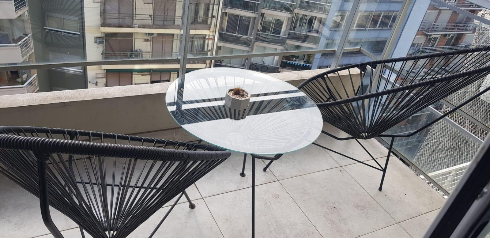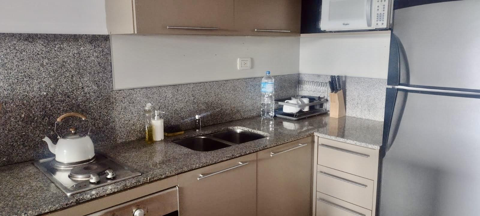 Two-room apartment in Coghlan with a balcony. Integrated kitchen connected to the living and dining area. Rent is USD 550, plus building fees and other services.