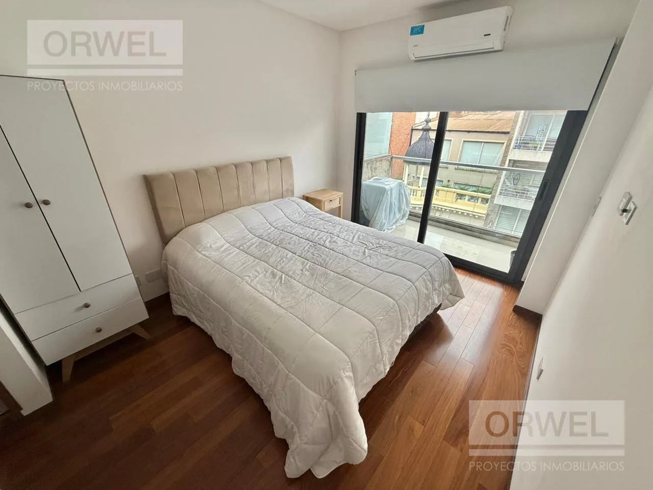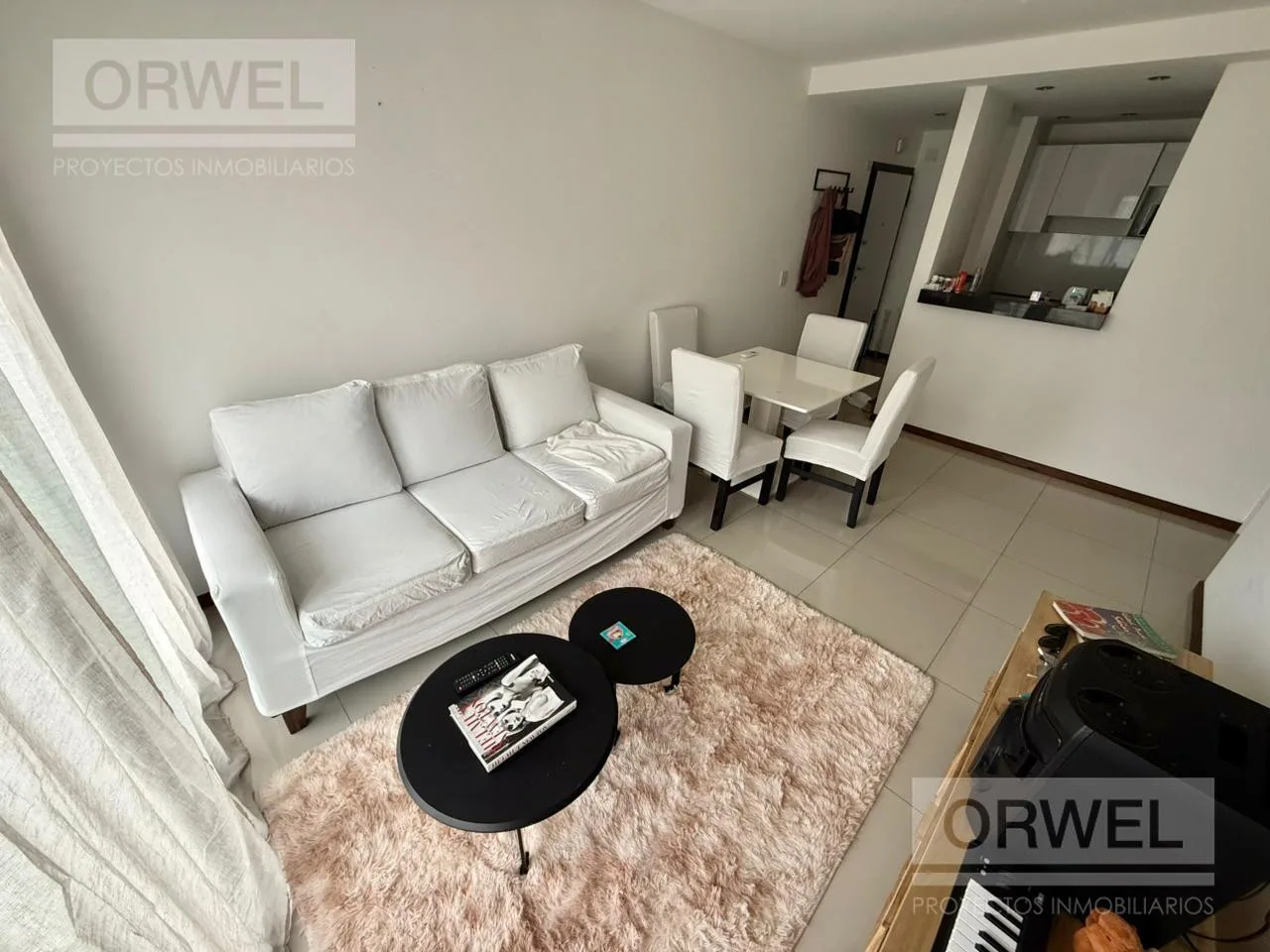 Furnished and equipped one-bedroom apartment in Colegiales on the 6th floor, street-facing with a continuous balcony. It has a living-dining room, kitchen with integrated laundry area, a guest toilet, and an en-suite bedroom. The rental term is 1 year at USD 850 per month plus building fees and services, with a security deposit and income documentation required. Move-in from mid-May. The listing notes accessibility for people with reduced mobility.