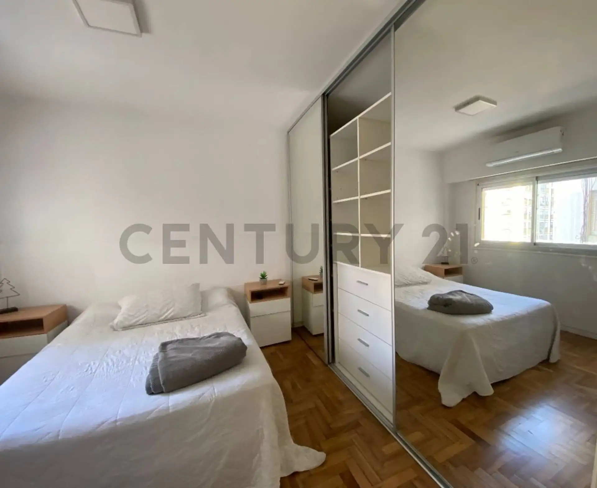 One-bedroom apartment, recently remodelled, with 1 modern bathroom. It has a living room, a kitchen, and a suite bedroom with a double bed and a French balcony. A washing machine is included in the unit; furnished.