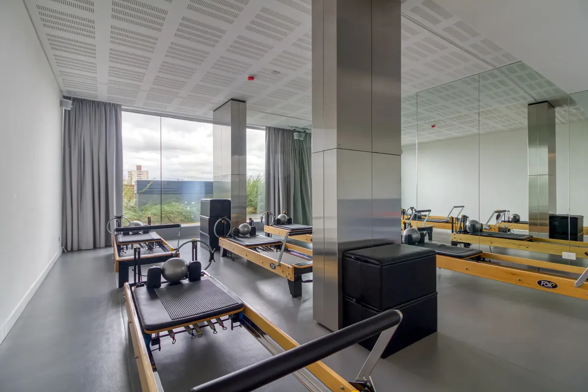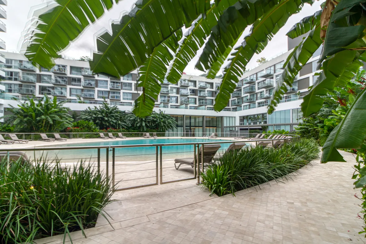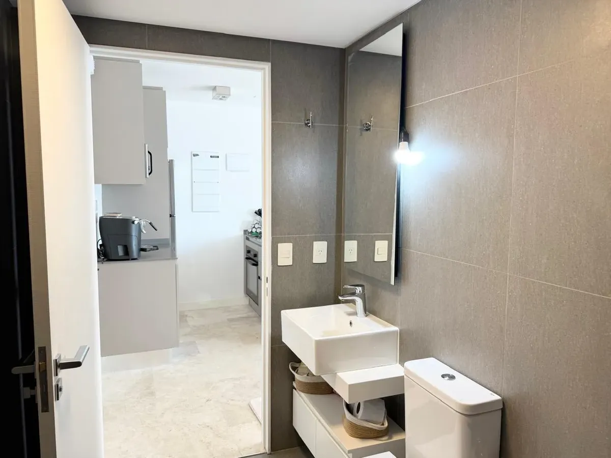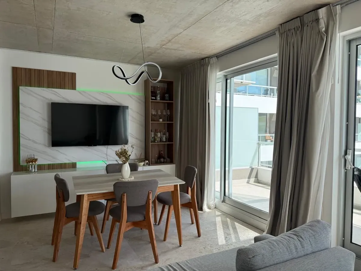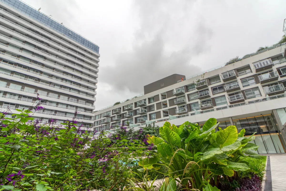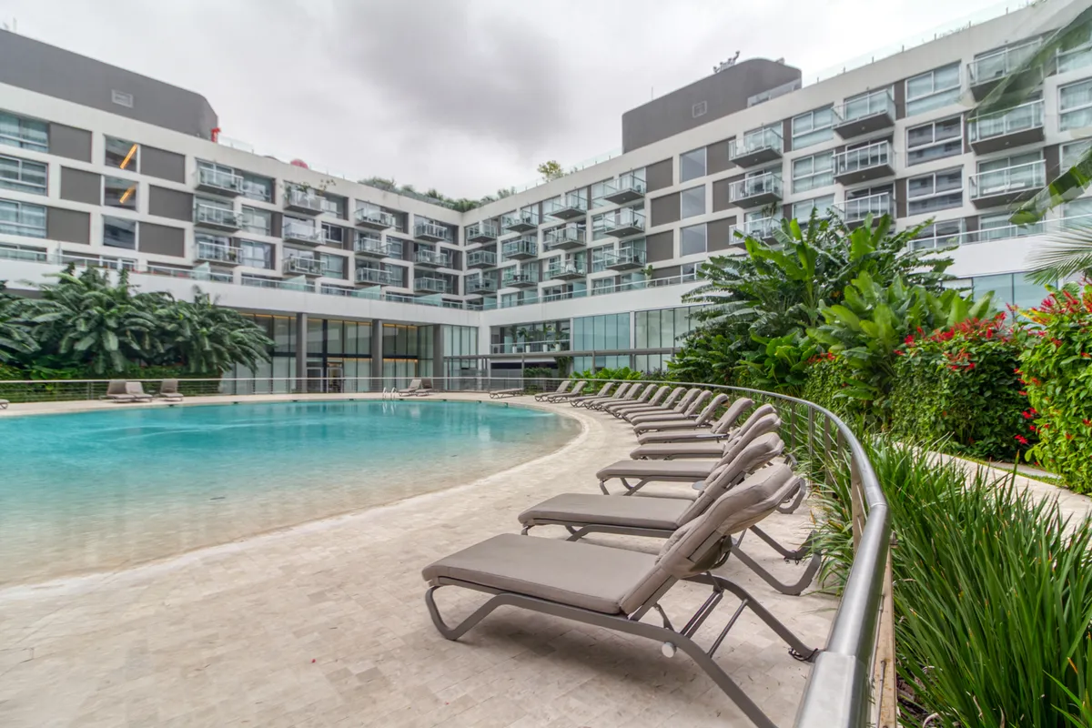 Studio apartment with 1 bathroom in a Concepción Live complex in Colegiales, furnished and equipped. It has an integrated living-dining area with access to a terrace-like balcony, and a kitchen within the same space; the bedroom area is set up with a fold-down bed and floor-to-ceiling wardrobes. The building offers outdoor pool, heated indoor pool, jacuzzi, spa with sauna, gym, coworking areas, private cinema, event rooms, games room, laundry and landscaped green areas. Monthly rent does not inc