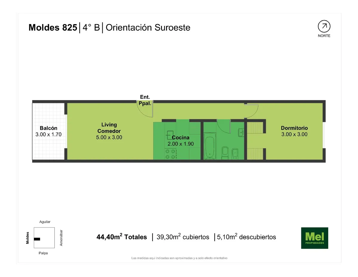Two-room apartment with balcony in Colegiales