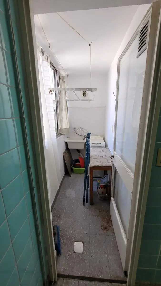 Front-facing two-room apartment with an open green view and 1 bedroom for temporary rental. Fully furnished with wood floors, living-dining room, and an enclosed balcony/terrace. Separate kitchen with fridge (freezer included) and microwave, full bathroom with bathtub, and an independent laundry area with sink, clothes rack, and washing machine. Air conditioning with hot/cold settings in the living room, ceiling fan and a balanced-flue heater in the bedroom, and TV in each room. Wi-Fi is 300 Mbp