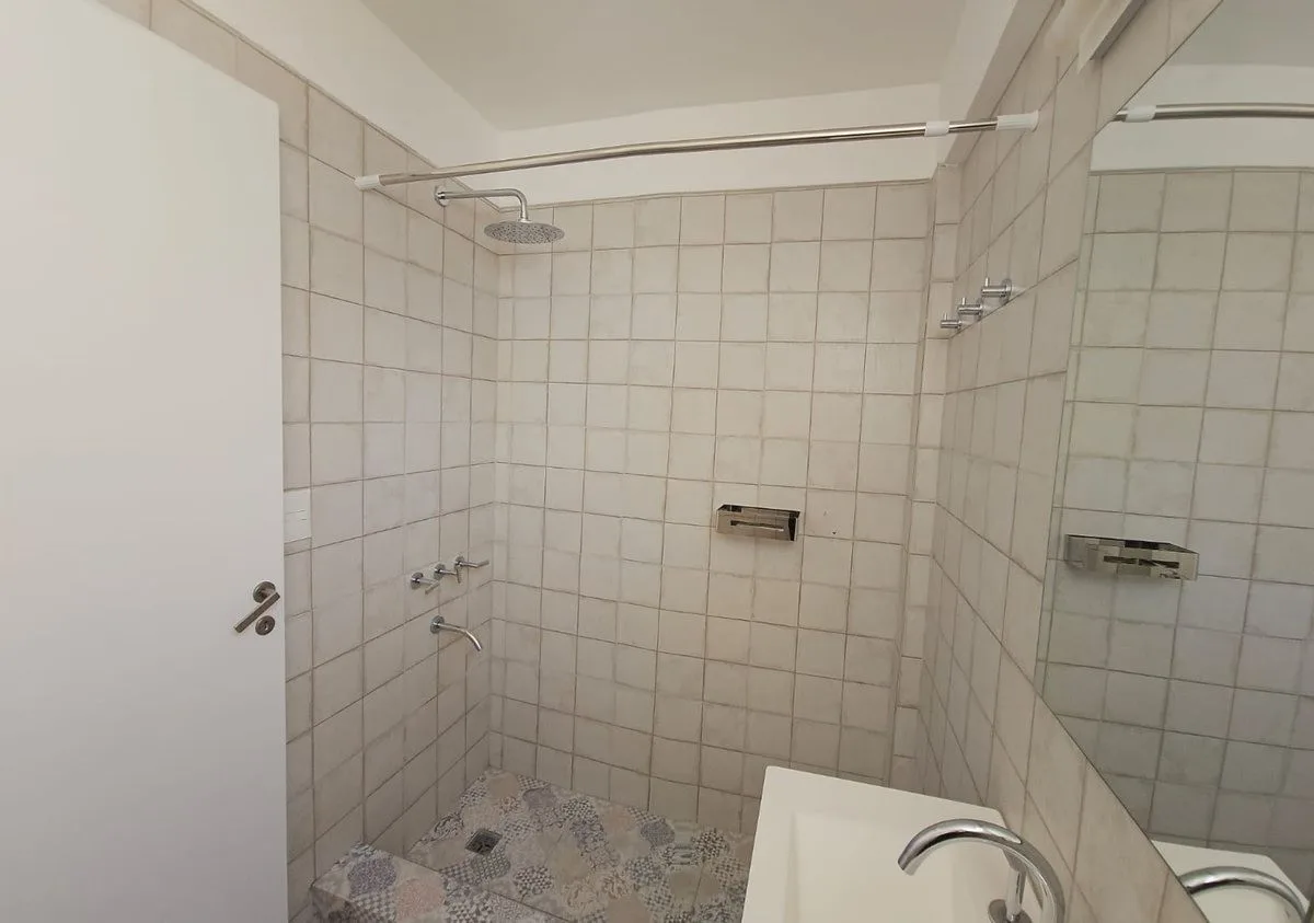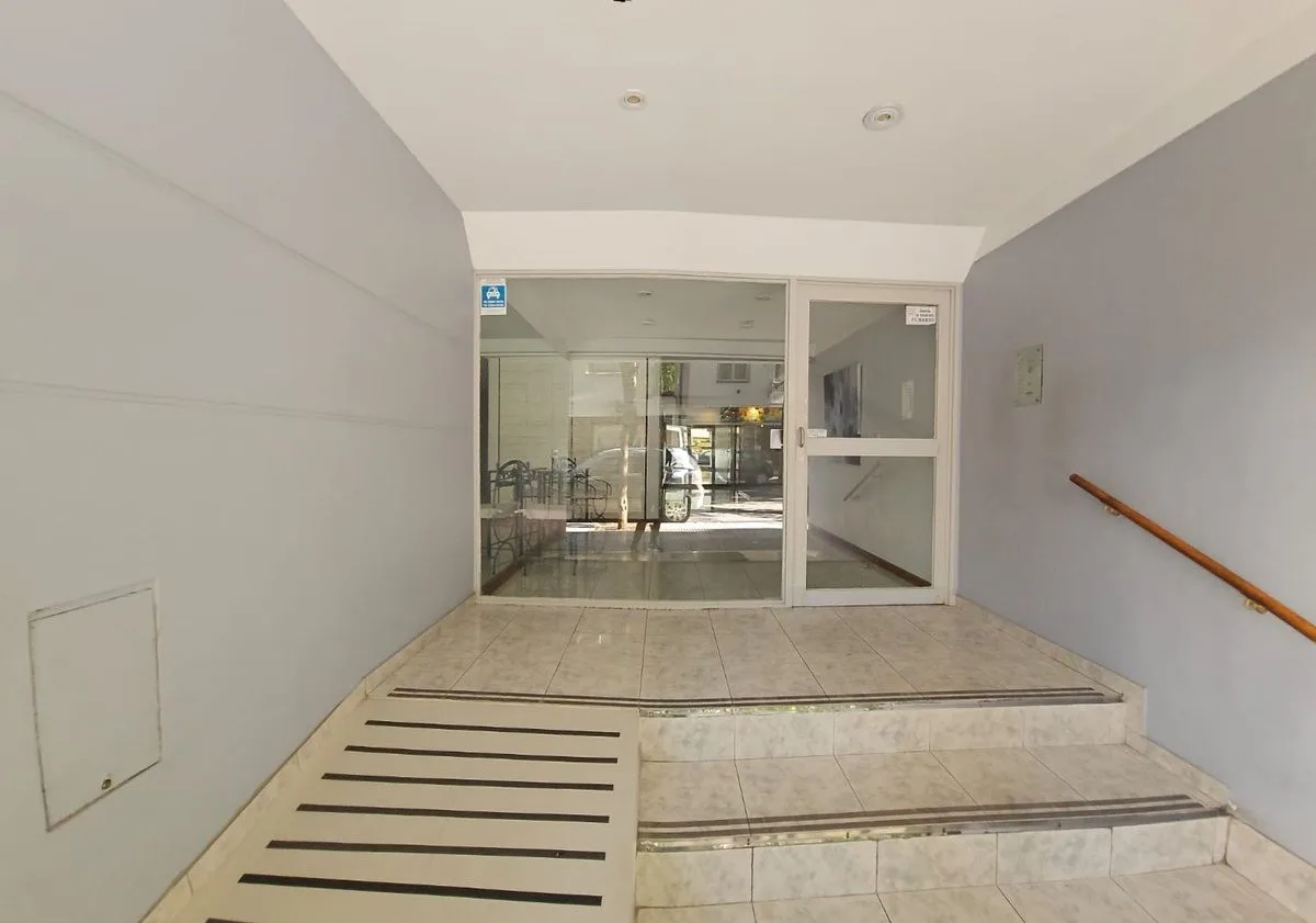 Refurbished apartment in Colegiales, at the edge of Belgrano. It is on the 7th floor and is courtyard-facing (northwest) with open views into an interior block courtyard and exterior ventilation in all rooms. Recently painted and with newly polished and plastic-finished floors. New blinds in both rooms, 3,000 frigorías air conditioning, radiant slab heating, and a remodeled separate kitchen with a new oven. The apartment has a remodeled bathroom, bedroom with built-in wardrobe and mirror, and co