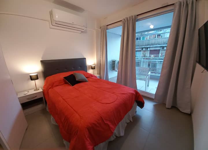 Apartment in Flores with 1 bedroom. The unit has a large balcony. The listing states the layout has its own style.