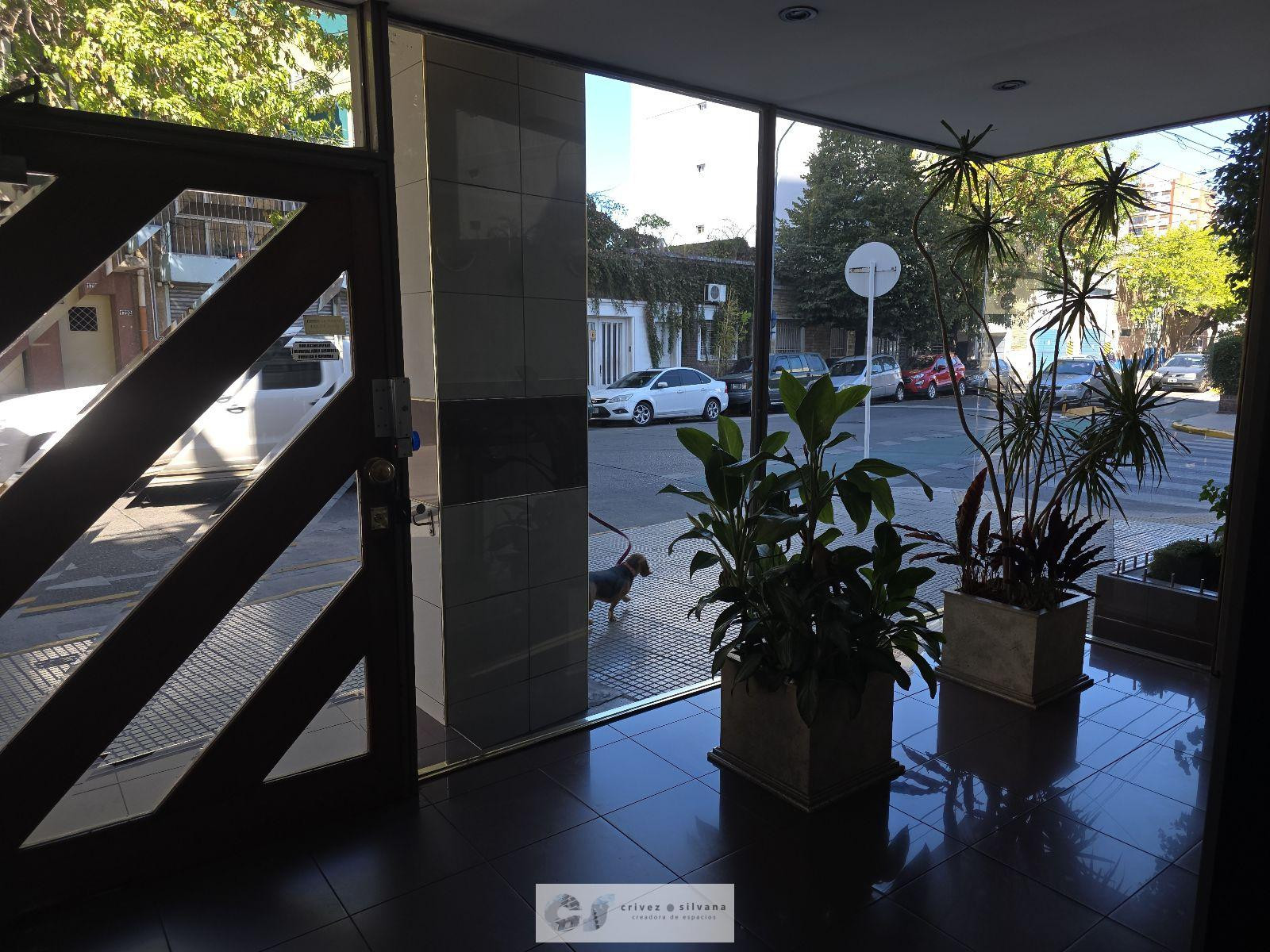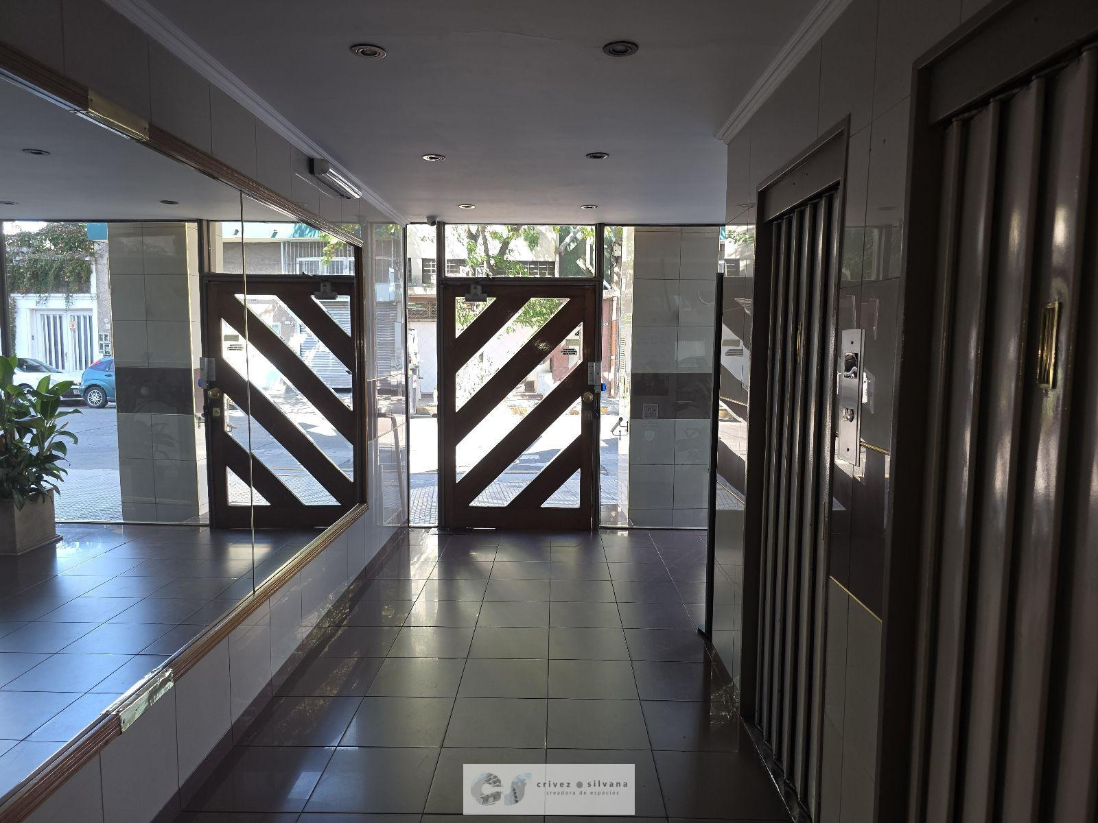 Two-room apartment for rent in Flores on Mendez de Andes street, a few blocks from Av. Donato Alvarez. It has a reception hall, separate kitchen with space for a washing machine and a fridge, a living-dining room, a distribution hallway with a closet, one bedroom, and a full bathroom. The unit is on the 8th floor, described as lateral and well lit; the building offers 24-hour security with a totem. The rental contract is for 2 years with quarterly adjustments based on IPC. Rent is $550,000 per m