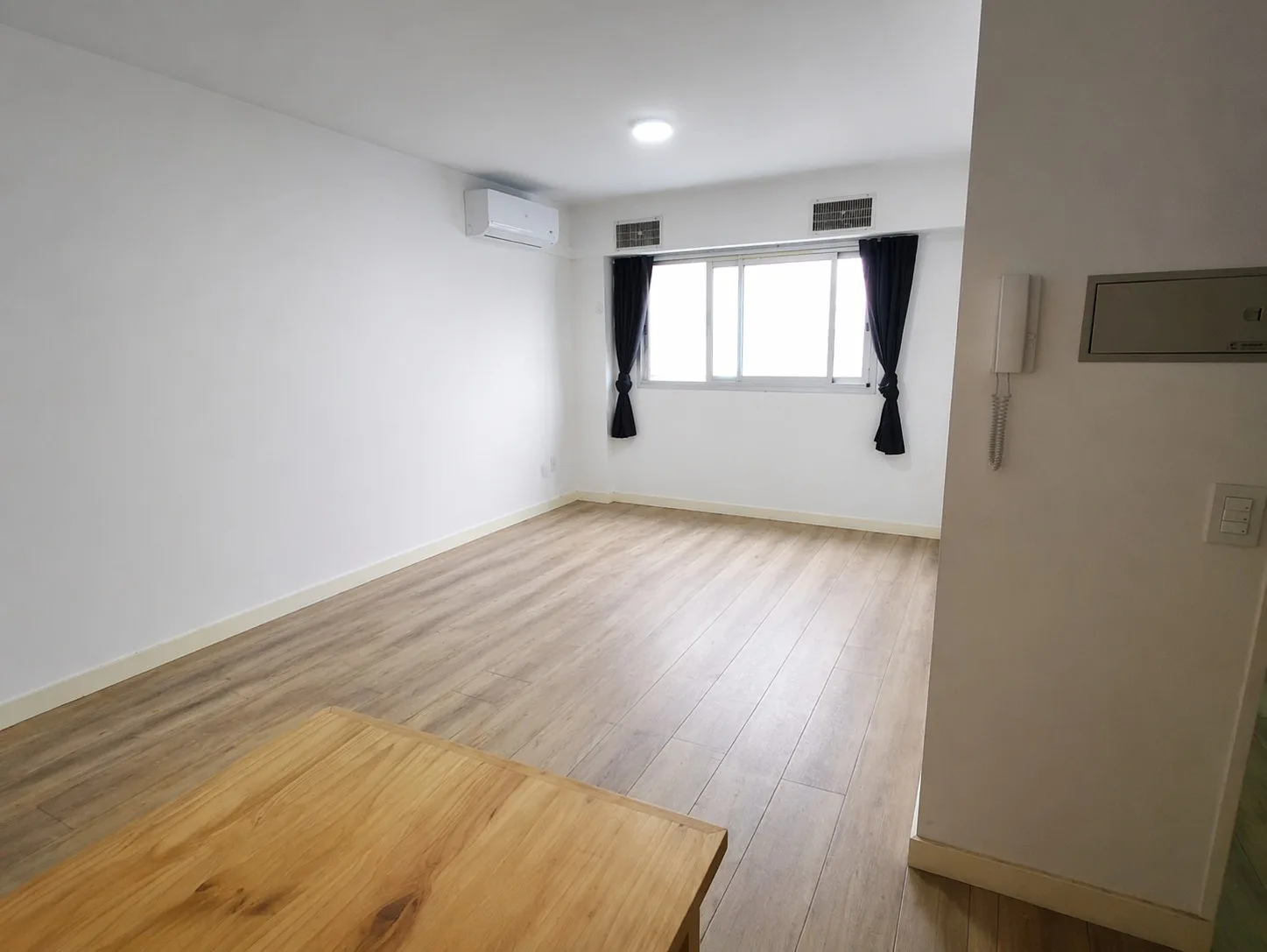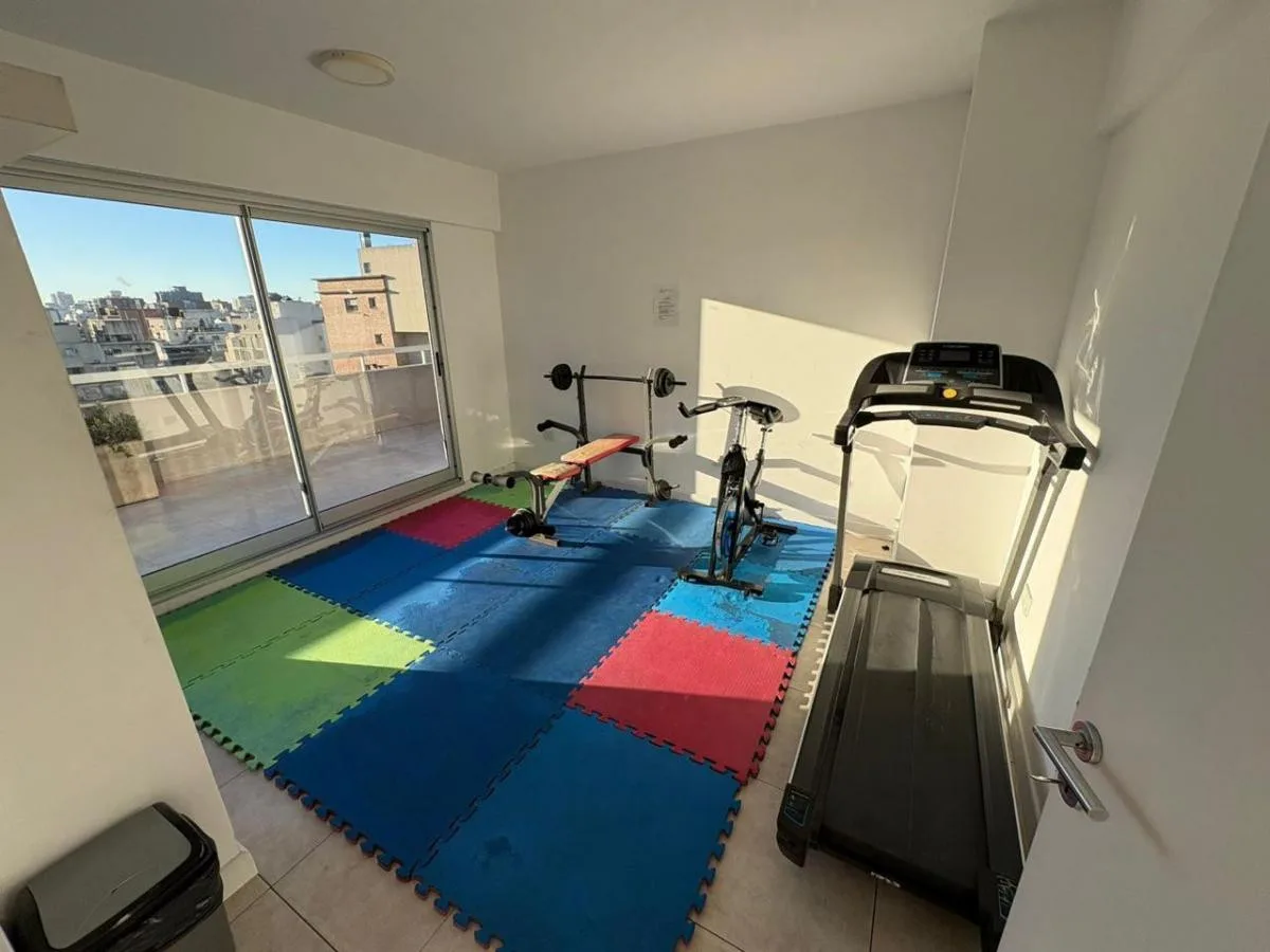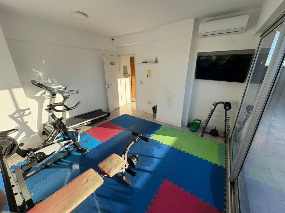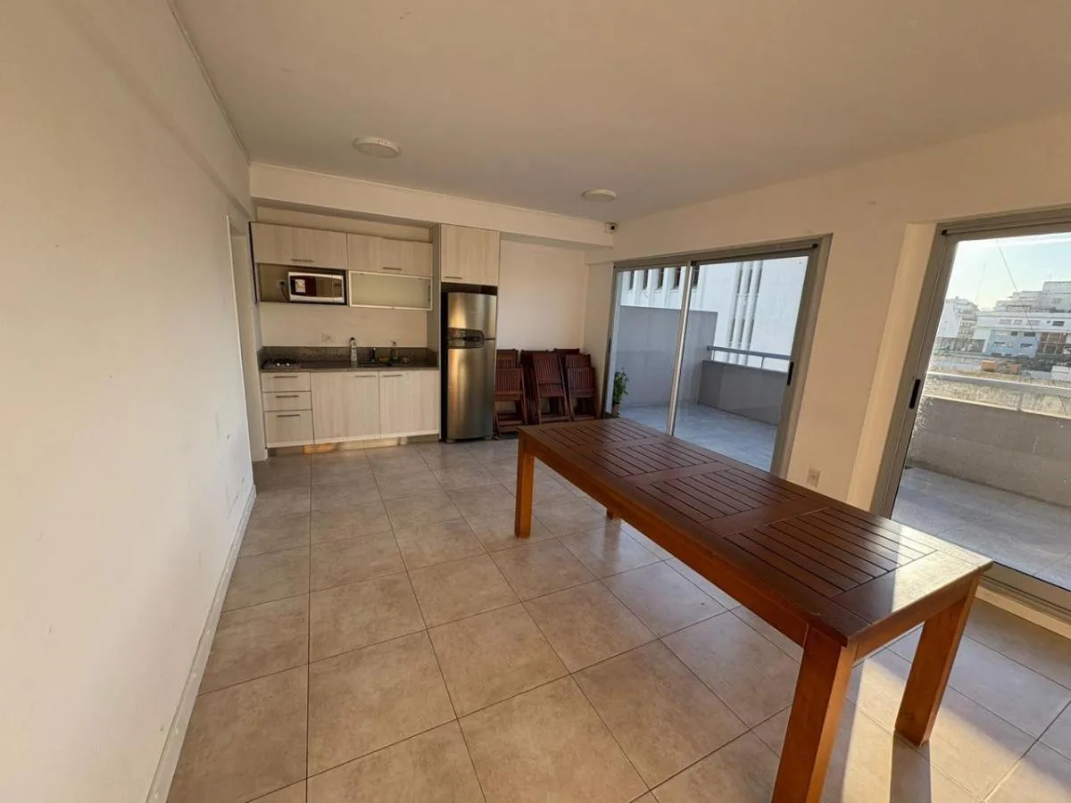 Divisible studio apartment in excellent condition on the 8th floor, courtyard-facing to the interior block courtyard (pulmón de manzana). It has a full bathroom, dressing area, and a kitchen with electric cooktop and oven. The unit includes hot/cold air conditioning and a large window. The building is a few years old and offers a communal room (SUM), pool and laundry. Building fees, utilities and internet are not specified in the listing; a rental guarantee bond (caución) is required along with