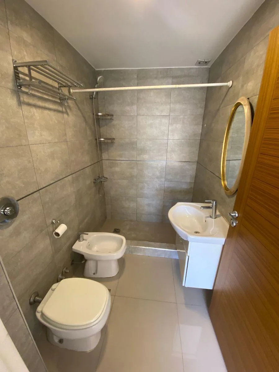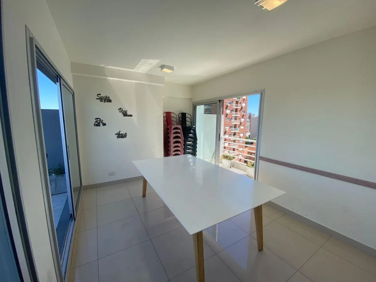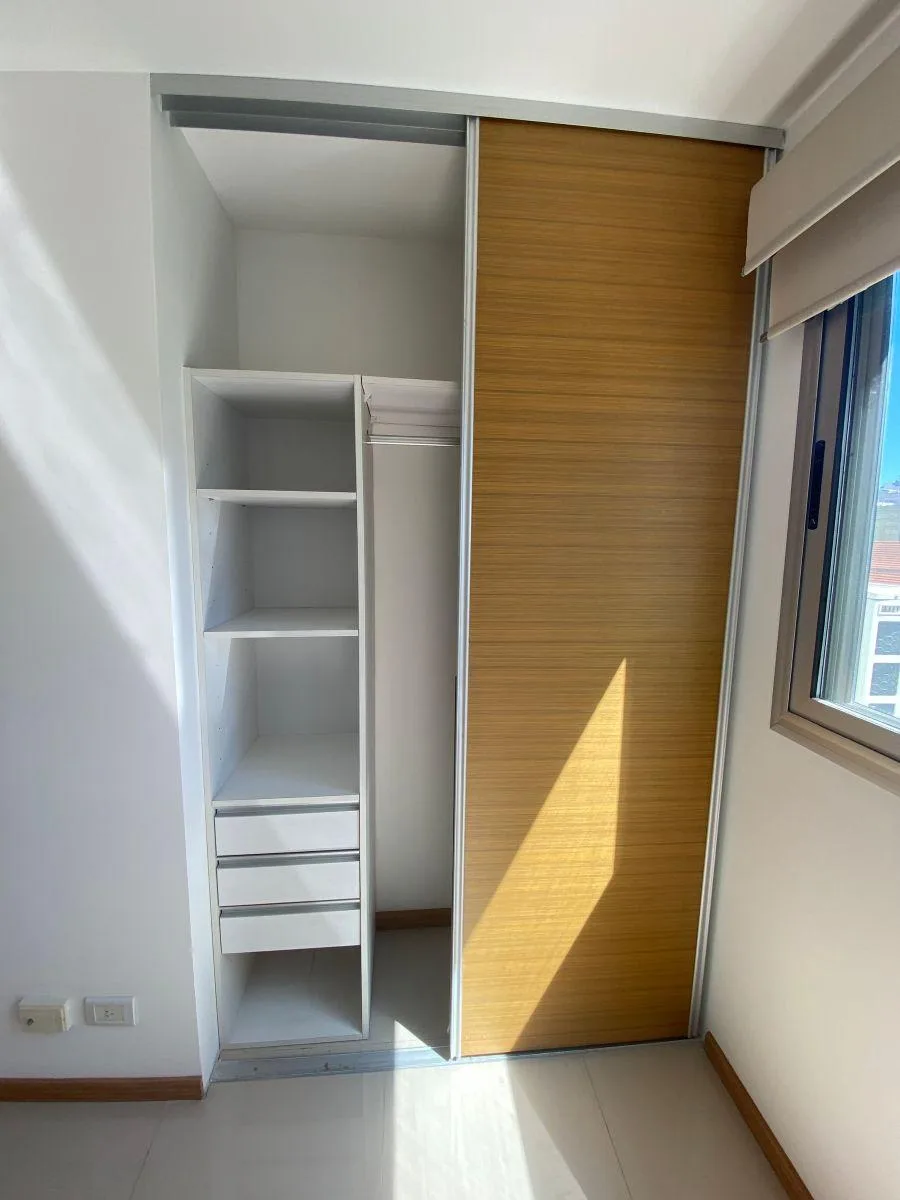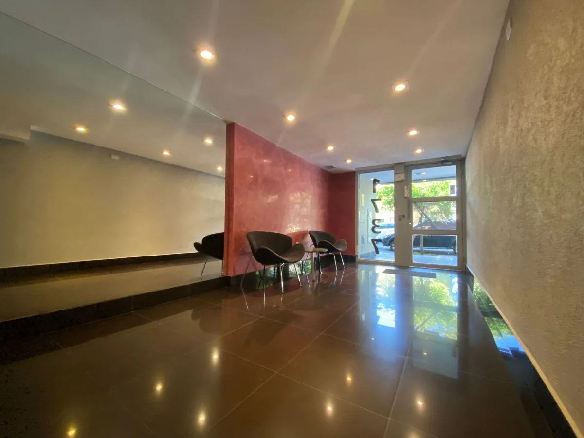 Two-room half-floor apartment totalling 50 m² in Flores, courtyard-facing. The unit has a living-dining room with access to a balcony-terrace, integrated kitchen and laundry, a guest toilet, and a suite bedroom with built-in wardrobes and a dressing area. Covered area is 45 m², with a 5 m² semi-covered balcony-terrace (2.85 x 1.55 m). The building is 9 years old and offers a fully equipped communal room (SUM) with a grill, plus accessibility access for people with reduced mobility and a generato