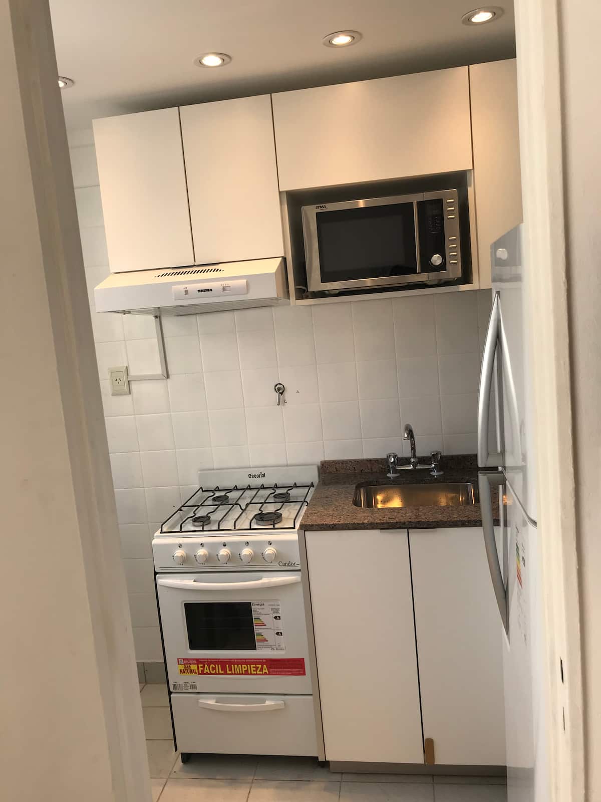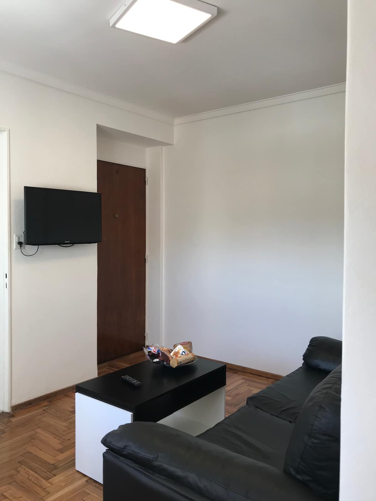 One-bedroom apartment in Flores, completely renovated. Air conditioning (hot/cold), cable service and Wi‑Fi are provided. The listing places it two blocks from Subte Line A and on Avenida Alberdi, with access to the Metrobus and the main Rivadavia transport lines.