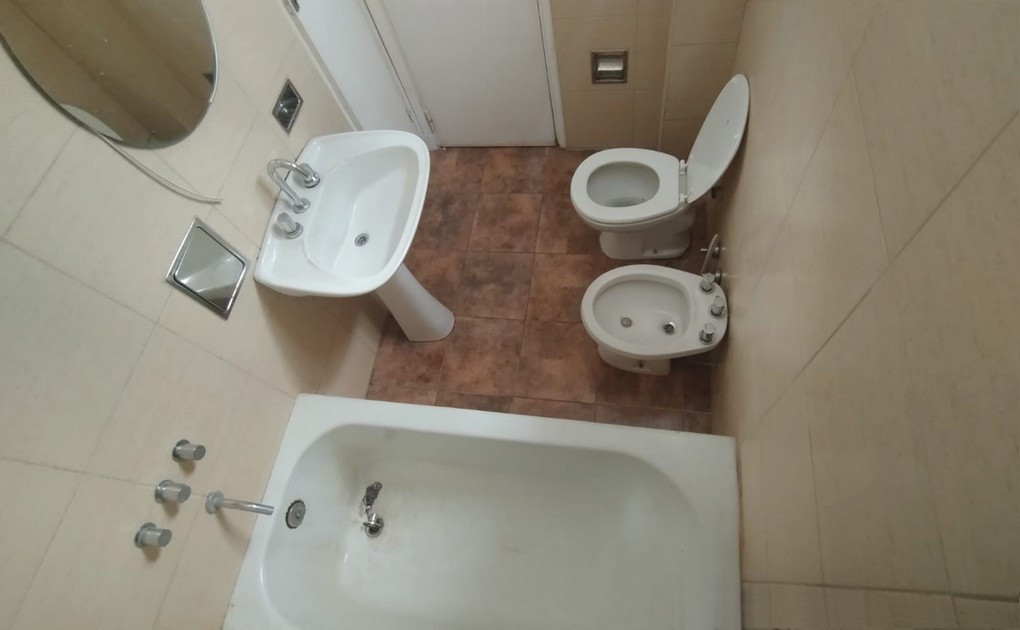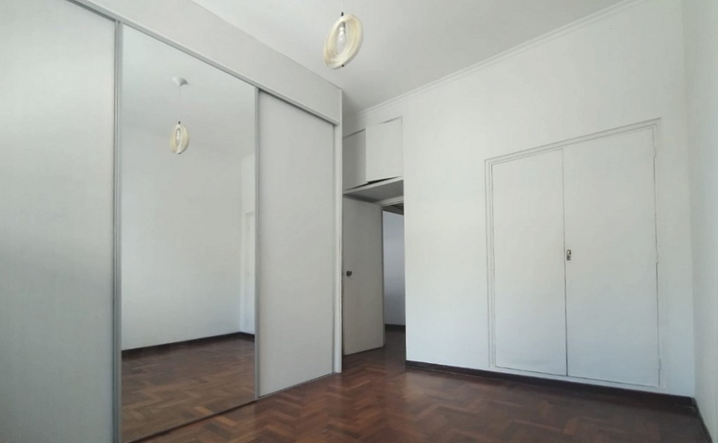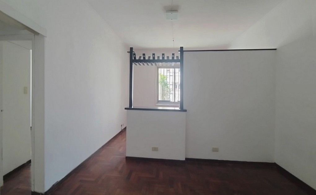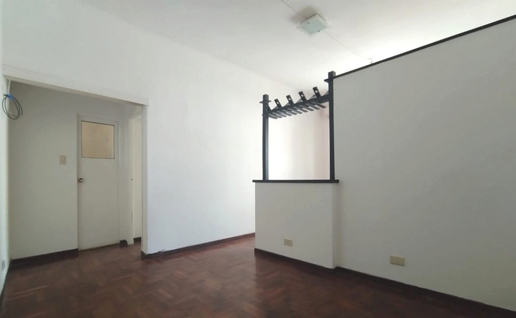 Two-room apartment with 50 m² covered area on the 1st floor, accessed by stairs. Living and dining feature parquet flooring and air conditioning for both hot and cold. Independent kitchen with gas stove, cabinets and side pantry, and a gas water heater in the laundry area. The bathroom is fully fitted with ceramic tiles, and the bedroom has 2 built-in wardrobes including a storage bay and air conditioning for hot and cold.