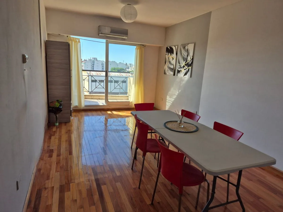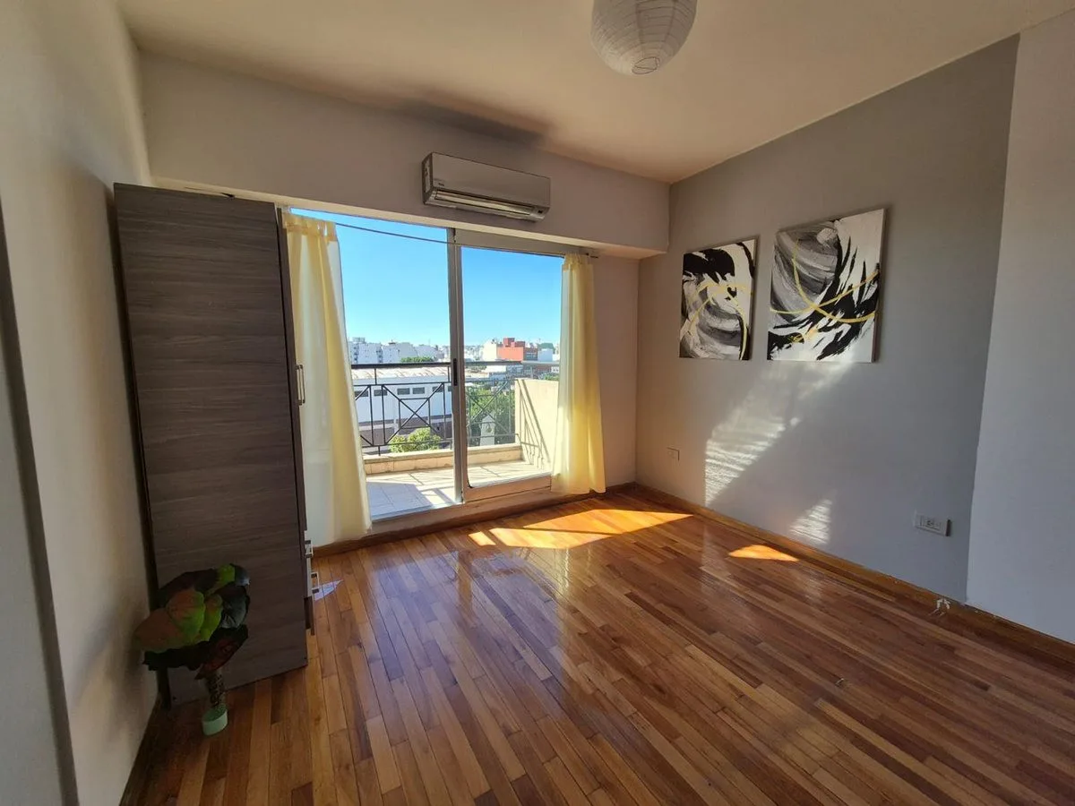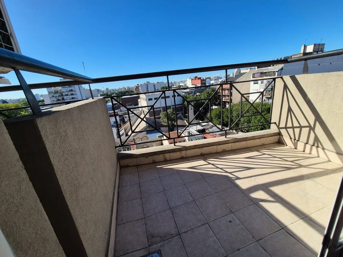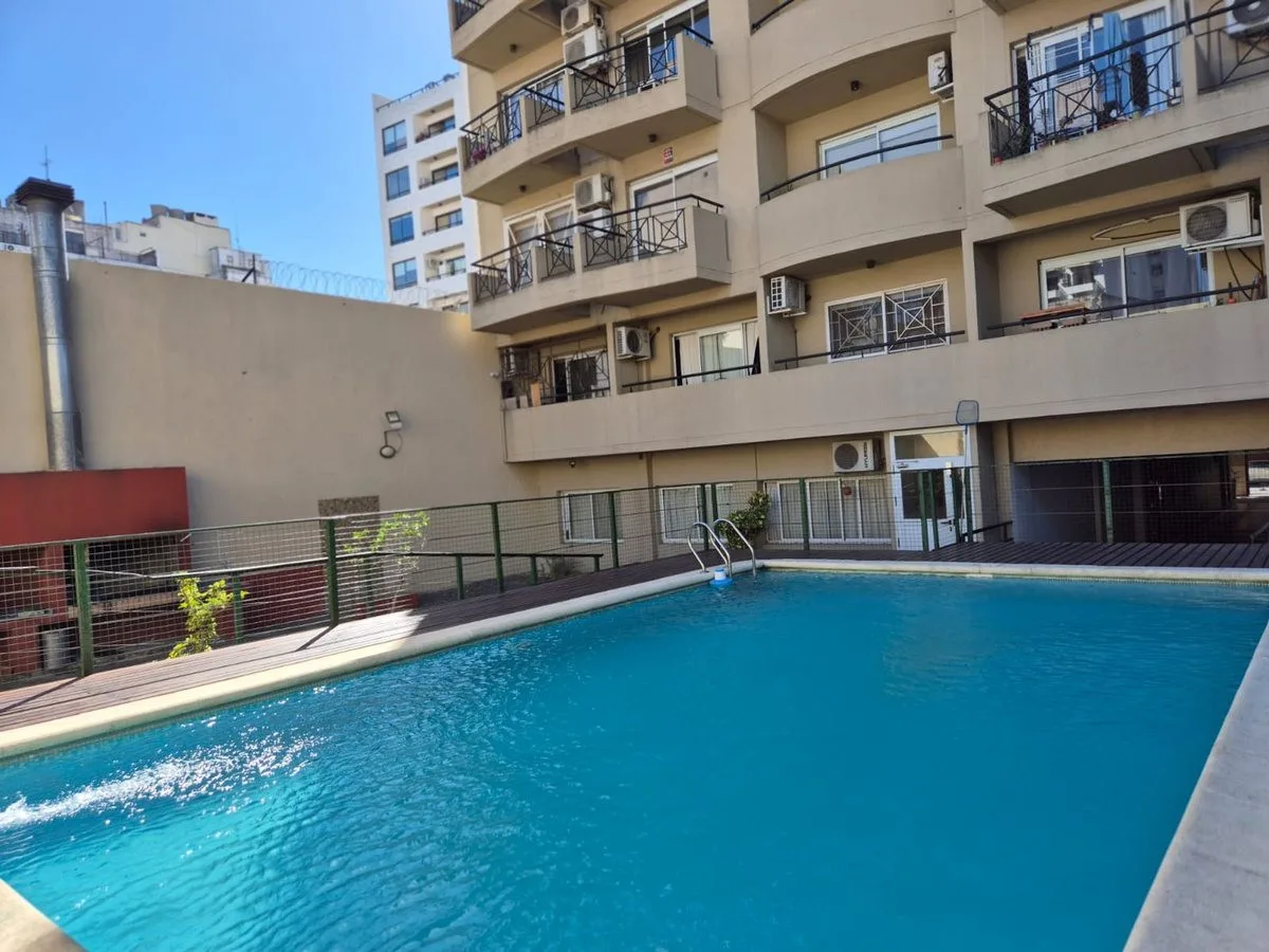 Studio apartment in Floresta with a balcony terrace and street-facing large front window. 1 bathroom, integrated living and kitchen, built-in storage and a designated area for a washer, plus a separate sleeping area with an additional wardrobe. The unit has cold/hot air conditioning and is fully electric. Building amenities include a large pool, BBQ area, and a communal room (SUM). Building fees for March 2026 are ARS 72,000.