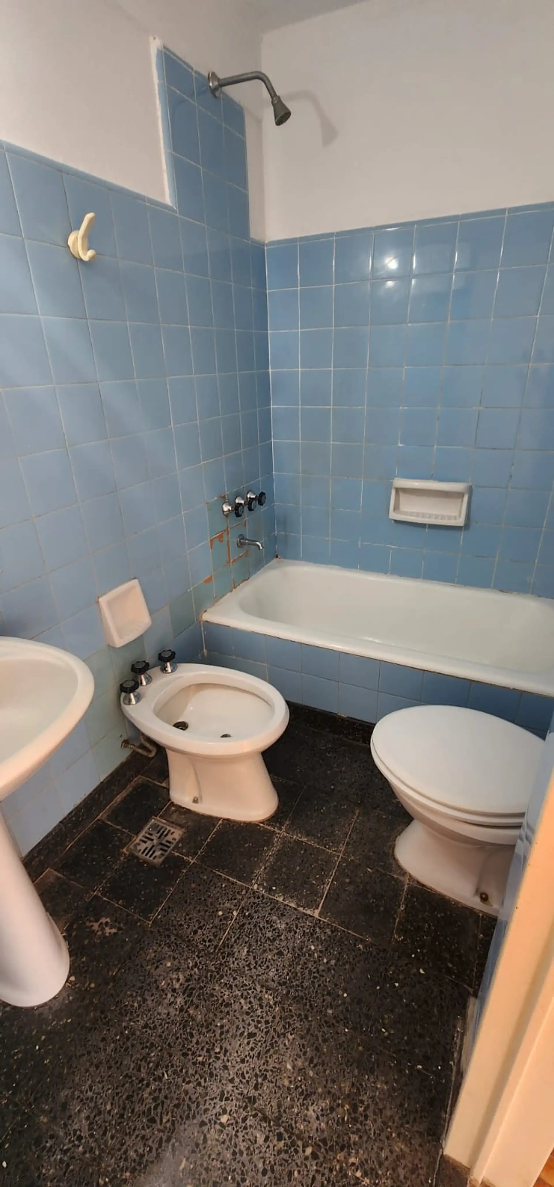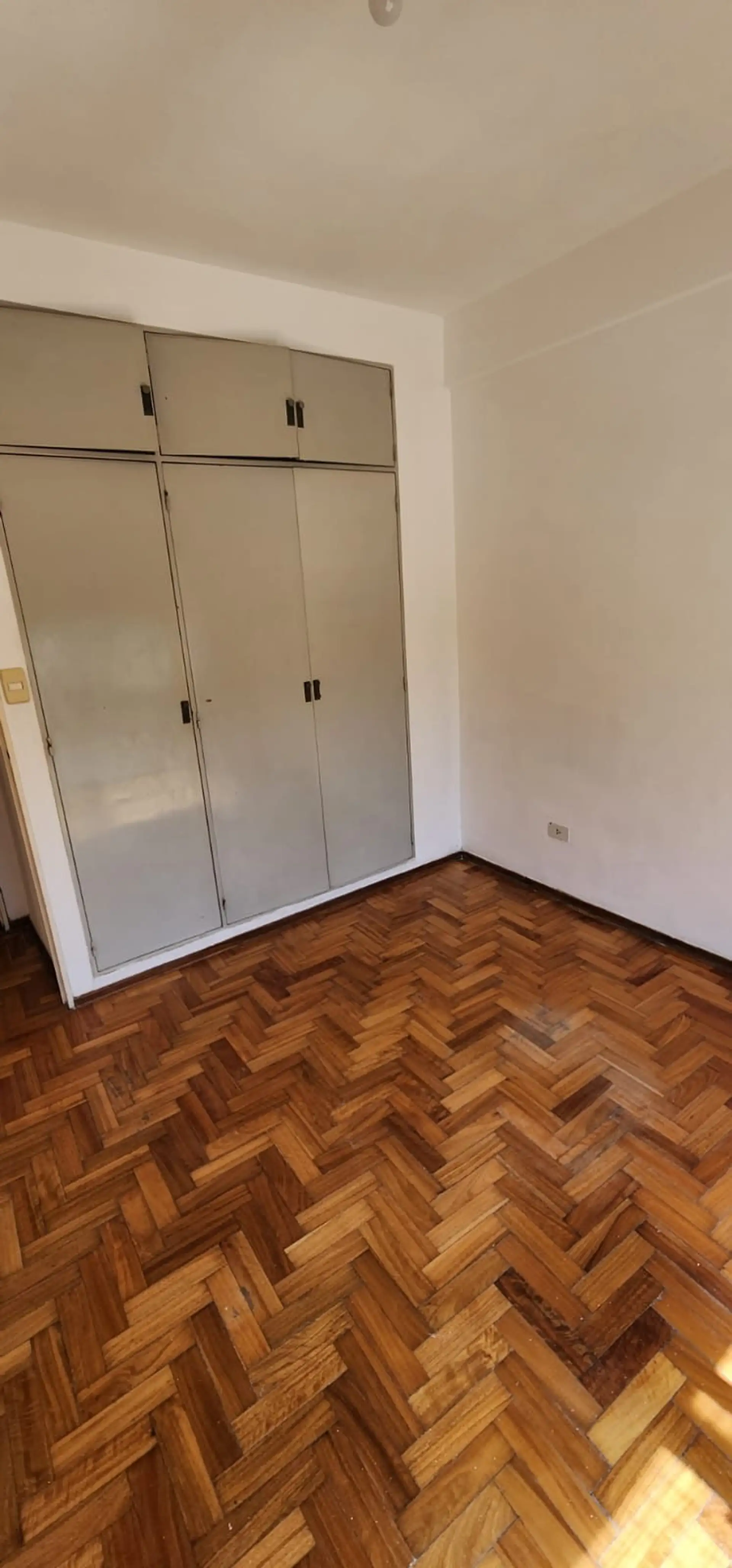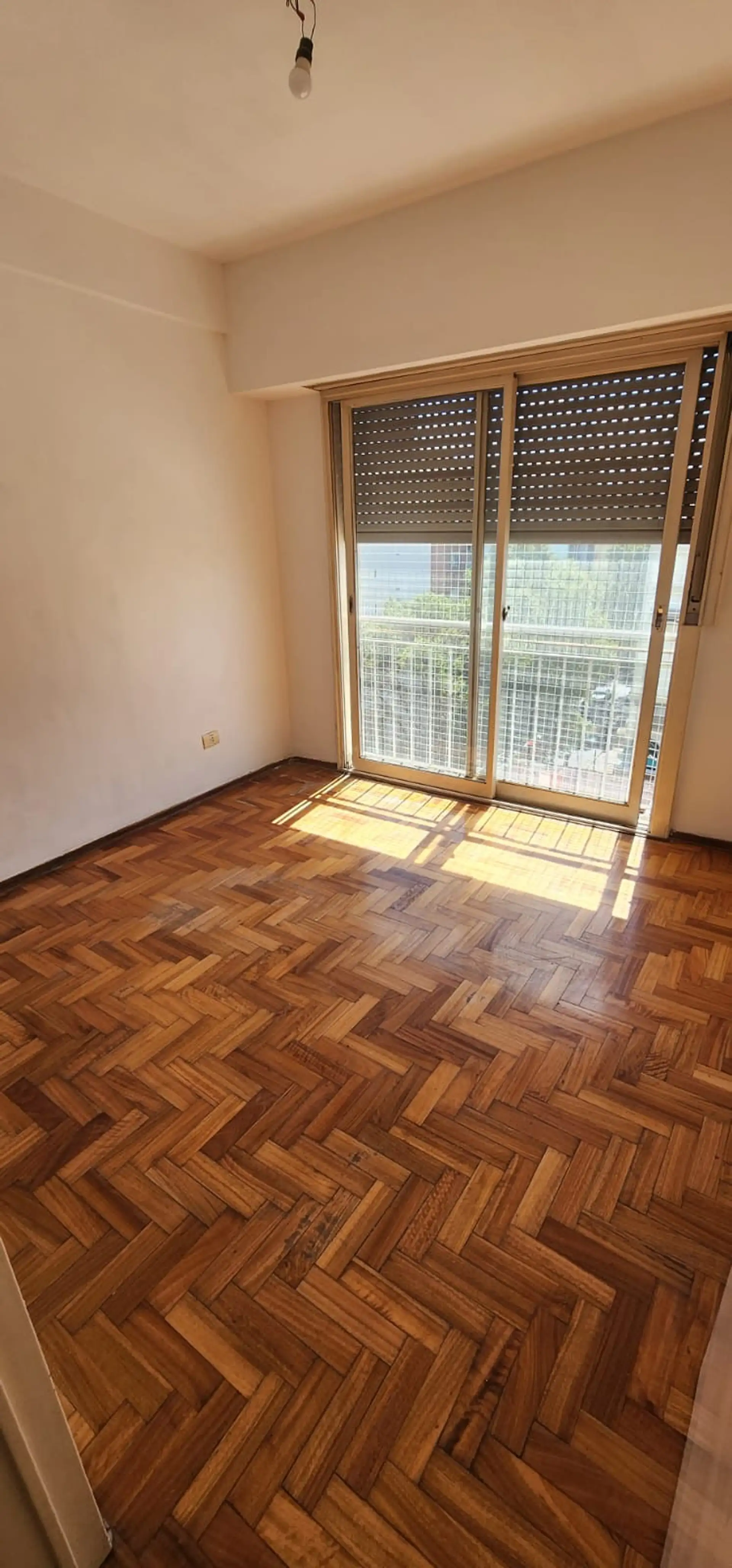 Two-room apartment in General San Martín Centro on 7th floor, between Belgrano and Moreno (Pellegrini 1921). It has 1 bedroom with a built-in wardrobe, a full bathroom, and a kitchen with upper and lower cabinets plus a separate laundry area, with a water heater. The living room includes a window, and the unit has heating via a calefón; building fees are described as low. Rental terms include a 2-year lease with quarterly rent increases by IPC, no pets, a rental guarantee bond or co-surety, fire
