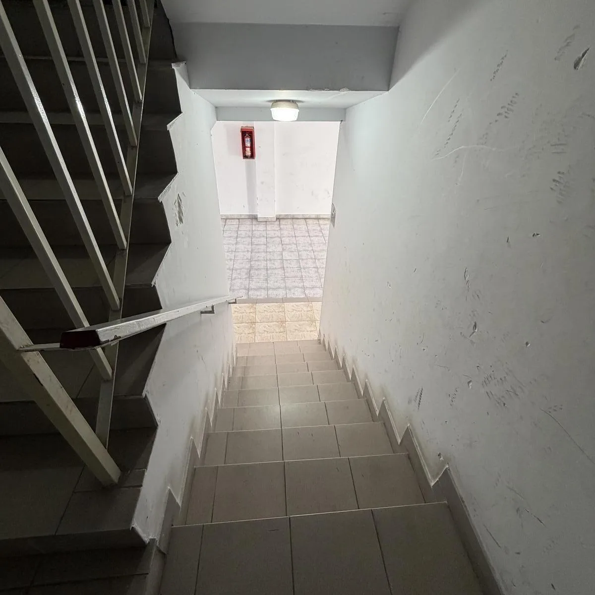 Two-room apartment on the ground floor accessed by stairs, courtyard-facing. It has a balcony, an integrated kitchen-dining area, a full bathroom with shower, and a bedroom with built-in closet. Building fees are low. The rental terms listed are: rent of $500,000 per month, a deposit of $500,000, agent’s fees of $650,000, stamp taxes of $170,000, and reports of $158,000, for a total of $1,978,000 at move-in.