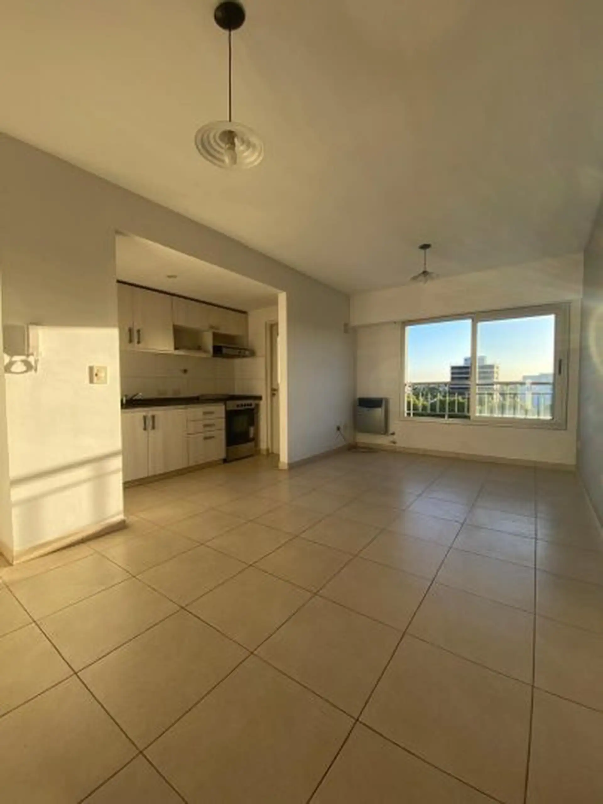 Two-room apartment in Ituzaingó Sur on a high floor, west-facing. The unit is about 40 m², with an integrated kitchen in the living-dining area, a bedroom with fitted wardrobe and a full bathroom. Included is an assigned parking space in the basement. Building fees are approximately $200,000 ARS.