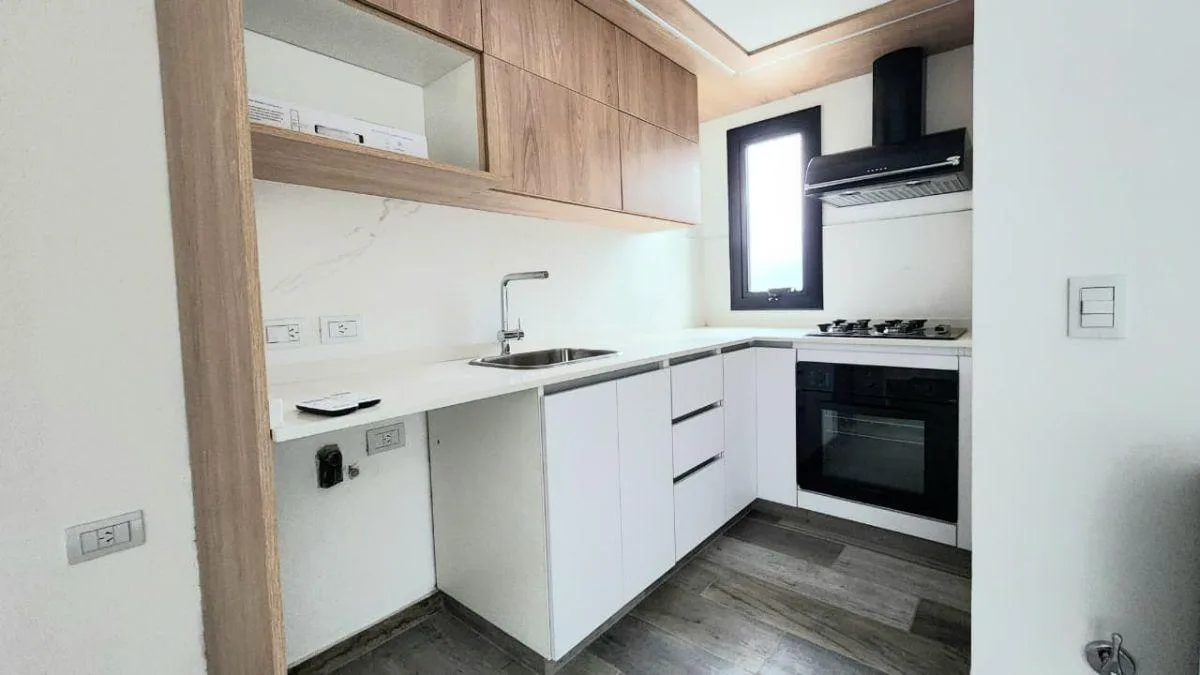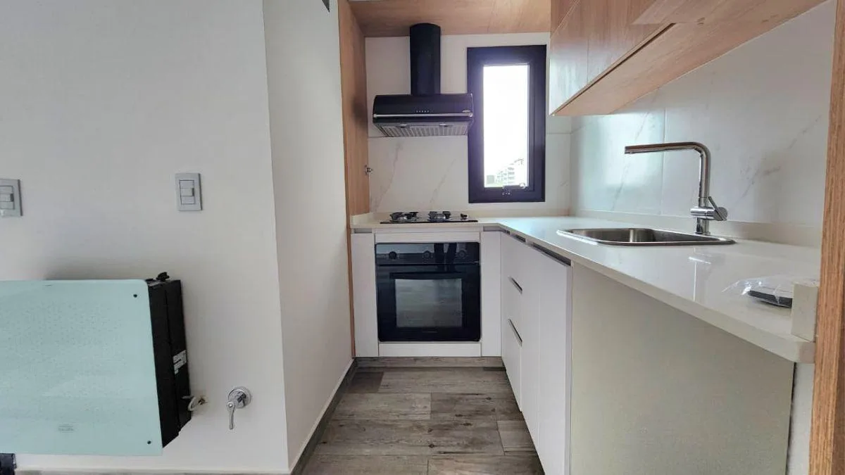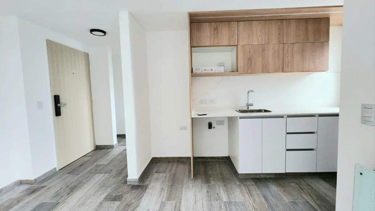Two-room apartment on the sixth floor in DISEÑO CAMACUA. Integrated living-dining area with a kitchen fitted with base cabinets and an upper pantry, built-in cooktop and oven, plus a spacious balcony with a grill. Bedroom with a closet with complete interior fittings. Equipped with 2 air-conditioning units and includes an assigned parking space (space 28) in the basement. The building has a double-height reception hall and a grill per unit. It also includes amenities on the rooftop: a solar-heat