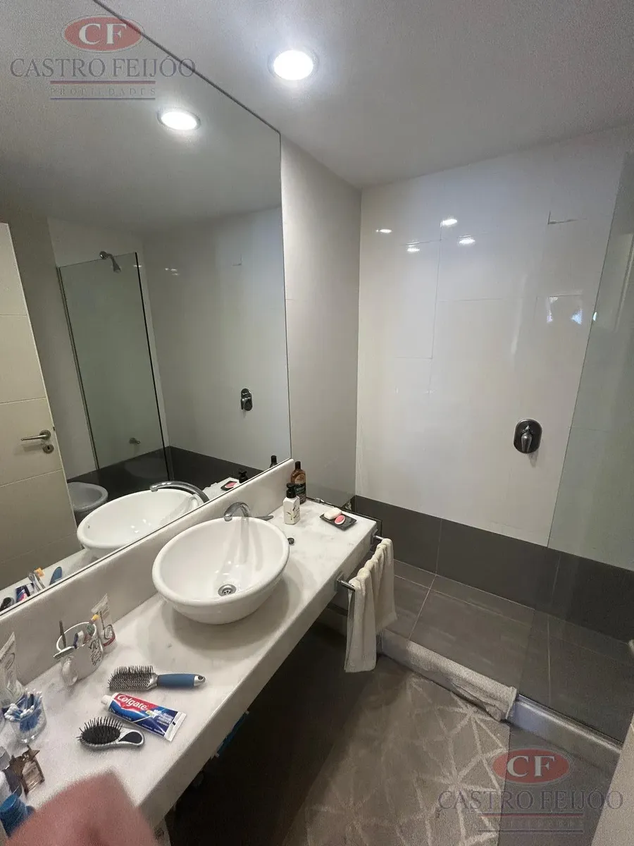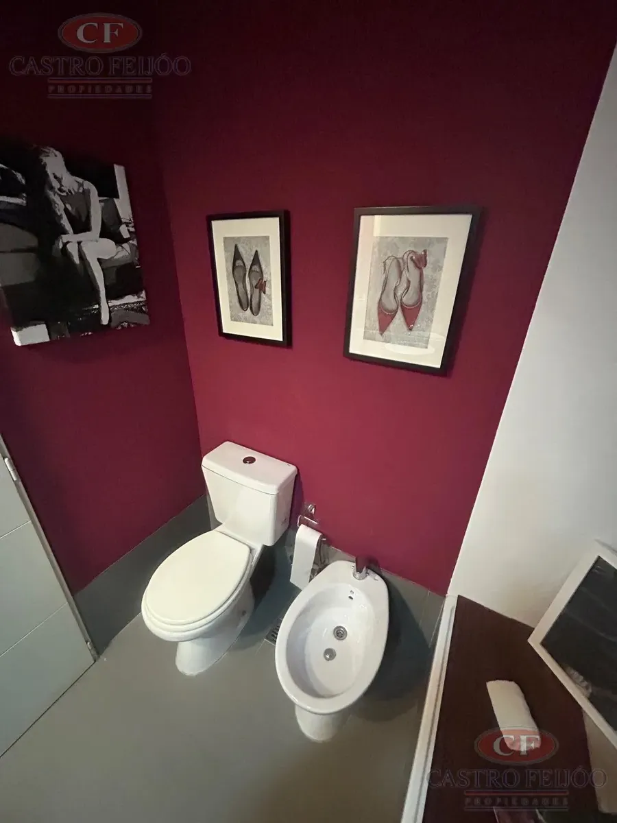 Furnished three-room apartment transformed into a two-room layout in La Lucila, with a living-dining room in an L shape and access to a balcony-terraсe. It has 1 en-suite bedroom and 2 full bathrooms. The kitchen is well equipped with a breakfast bar; all rooms have access to the balcony-terraсe, which includes a grill. The building has a pool and solarium, and the unit comes with 1 assigned (semi-covered) parking space. Building fees are ARS 280,000 and ABL is ARS 30,000.