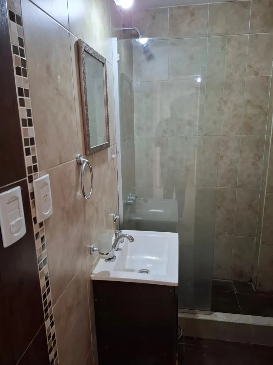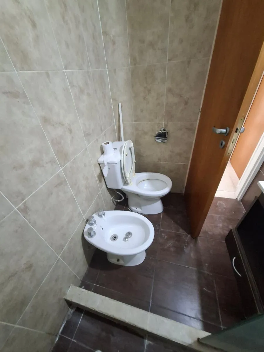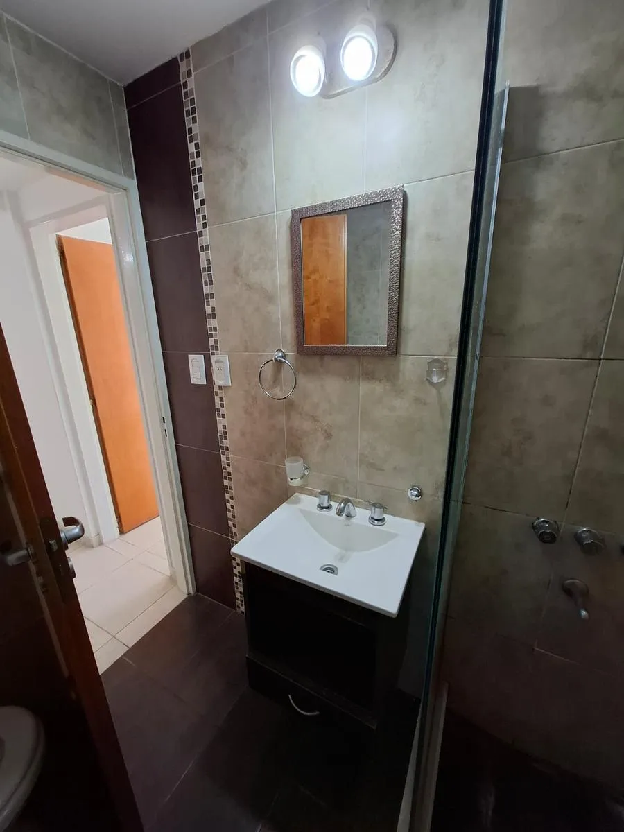 Two-room apartment with a balcony, street-facing, in Ramos Mejía. It has a living-dining room, kitchen, 1 bedroom and a full bathroom. The building has a lift and a pool on the ground floor at the rear.