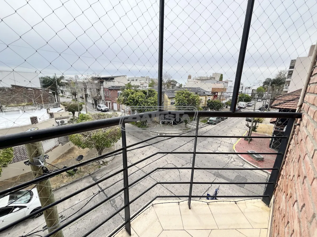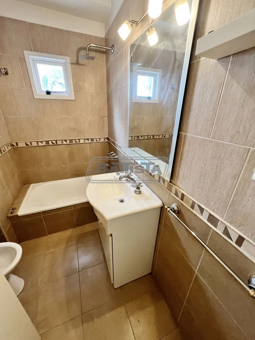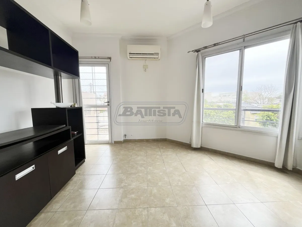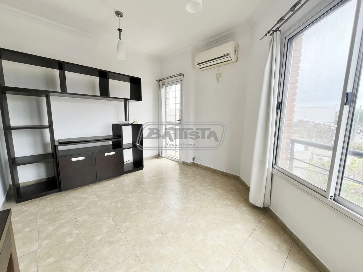 Two-room apartment with living-dining area street-facing with ceramic flooring and a balcony. Semi-integrated kitchen with base cabinets and pantry, plus a laundry space. Complete bathroom and front bedroom with floating floor and built-in wardrobe with interior fittings. In good condition.