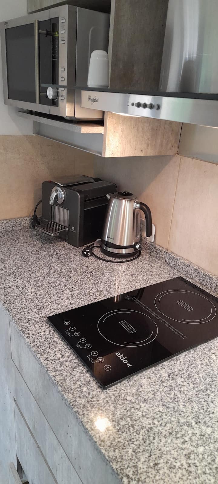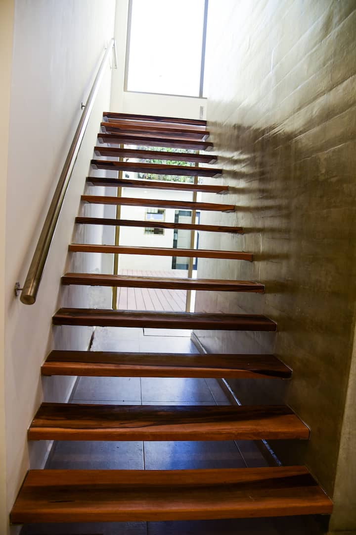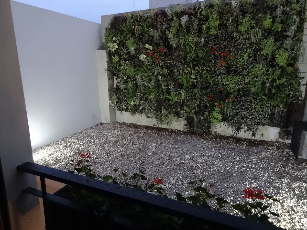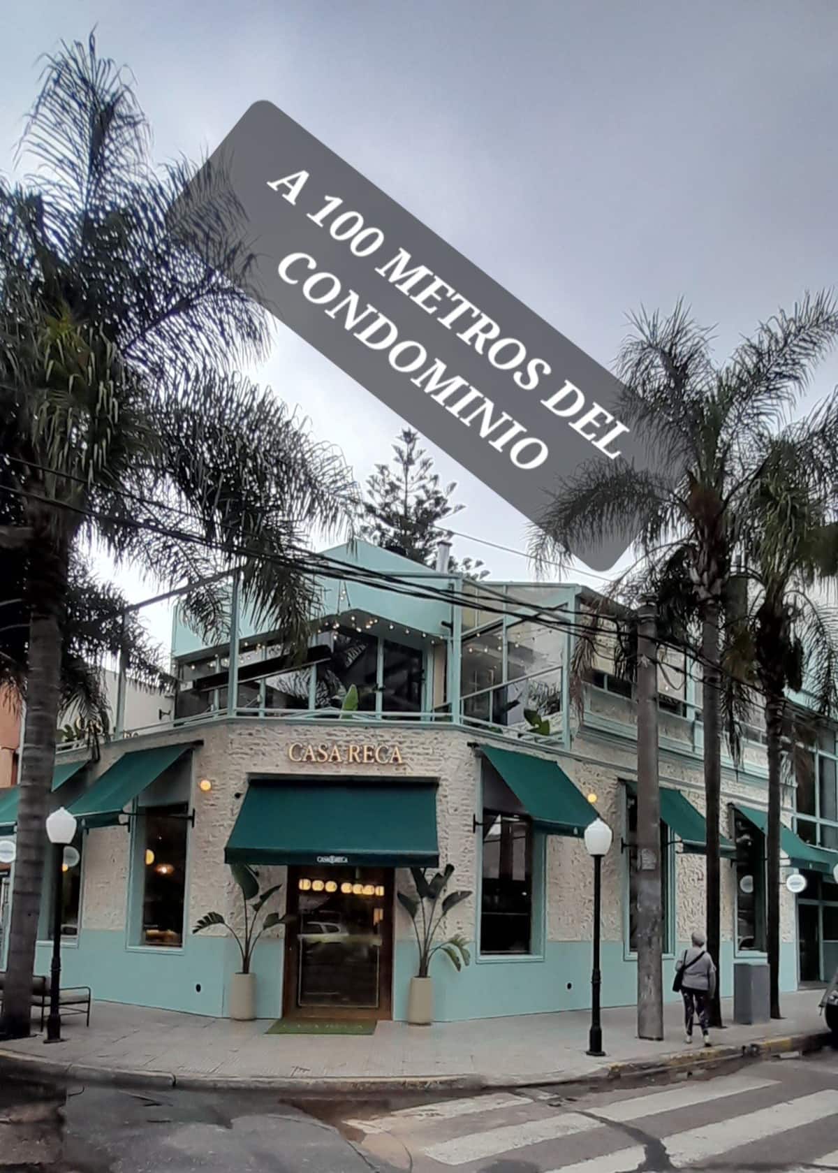 Guests have access to the condominium’s common areas, including an open space with armchairs and a bedside table. The building also has a shared laundry on the second floor with a pool and cleaning items for the apartment, such as a broom, shovel and floor rags. The property is non-smoking and does not allow pets.