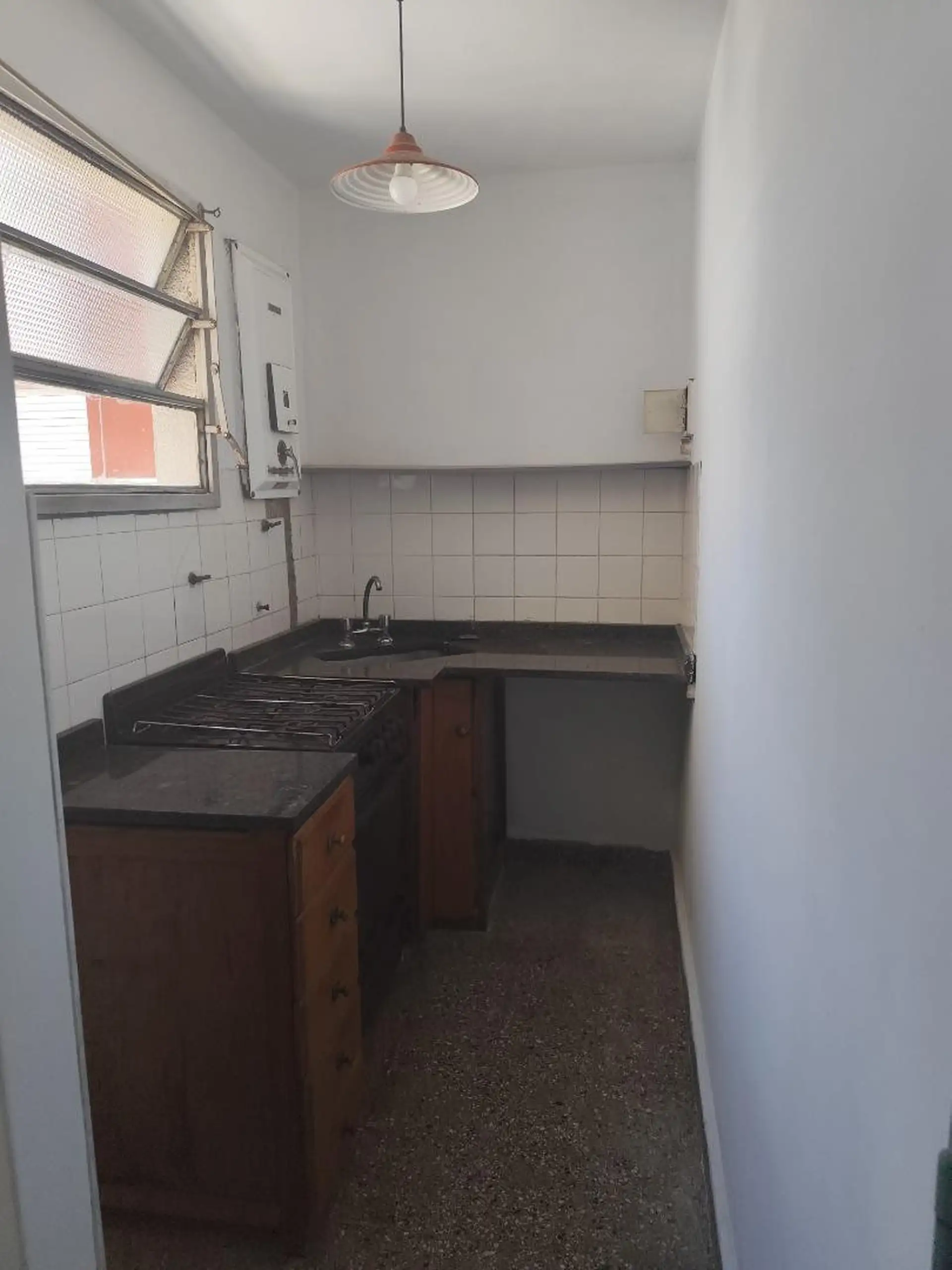 Two-room apartment with 1 bedroom, courtyard-facing (contrafrente), and a separate kitchen. Located in central Ramos Mejía, 1.5 blocks from Av. de Mayo and 2 blocks from Rivadavia. An assigned parking space is available for USD 12,000.