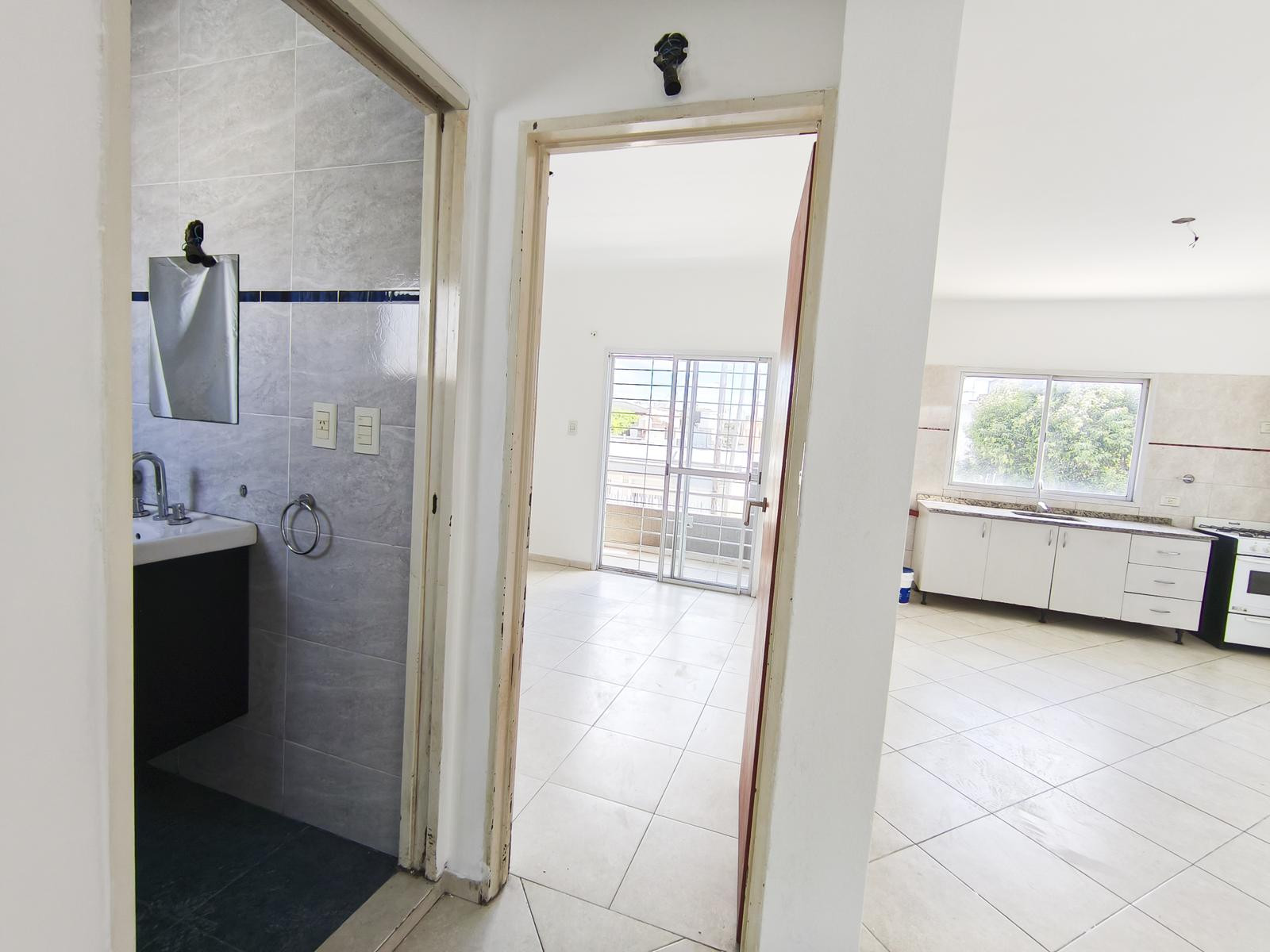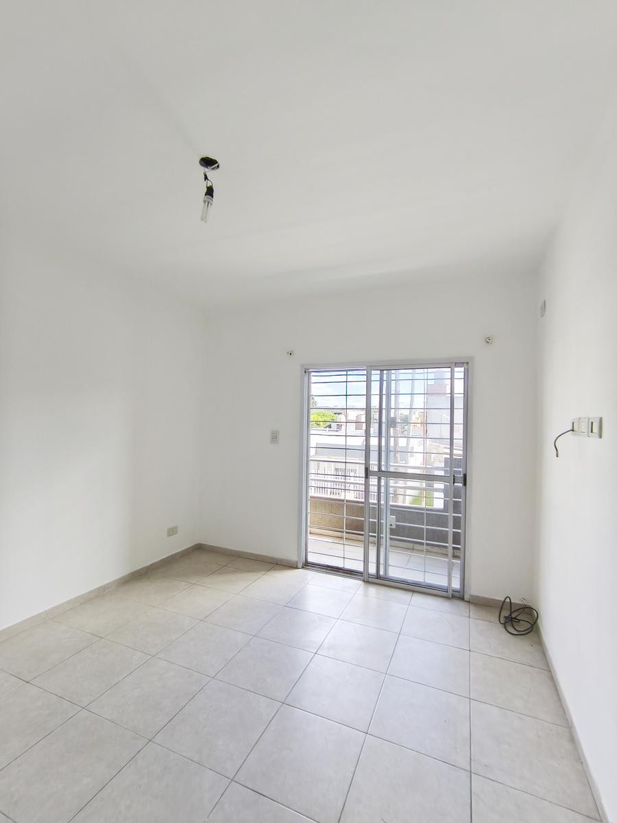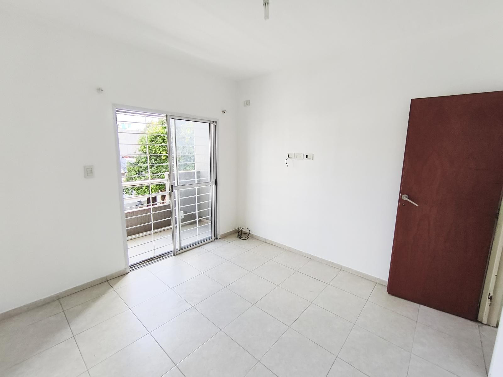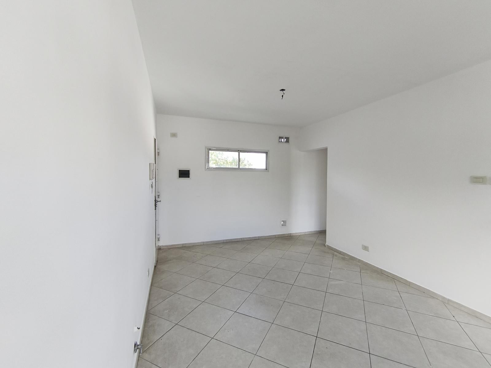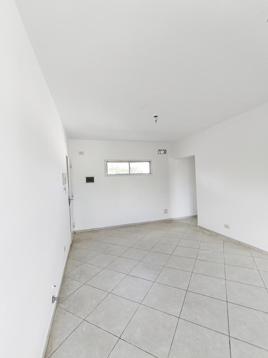 Two-room apartment with 1 bedroom, on the ground floor (first floor by stairs) in Villa Luzuriaga, La Matanza Partido. Includes a front-facing balcony and an (assigned) parking space. The building is 8 years old and the unit is described as in good condition.