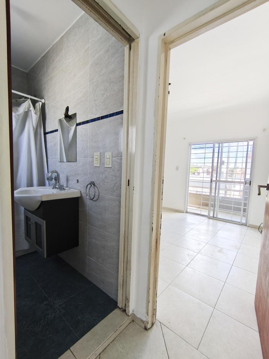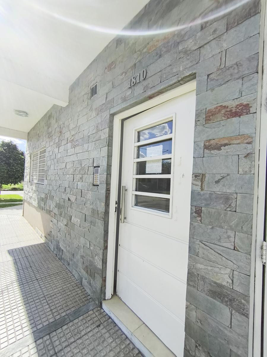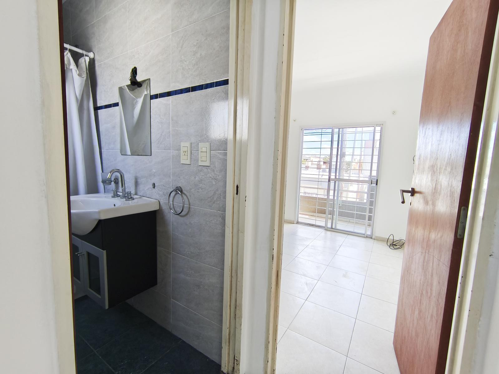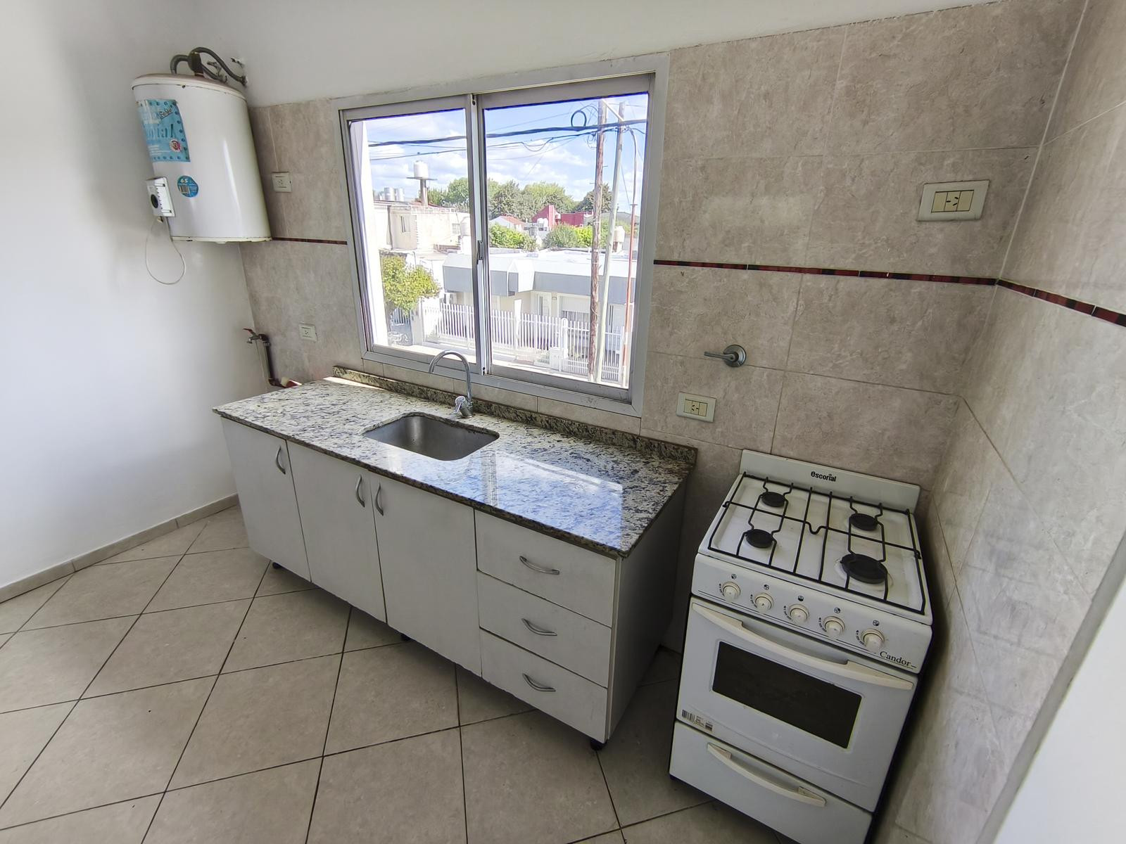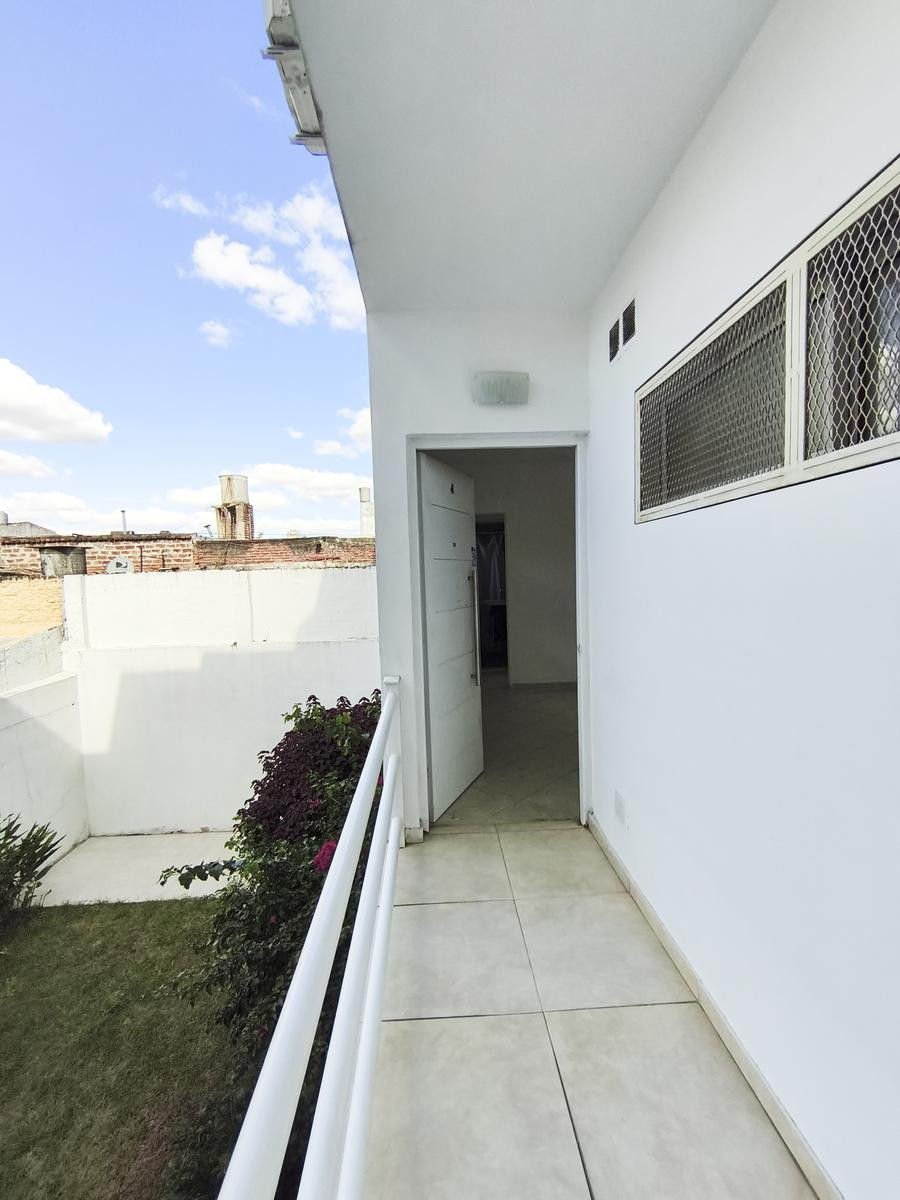 Two-room apartment with 1 bedroom, on the ground floor (first floor by stairs) in Villa Luzuriaga, La Matanza Partido. Includes a front-facing balcony and an (assigned) parking space. The building is 8 years old and the unit is described as in good condition.