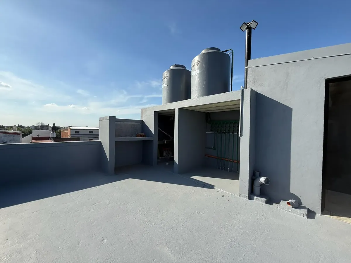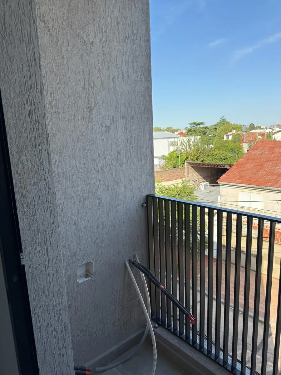 Two-room apartment of 35 m² with a private balcony, on the first or second floor by stairs. Furnished with a fully fitted kitchen; the bedroom includes an integrated wardrobe. Electric water heater (termotanque) is installed; bathroom includes a complete vanity. The complex has a shared, spacious roof terrace and a communal grill. Rent is ARS 520,000, with quarterly adjustment by IPC and a 2-year contract.
