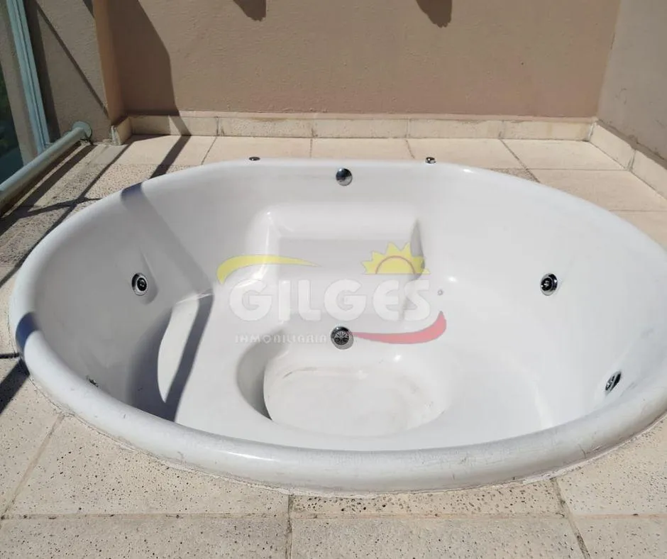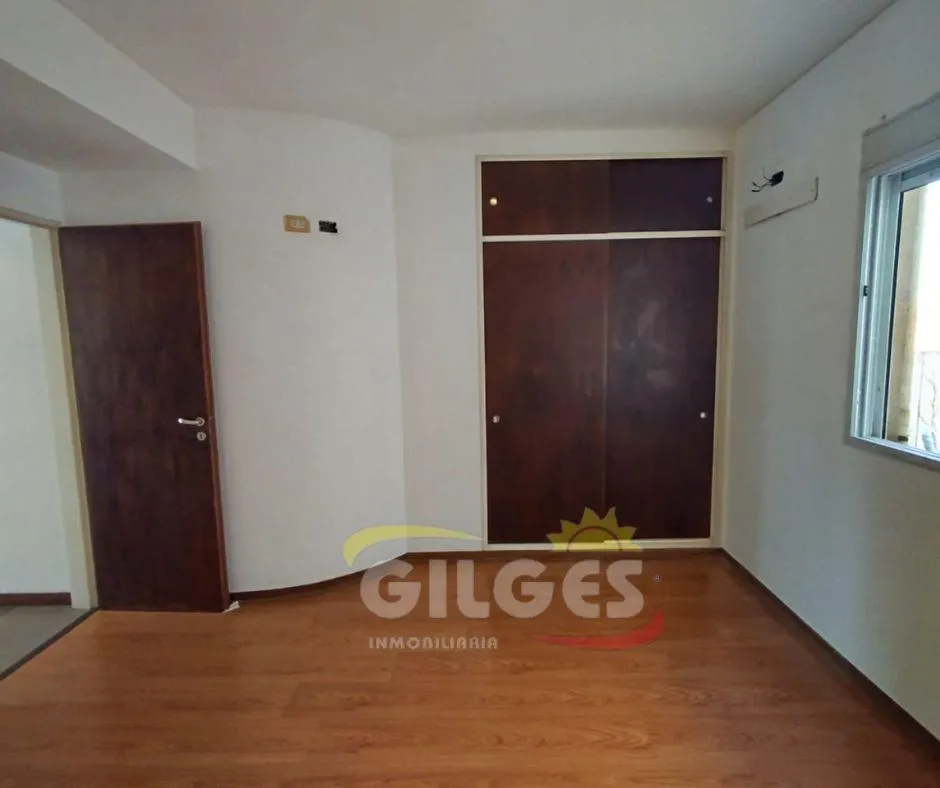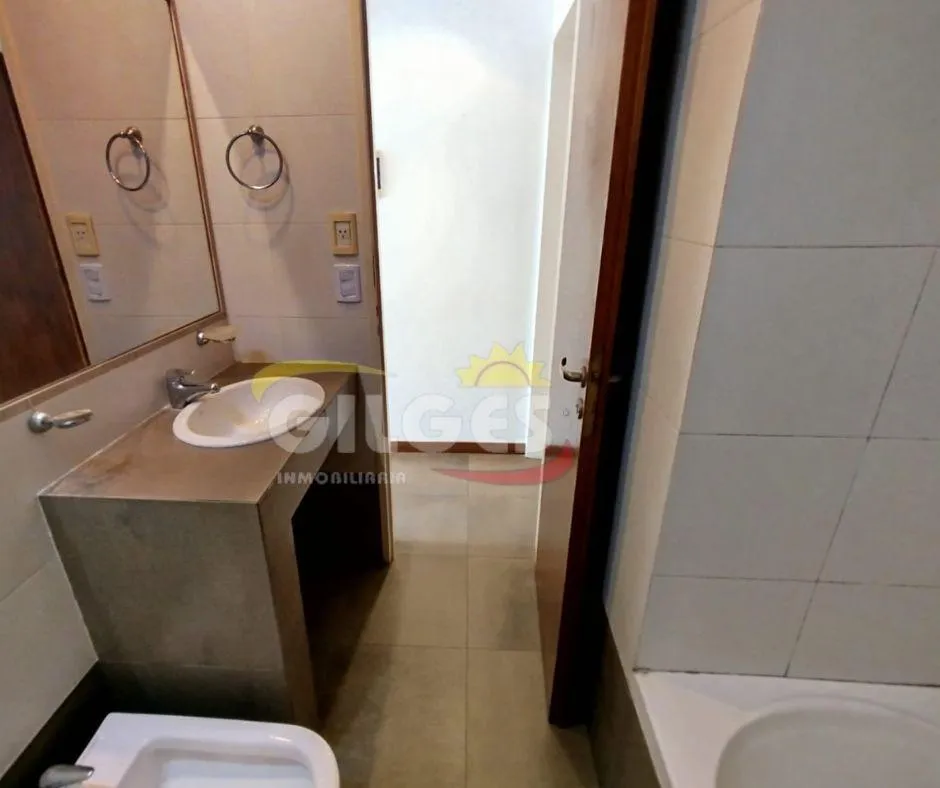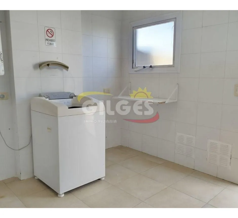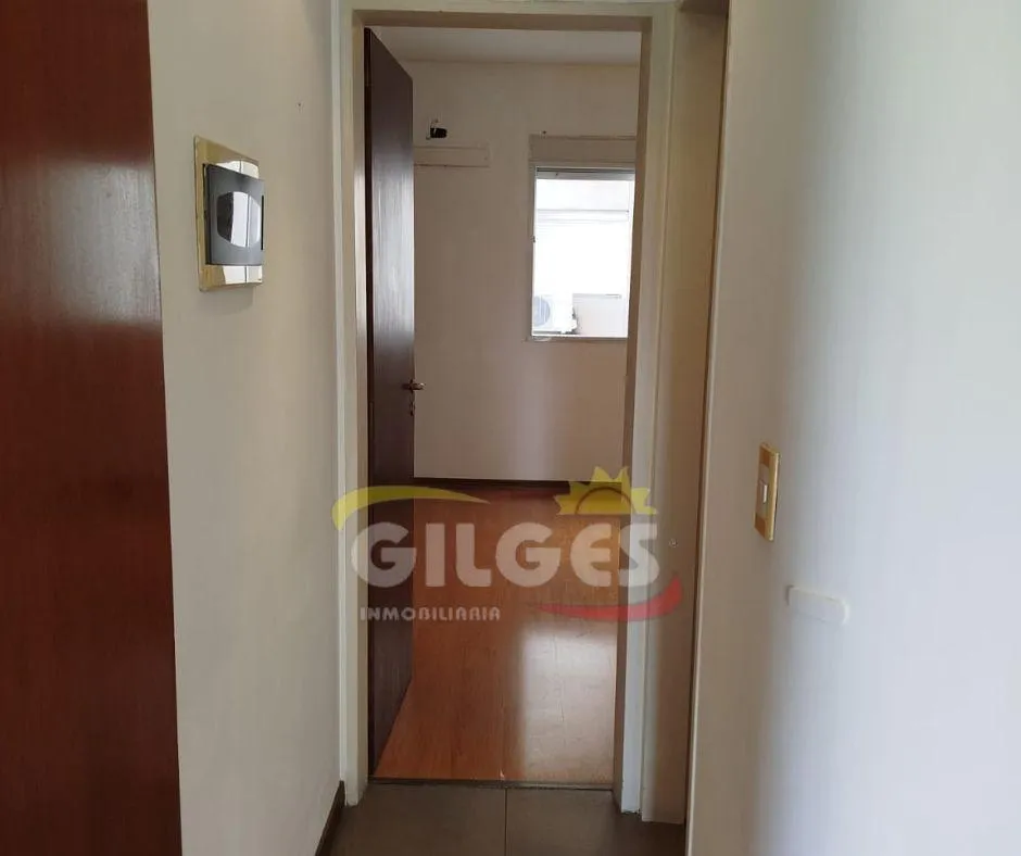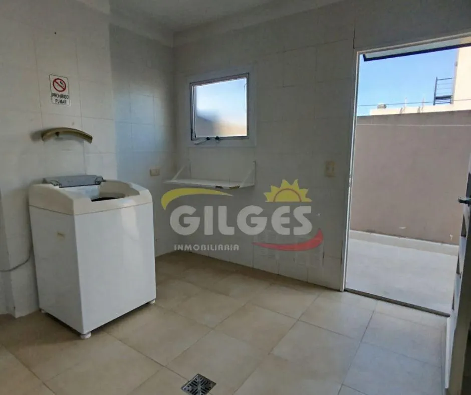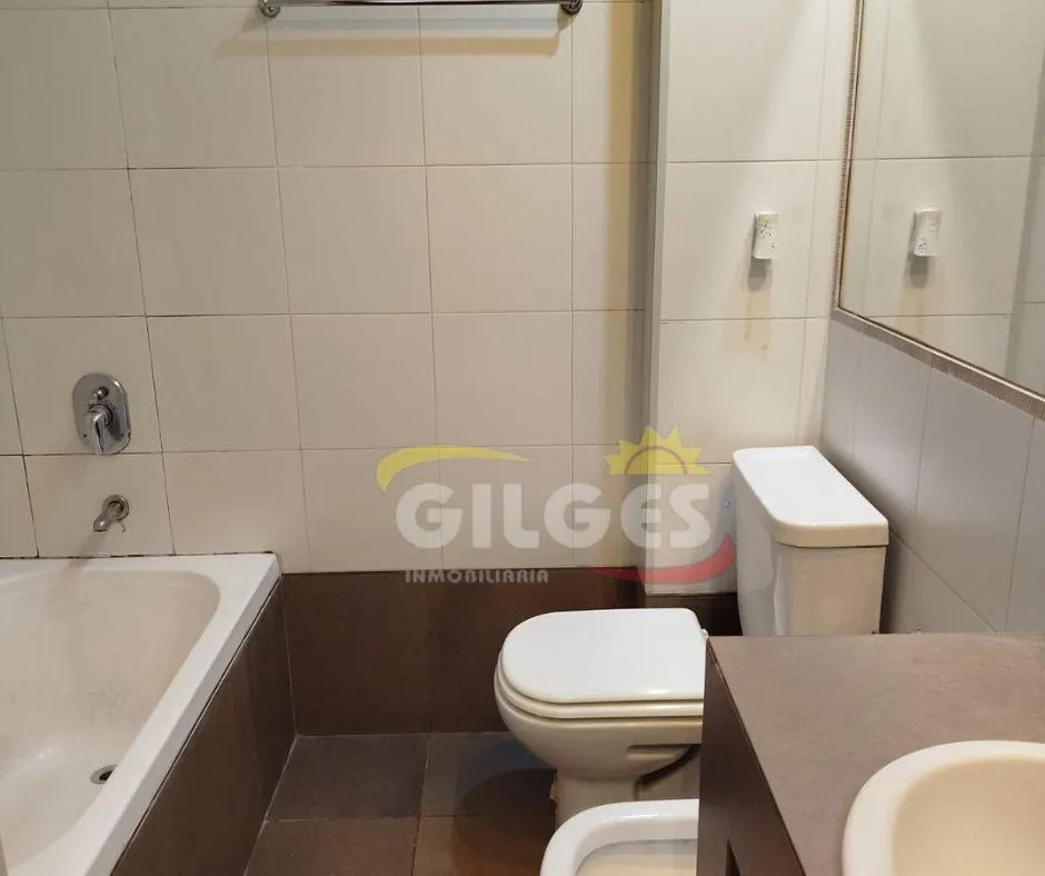Two-room apartment at the back of the building (courtyard-facing), in good condition. The unit includes a living-dining area, an integrated kitchen with cooking appliances and space for a fridge, a French balcony, one bedroom with built-in floor-to-ceiling wardrobe, and a full bathroom with bathtub and vanity. Building amenities include a lift, a shared terrace with a grill and jacuzzi, and a shared laundry with a washing machine. Building fees include Aysa and municipal charges; a family proper