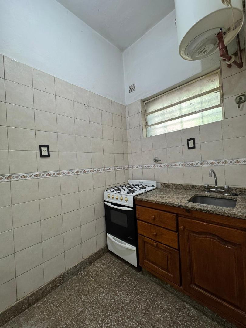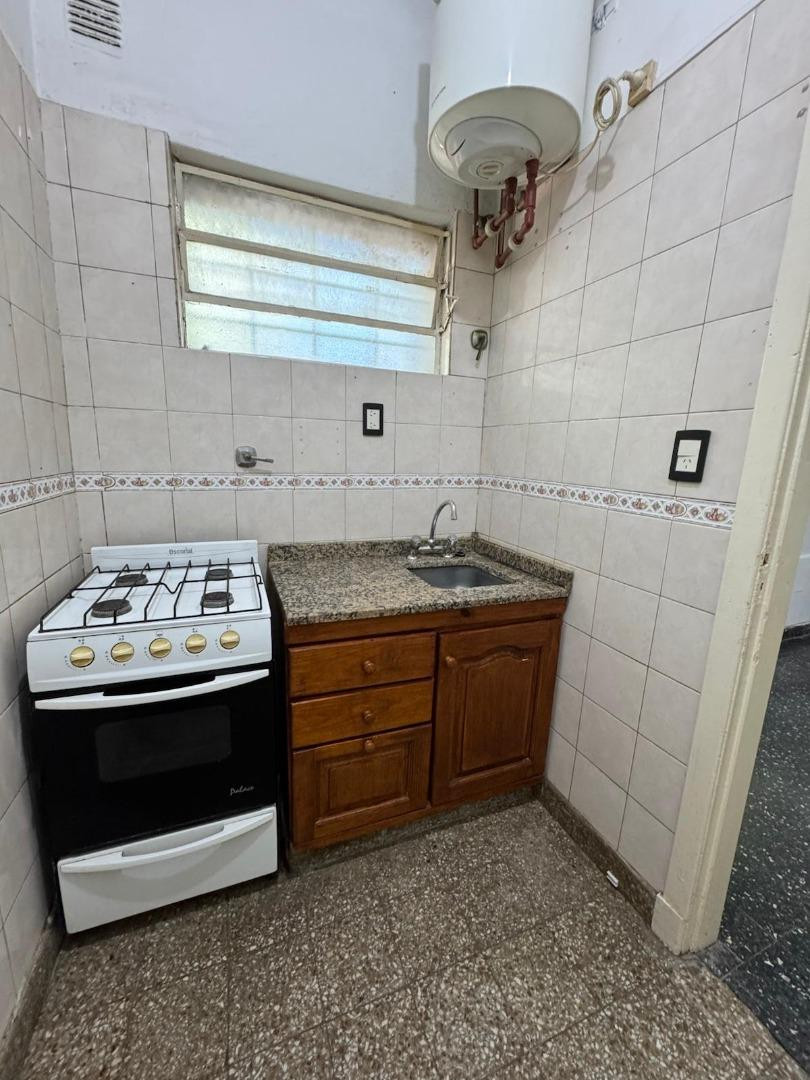 Ground-floor apartment with street access, fully independent. It has a living-dining room (3.60 m x 3.45 m), a kitchen (1.50 m x 2.10 m) with base cabinetry, a bedroom (3.45 m x 3 m) and a bathroom (1.50 m x 1.20 m) with a shower. Communal roof terrace is available. Building fees are $35,000. Maximum occupancy: 2 people. No pets allowed. Two-year lease with quarterly rent adjustments based on the I.P.C. Security guarantee requires either property owner guarantee plus pay slip, or a rental insura