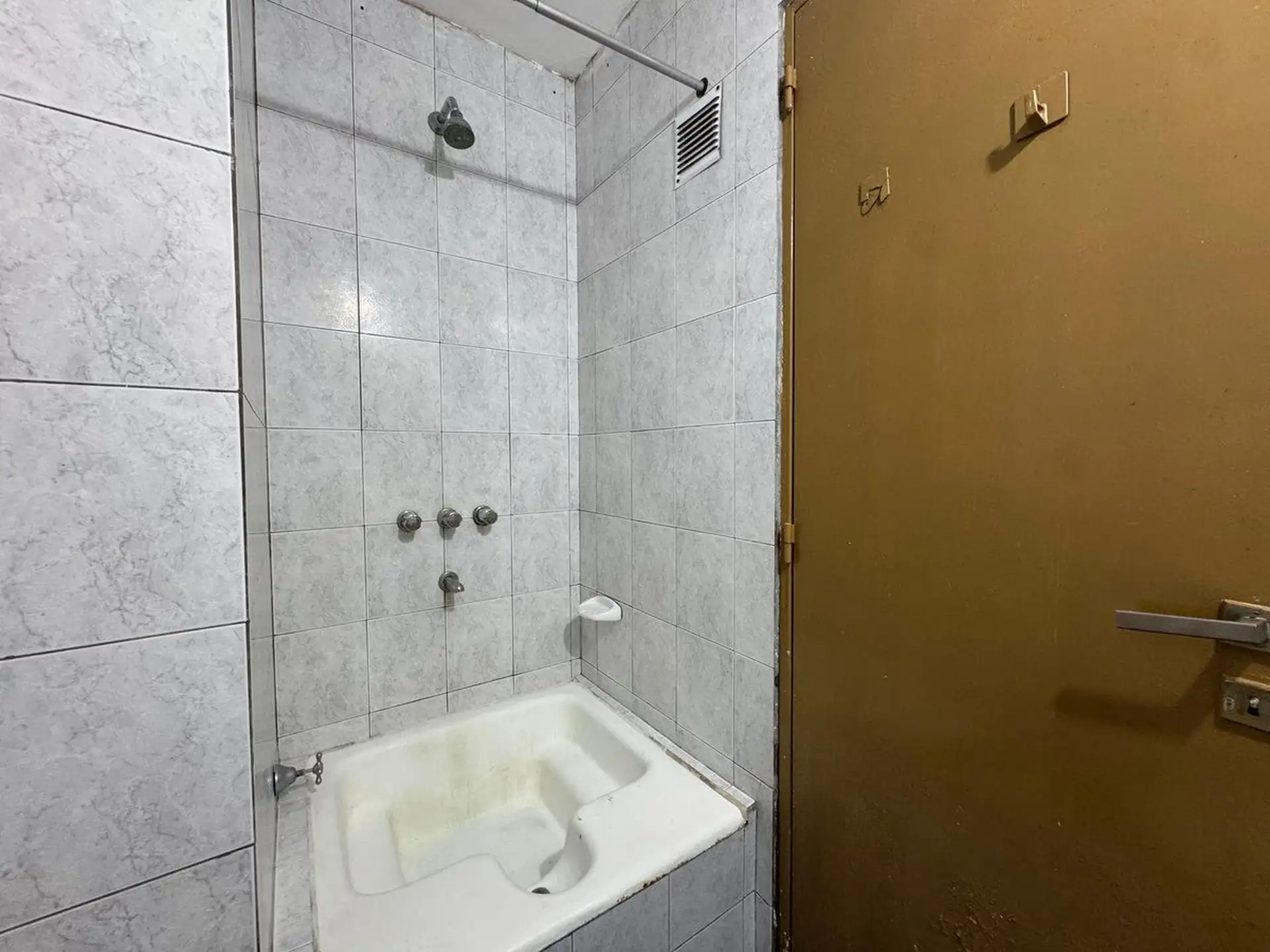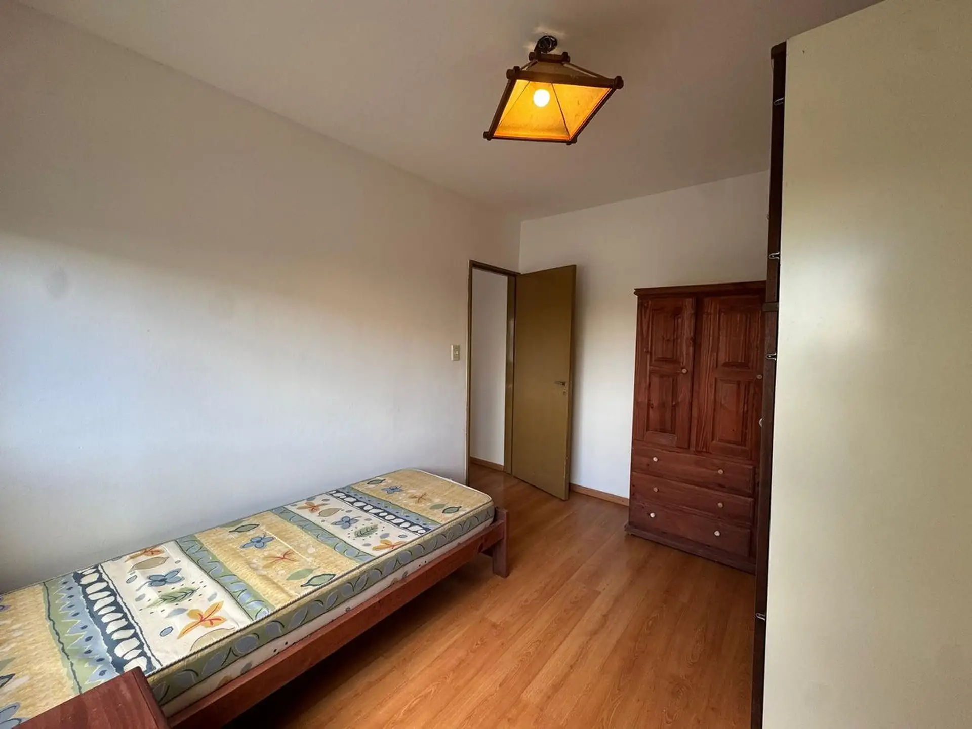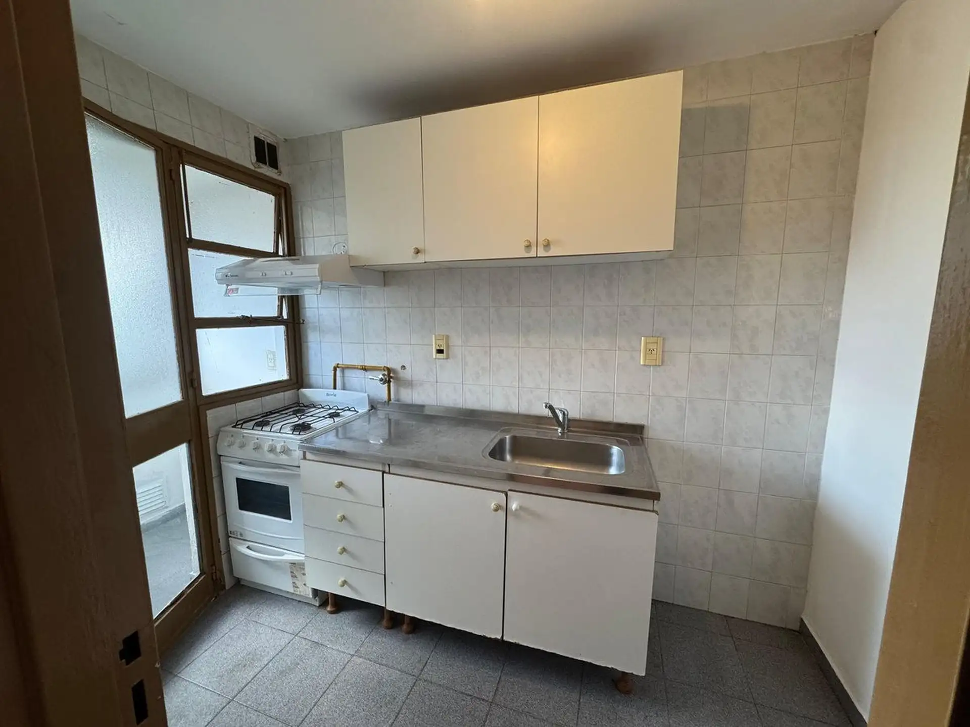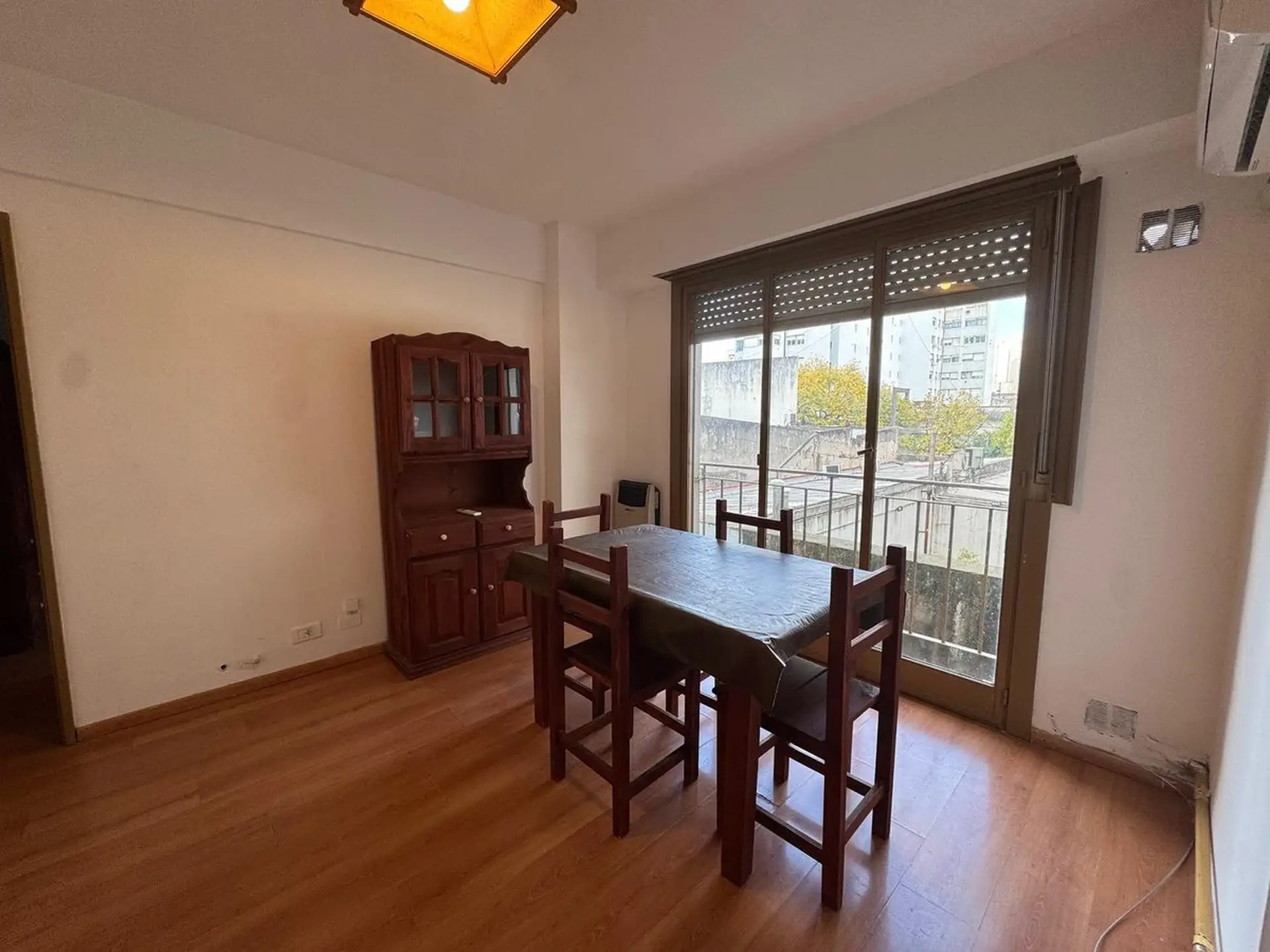 Two-room apartment of 31 m² in La Plata Centro, located on Calle 49 between 8 and 9. On the 2nd floor of a 12-storey building, built in 1976. The unit has 1 bedroom and a full bathroom, with a living room, separate kitchen and a separate laundry area. Furnished with upper and lower kitchen cabinets, a table with 4 chairs, sideboard, single bed with mattress and a wardrobe.