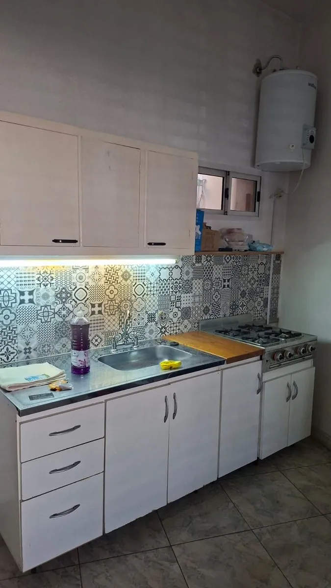 Ground-floor studio apartment (PH) in Liniers, street-facing, 20 m², with a door and window to the street. It has an integrated kitchen and a full bathroom. The stove and electric water heater are included. Utility expenses are shared with the owner by dividing costs according to a “fair” percentage; there are no building fees. 12-month lease with quarterly rent increases based on the CPI. Requirements include one month’s rent in advance, one month’s rent as a security deposit, and a rental guar