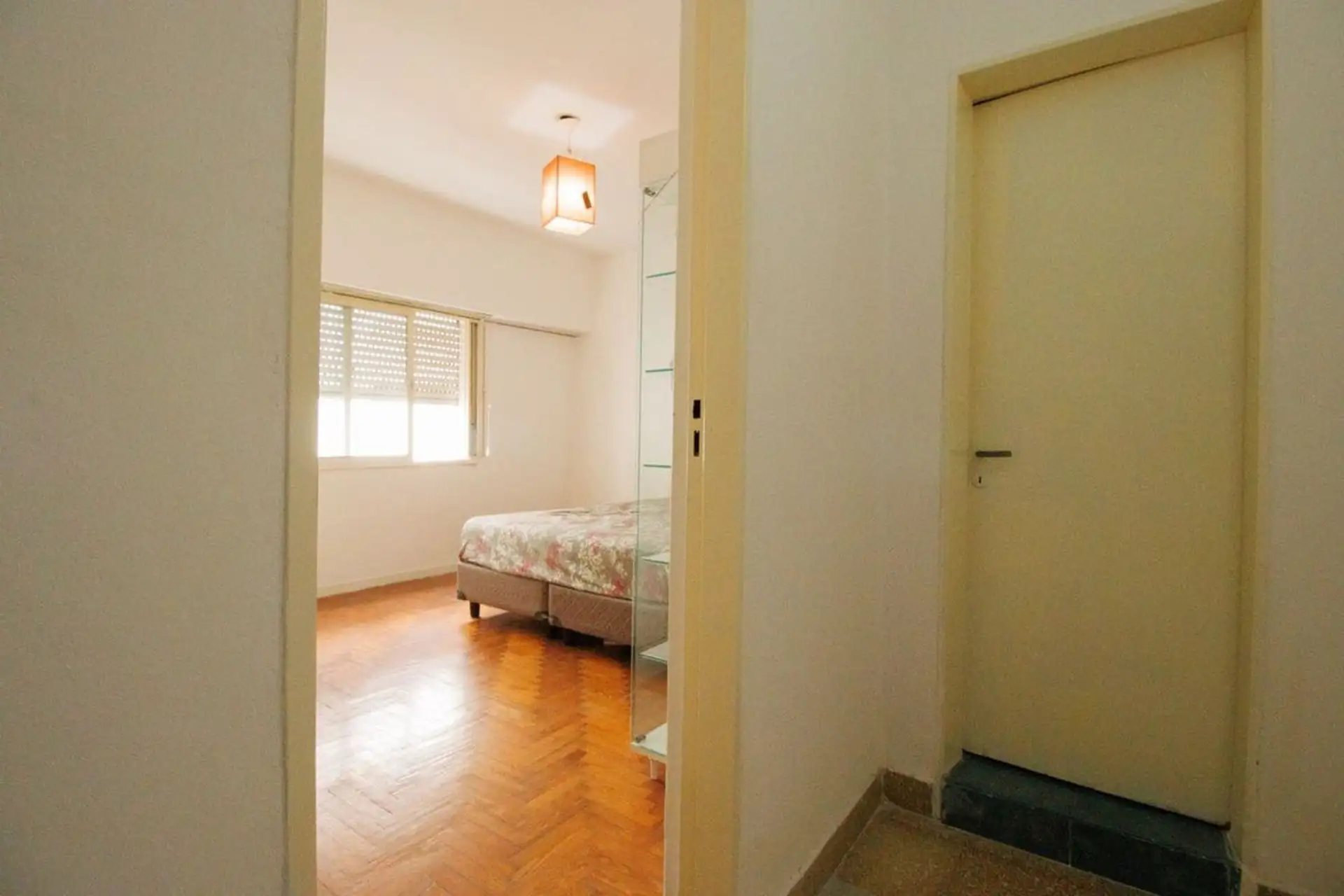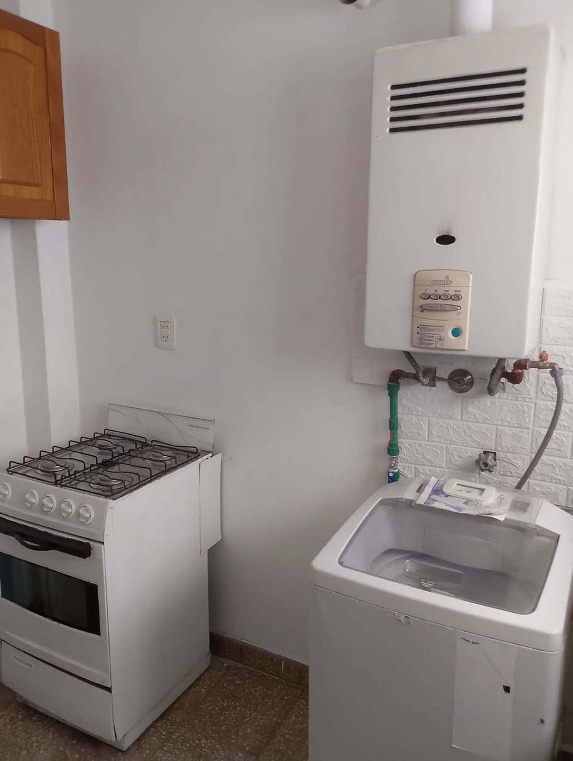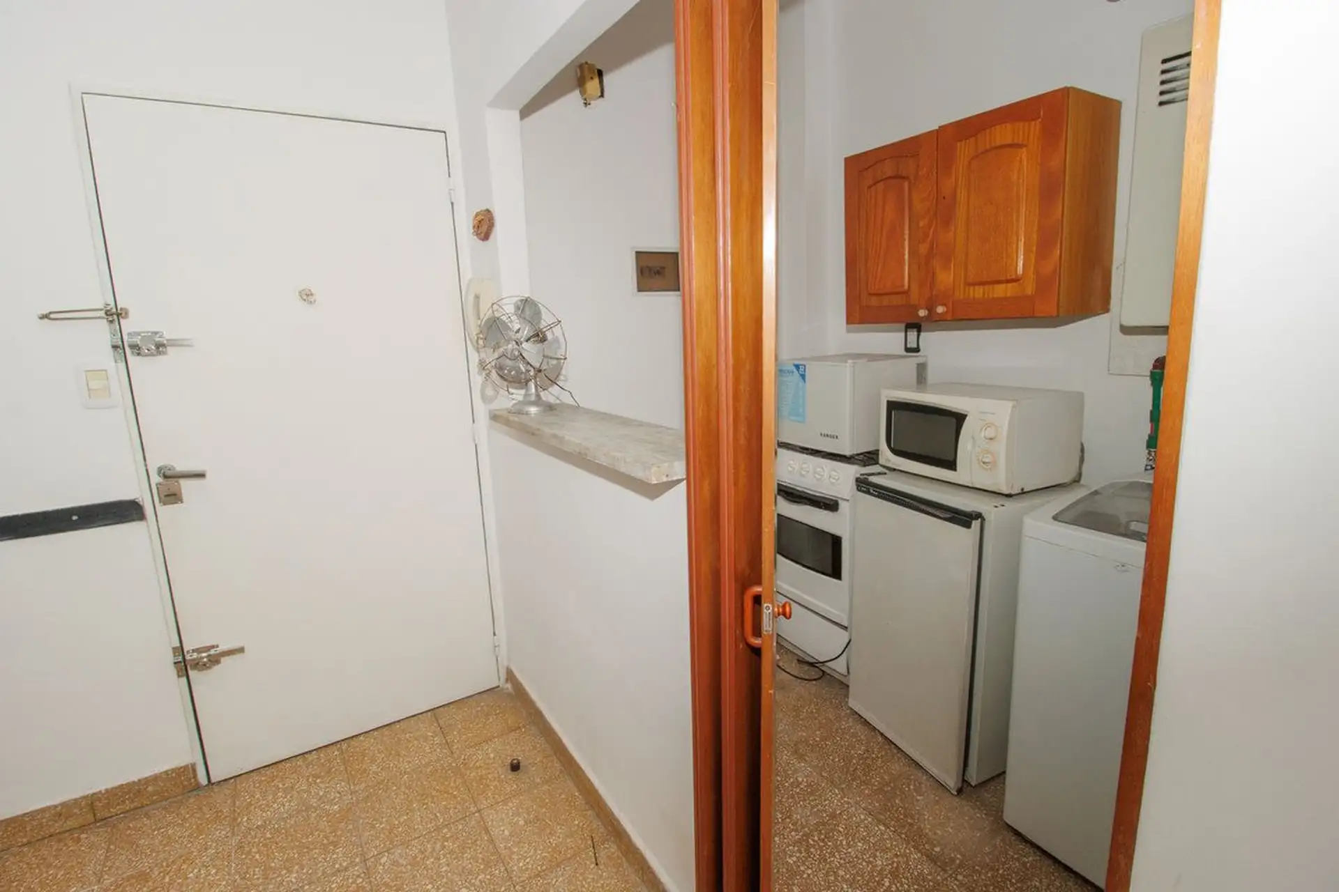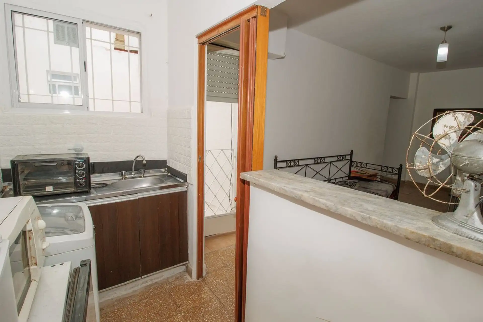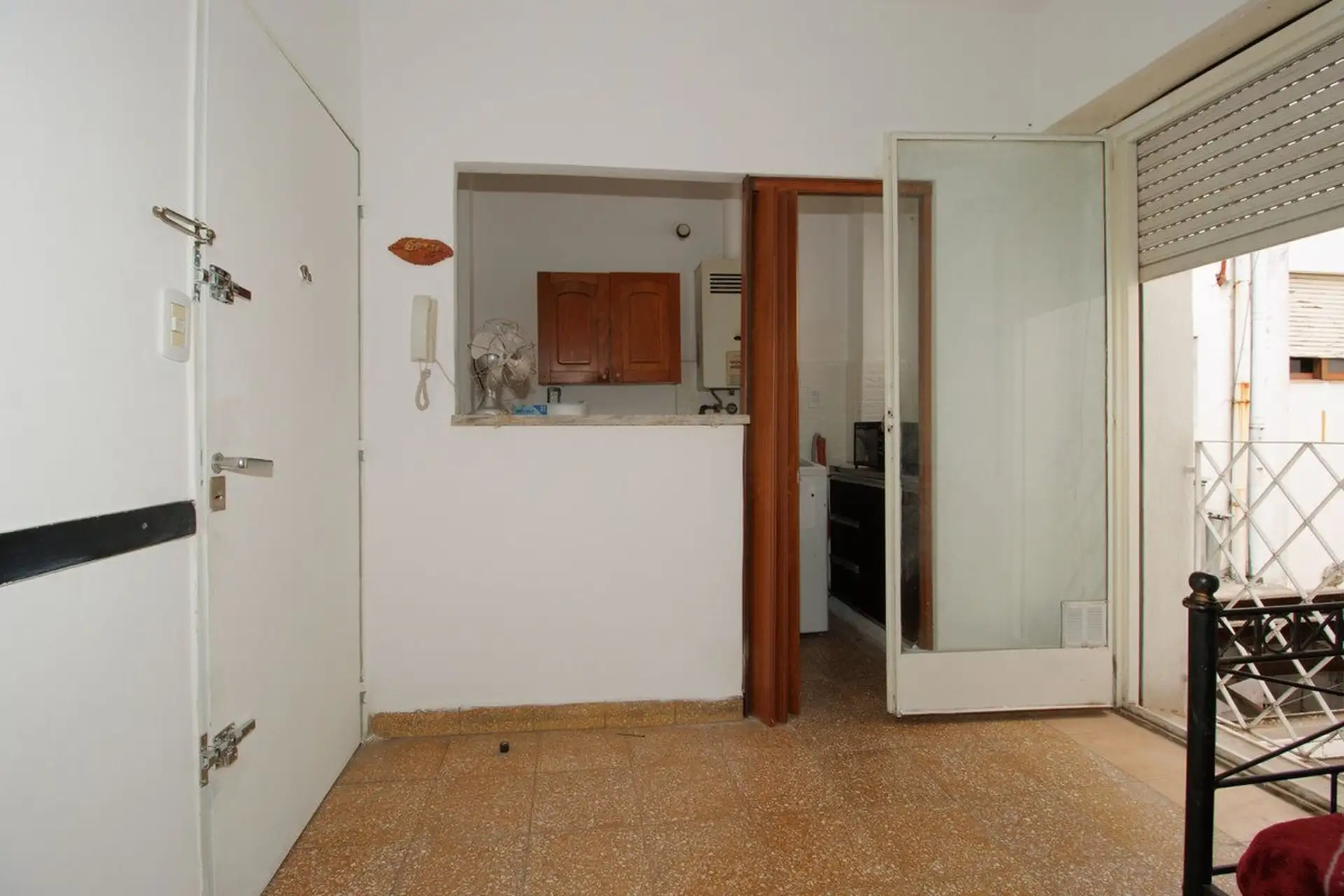 Two-room apartment in Liniers, Buenos Aires, in Barrio Naón. It has a living-dining area, 1 bedroom with a spacious fitted wardrobe, a full bathroom and an internal balcony for ventilation. It is listed as not paying building fees; expensas are covered by the owner. Rental terms reported include proof of income, a rental guarantee bond (caución), 1 month advance rent, 1 month deposit, and a 12-month lease.