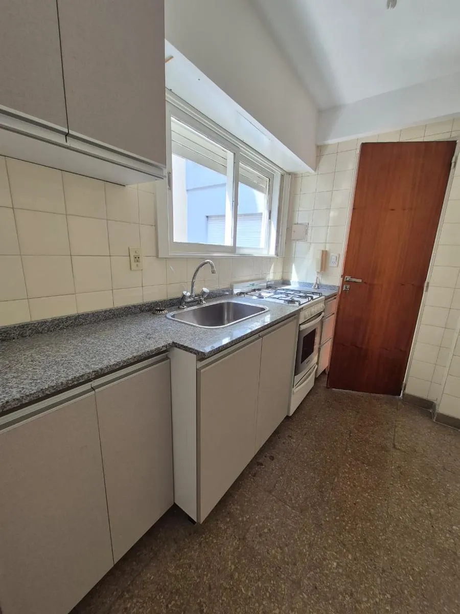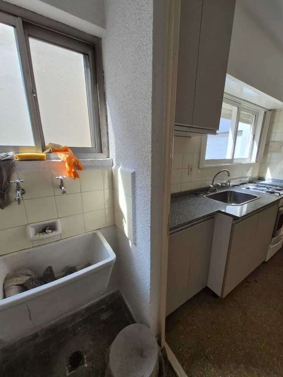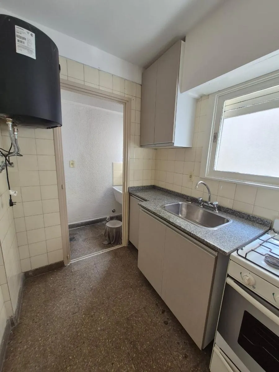 Apartment in excellent condition, two blocks from the train station. It has 1 bedroom with built-in wardrobe and a full bathroom. The kitchen is fully equipped and includes a separate laundry area; the living-dining room faces the courtyard (contrafrente). The unit is on the 2nd floor accessed by stairs and is available for professional use.
