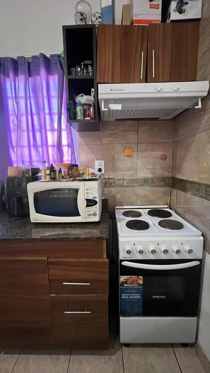 First-floor apartment accessible by stairs. The living-dining area has ceramic floors and an integrated kitchen with upper and base cabinets, a four-burner cooker with oven and extractor with vent to the balcony. The bedroom has ceramic floors and split air conditioning (cool and heat), with access to a balcony. There is a full bathroom with a shower enclosure and plumbing connection for a washing machine, plus an electric hot water system (termotanque). Located about five blocks from Av. Alsina
