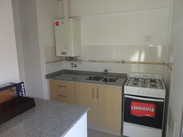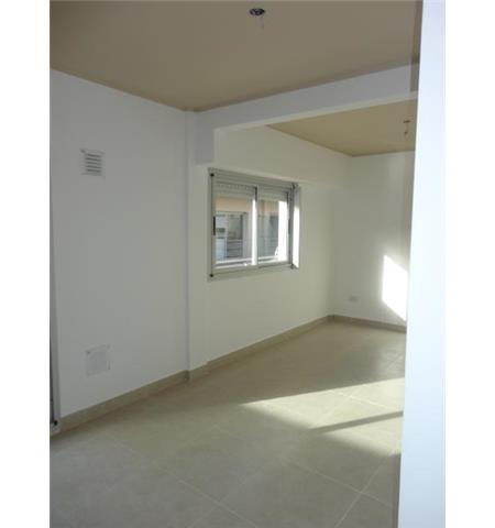 Studio apartment facing the interior block courtyard, with a balcony and patio view. The unit has 33 m² for private use (UF), porcelain tile flooring in the living area, a kitchen with lower cabinets, and a full bathroom with a bathtub. The building comprises 2 sections and includes a communal room (SUM) and a grill; individual boiler heating is installed. The rental is for a 2-year contract with quarterly rent increases linked to IPC. Building fees, utilities, and the Tasa de Servicios Generale