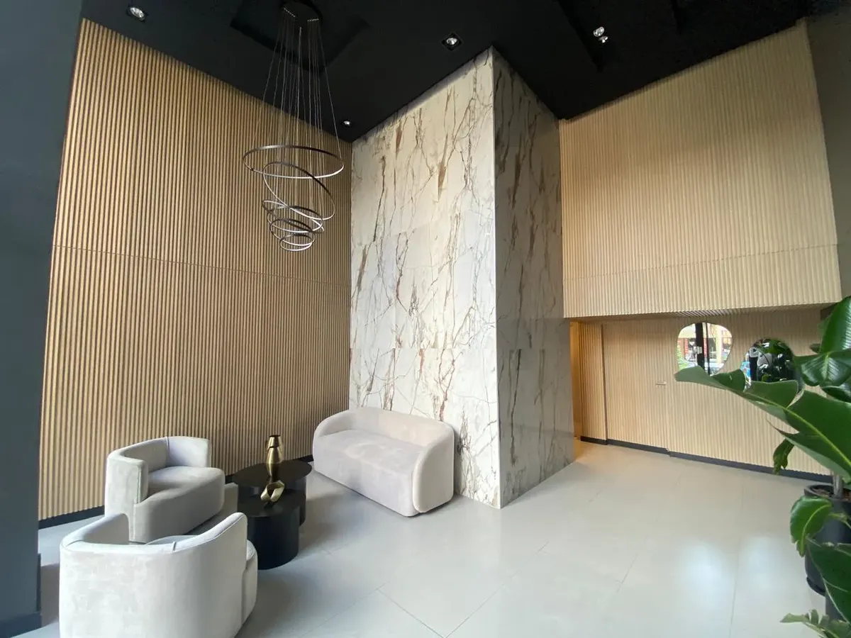 Two-room apartment with 1 bedroom. Living-dining room with a balcony facing the street and an integrated kitchen with breakfast bar, fitted lower and upper cabinets, plus connection and drain for a washing machine. The bedroom has a wardrobe and a full bathroom. Split air conditioning (Philco) in the living area and bedroom; individual units, central hot water, and accessibility for reduced mobility. The building has 2 lifts, a residents’ lounge (SUM) and a gym. Includes a parking space; rent is