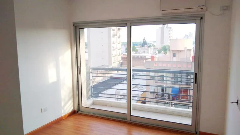 Two-room apartment facing the street, located in central Banfield Este. The unit has a front living room with porcelain tile flooring, a front balcony and hot-cold air conditioning. Separate kitchen with upper and lower cabinets, a full bathroom with a bathtub, and a front bedroom with a balcony, built-in wardrobe interior fittings and hot-cold air conditioning. The building has a communal lounge (SUM) and a pool. Rental terms include a 2-year contract with quarterly increases based on IPC; buil