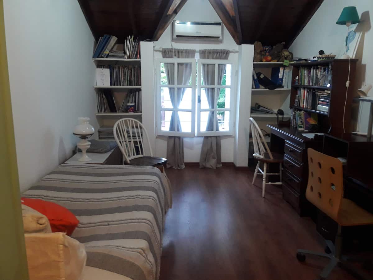 Single room for 1 person in a family house in Martínez. The home is two-storey and includes a playroom. Shared bicycles are available, and the property has 2 televisions with Wi-Fi and Netflix.