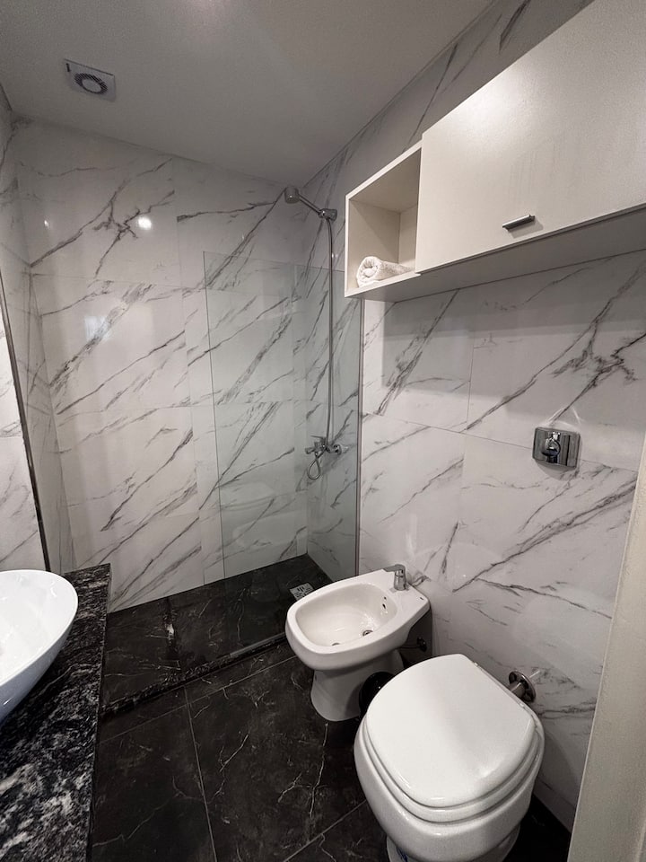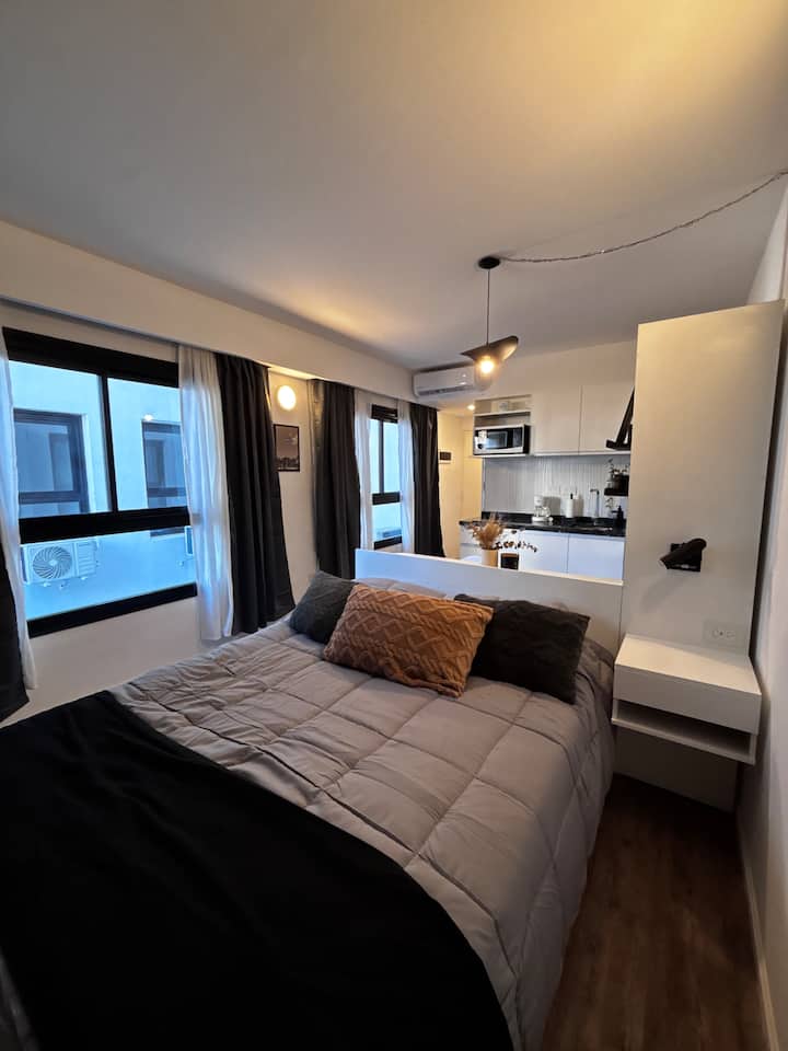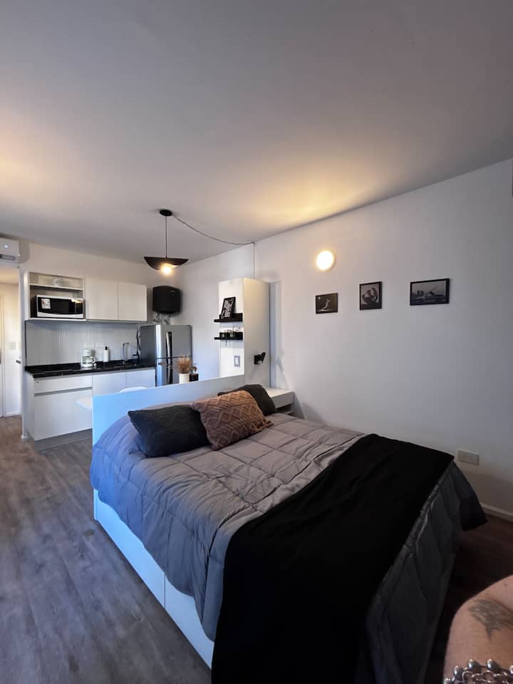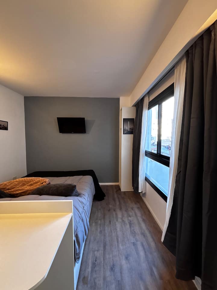 Studio apartment in Monserrat. The property is described as modern, bright and quiet, with a functional layout for stays. It is located a short walk from the Obelisk, the Congreso Building and Teatro Colón, with access to multiple subway lines.