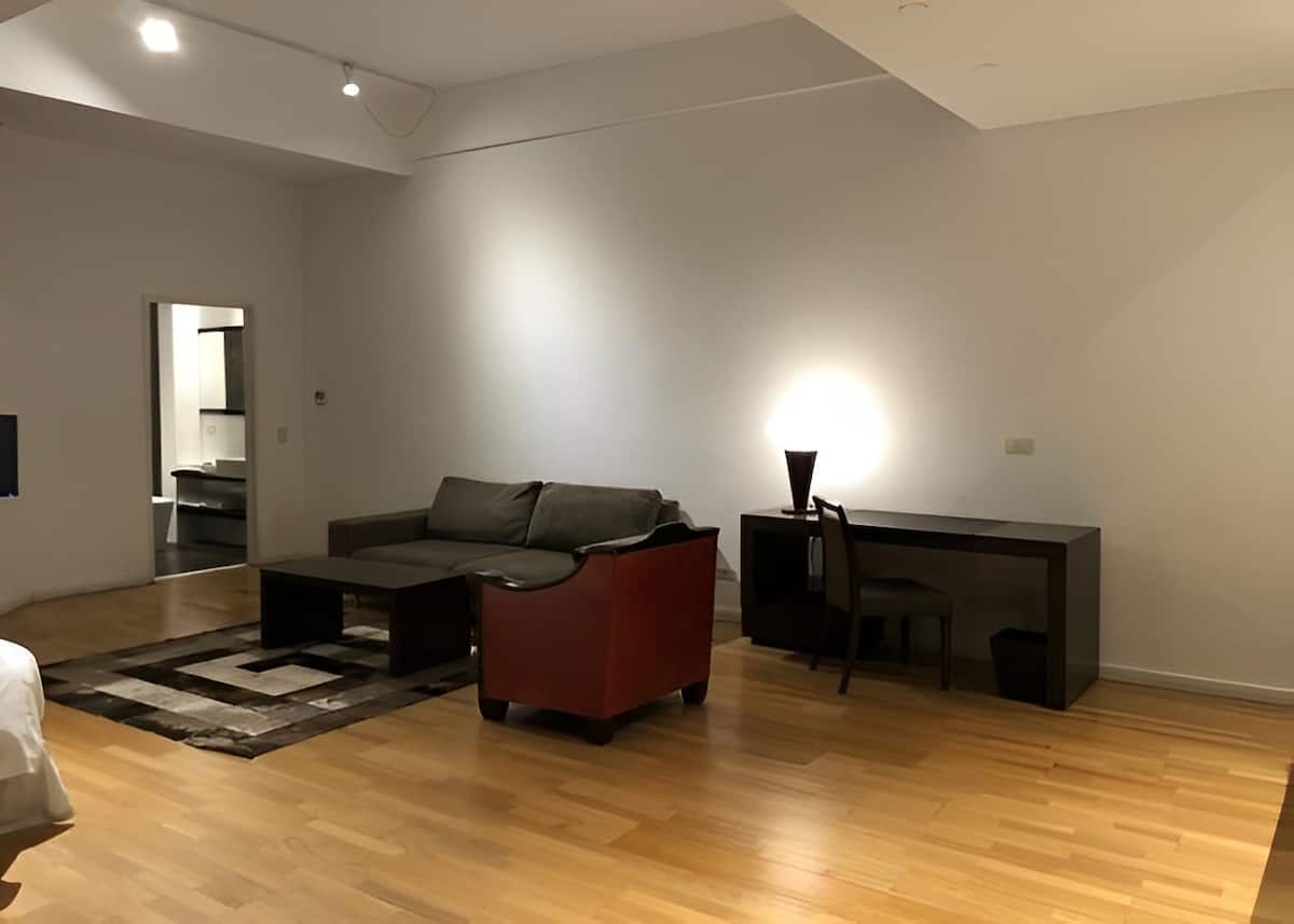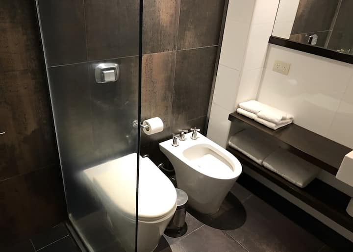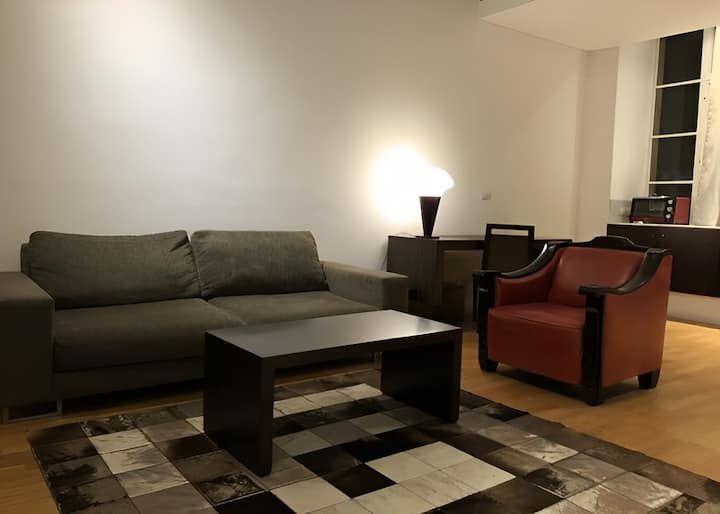 Apartment in Monserrat, located 2 blocks from Plaza de Mayo. The building was restored in 2015 and designated as a Buenos Aires city heritage site in 2017, and it operates with apartment/hotel characteristics.