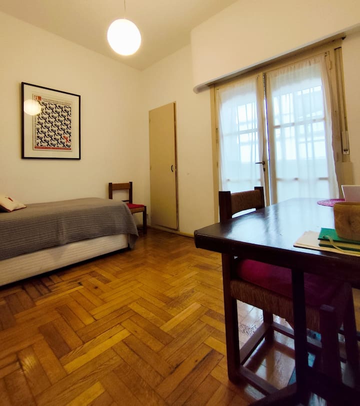 Room in a shared apartment in San Telmo, Monserrat. Bright unit in the historic area on Defensa St. Steps from San Telmo Market and Casa Rosada, with easy access to Puerto Madero.