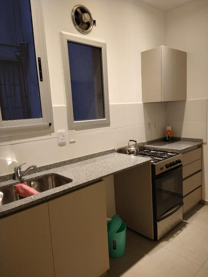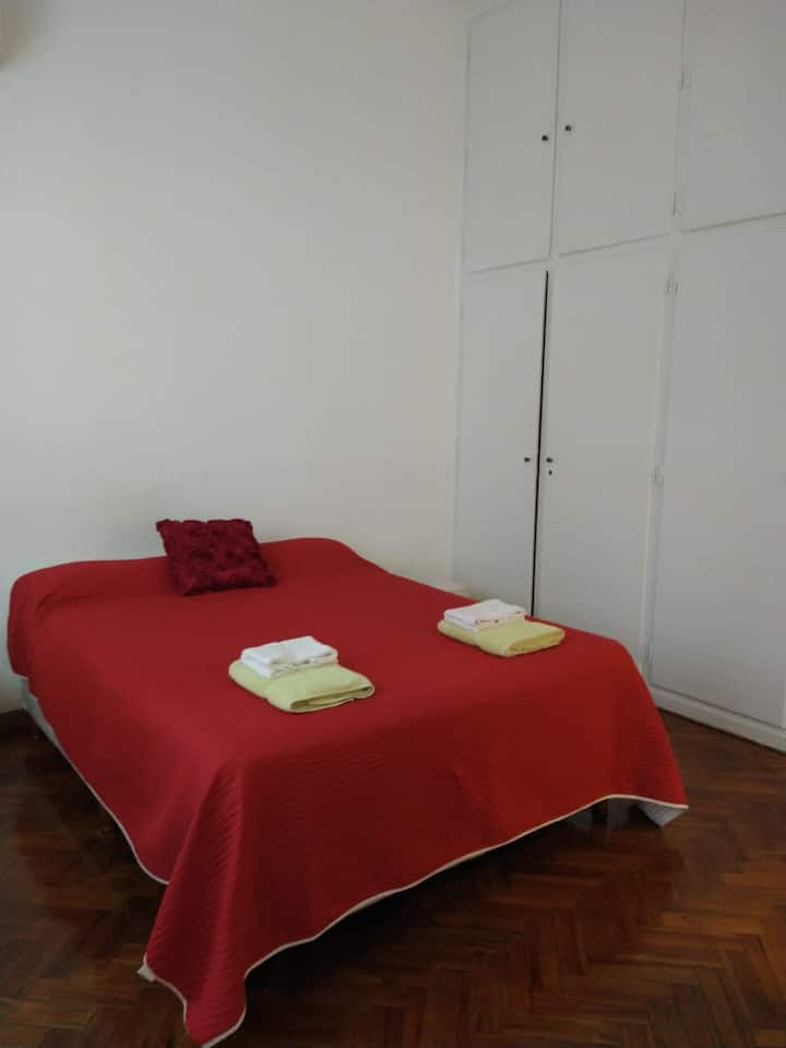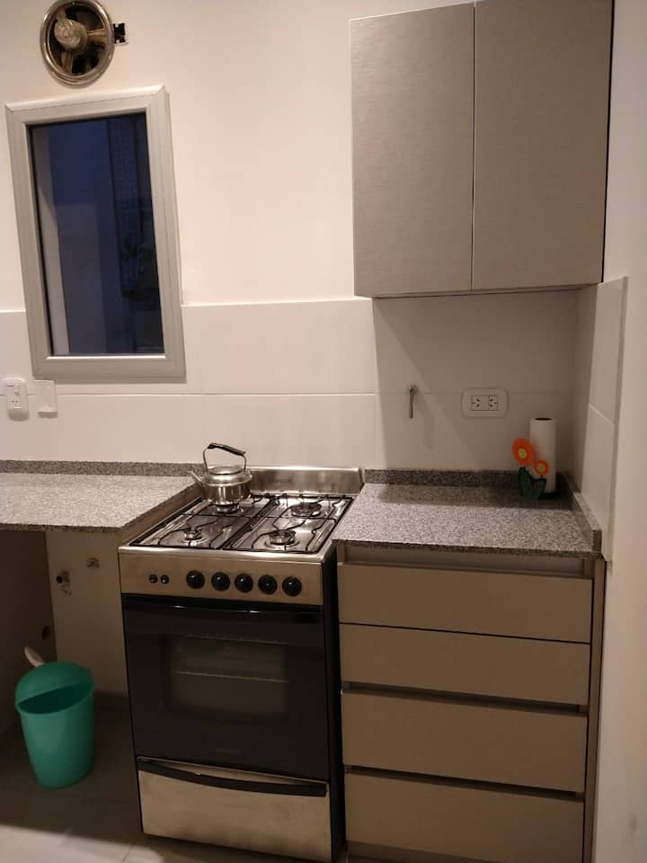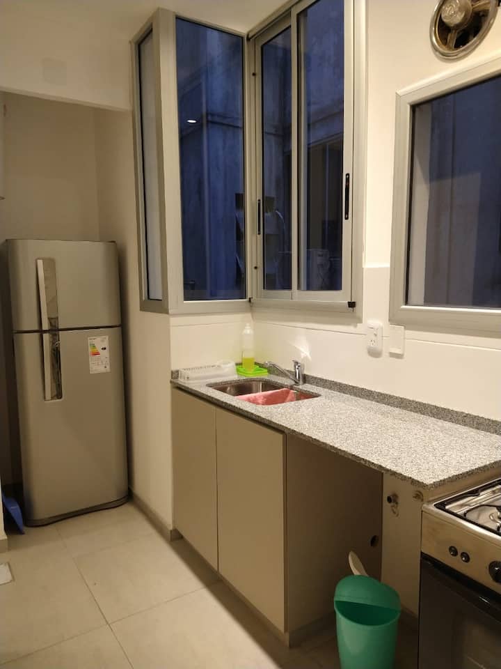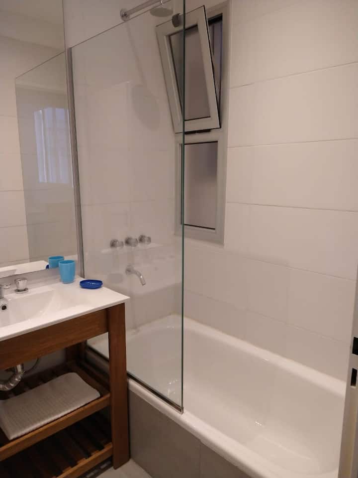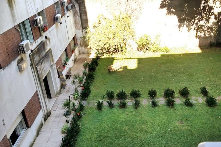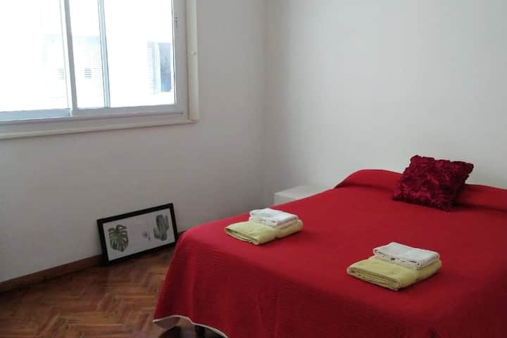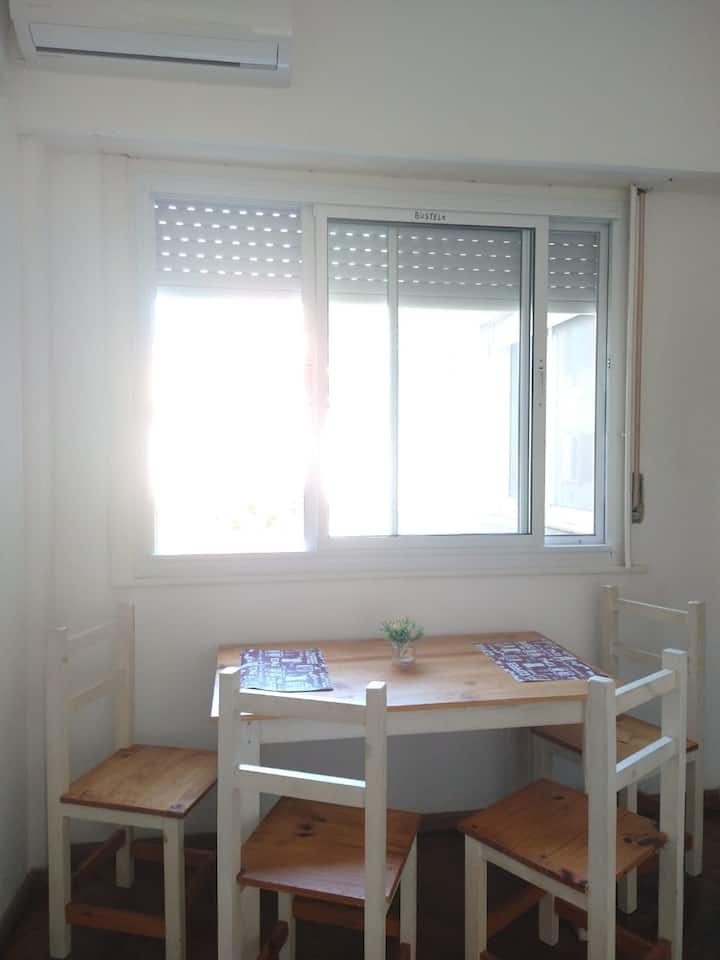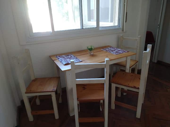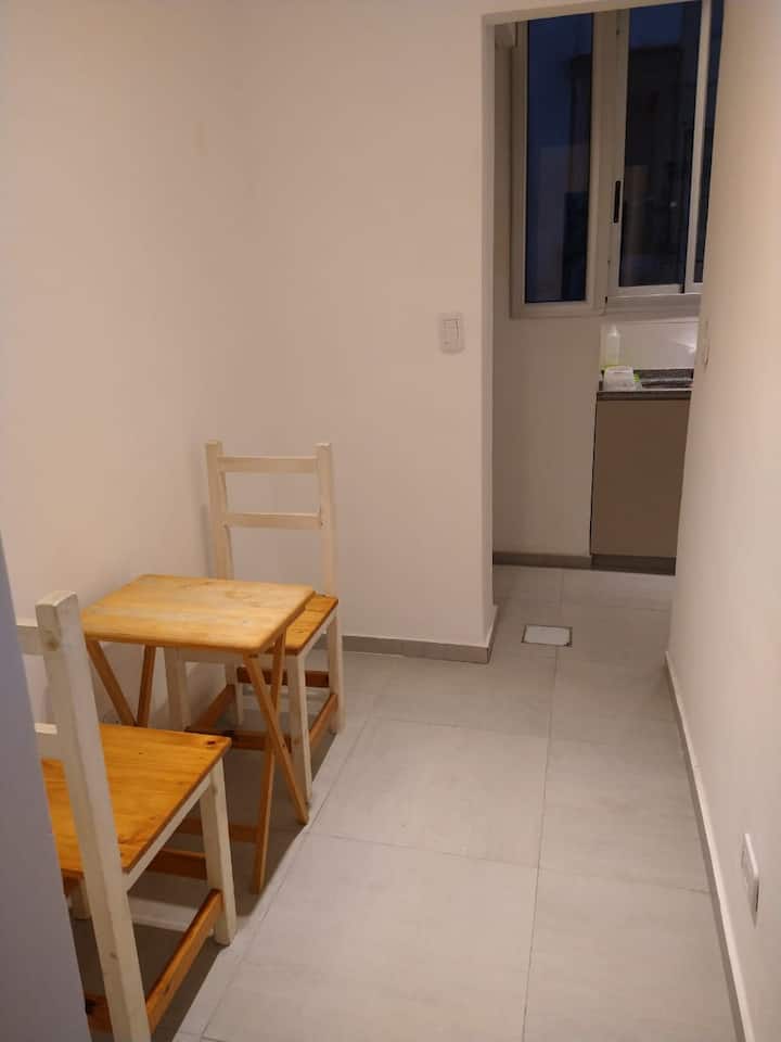 Two-room apartment in Monserrat, with 1 bedroom. It has a double bed, a large closet, a full bathroom, and a full kitchen. The living room includes a dining and work table and a relaxation area, with an open, quiet view.