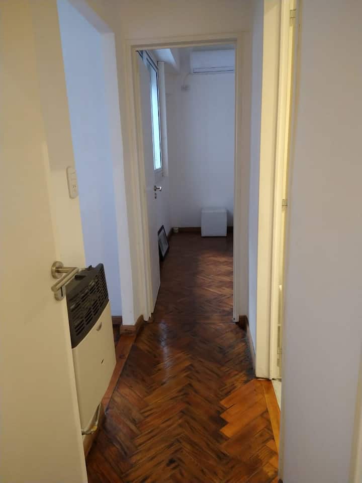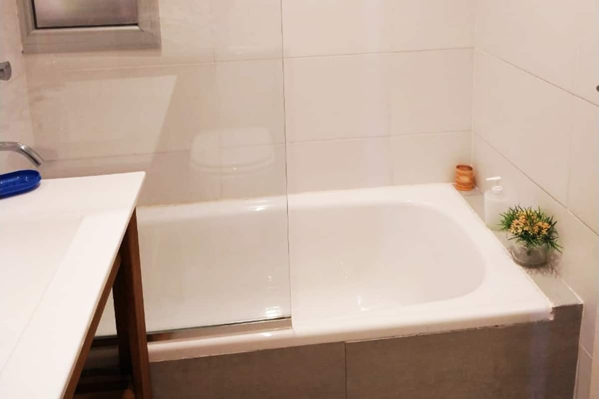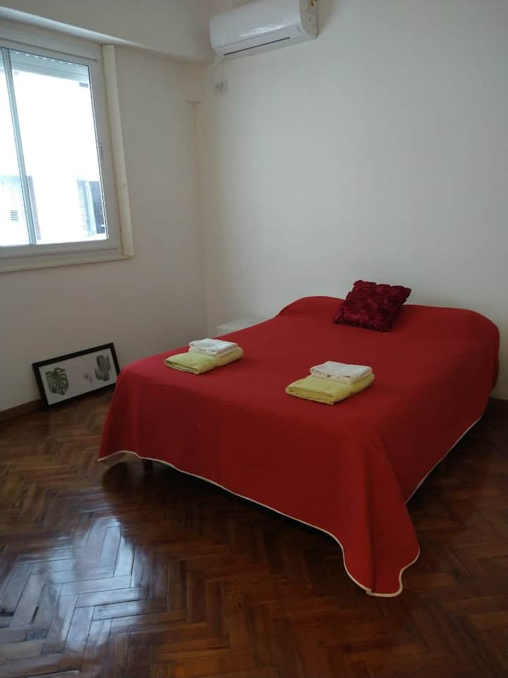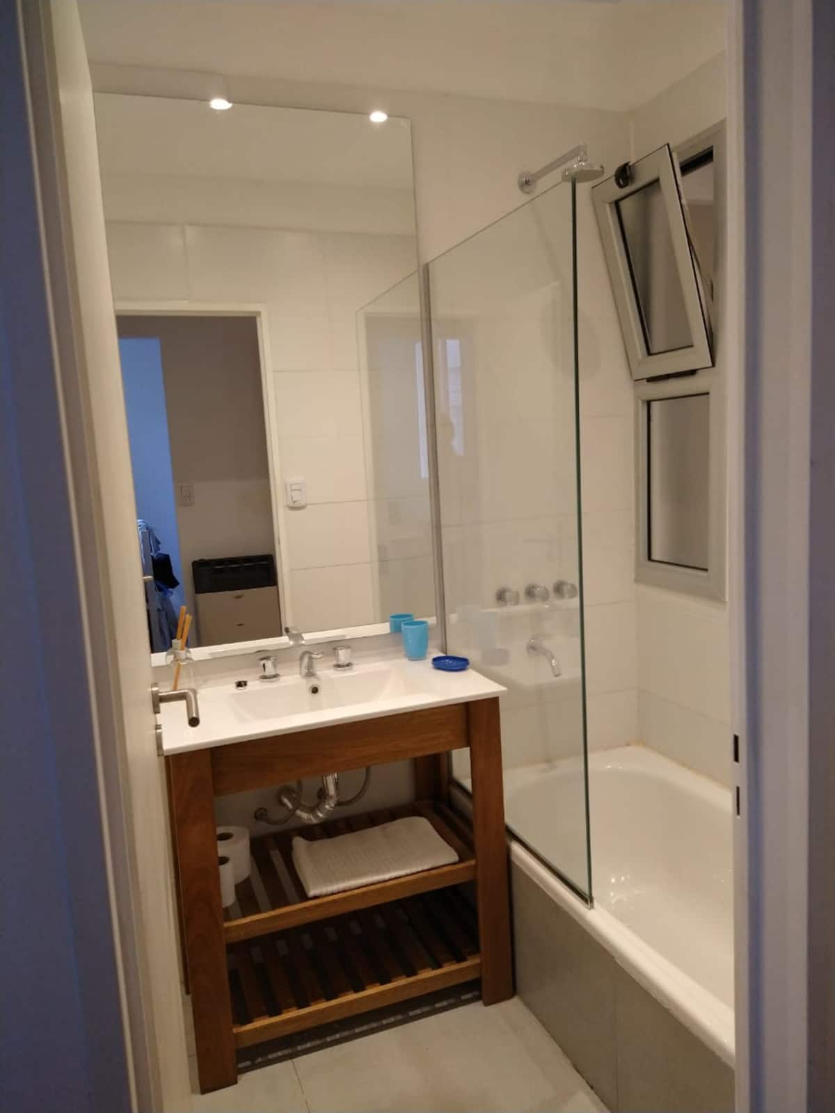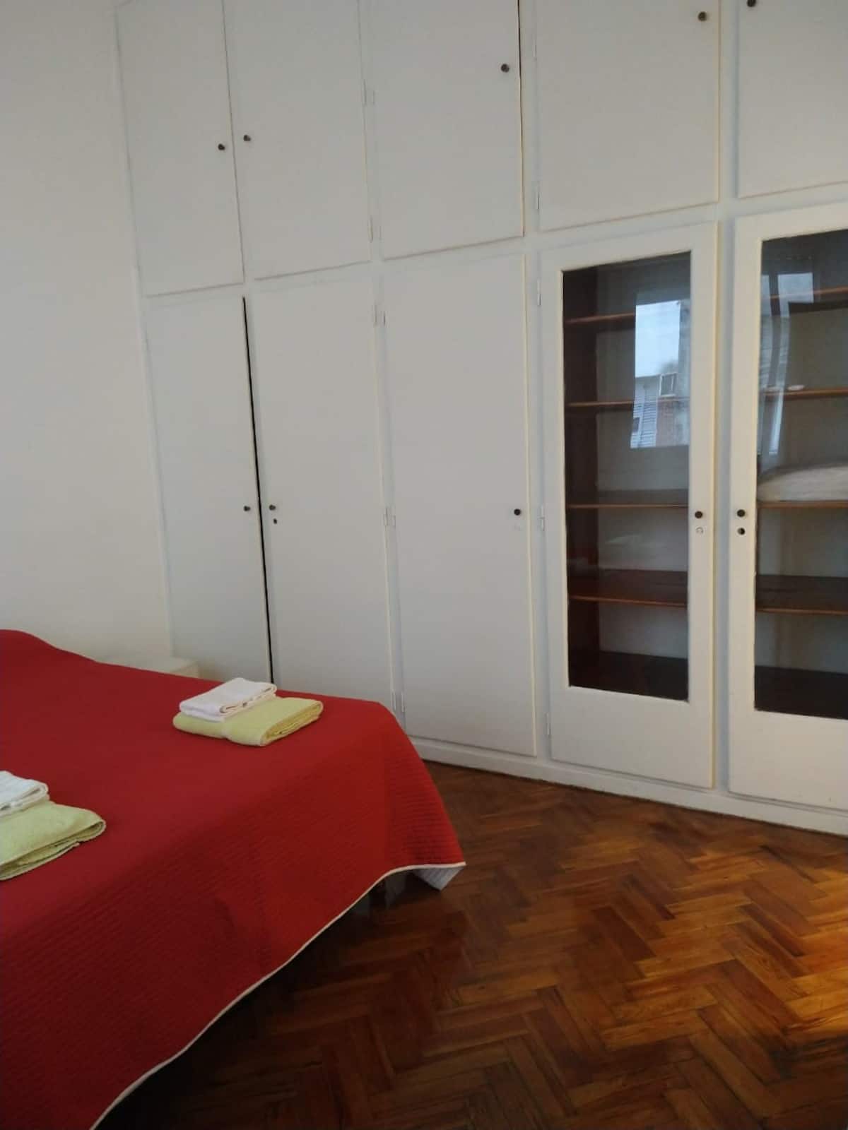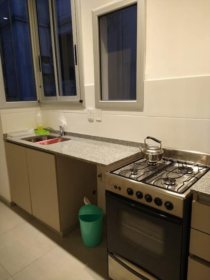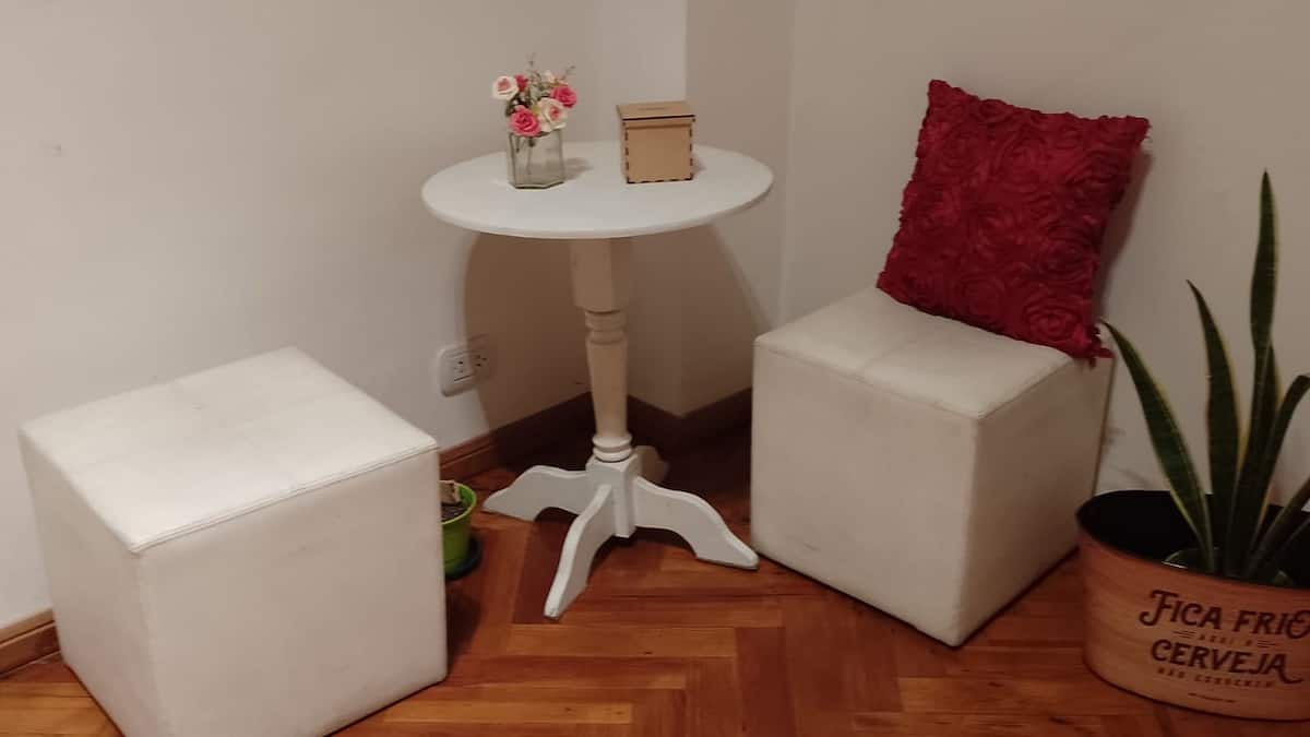 Two-room apartment in Monserrat, with 1 bedroom. It has a double bed, a large closet, a full bathroom, and a full kitchen. The living room includes a dining and work table and a relaxation area, with an open, quiet view.